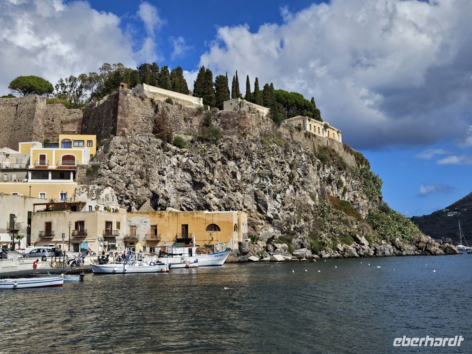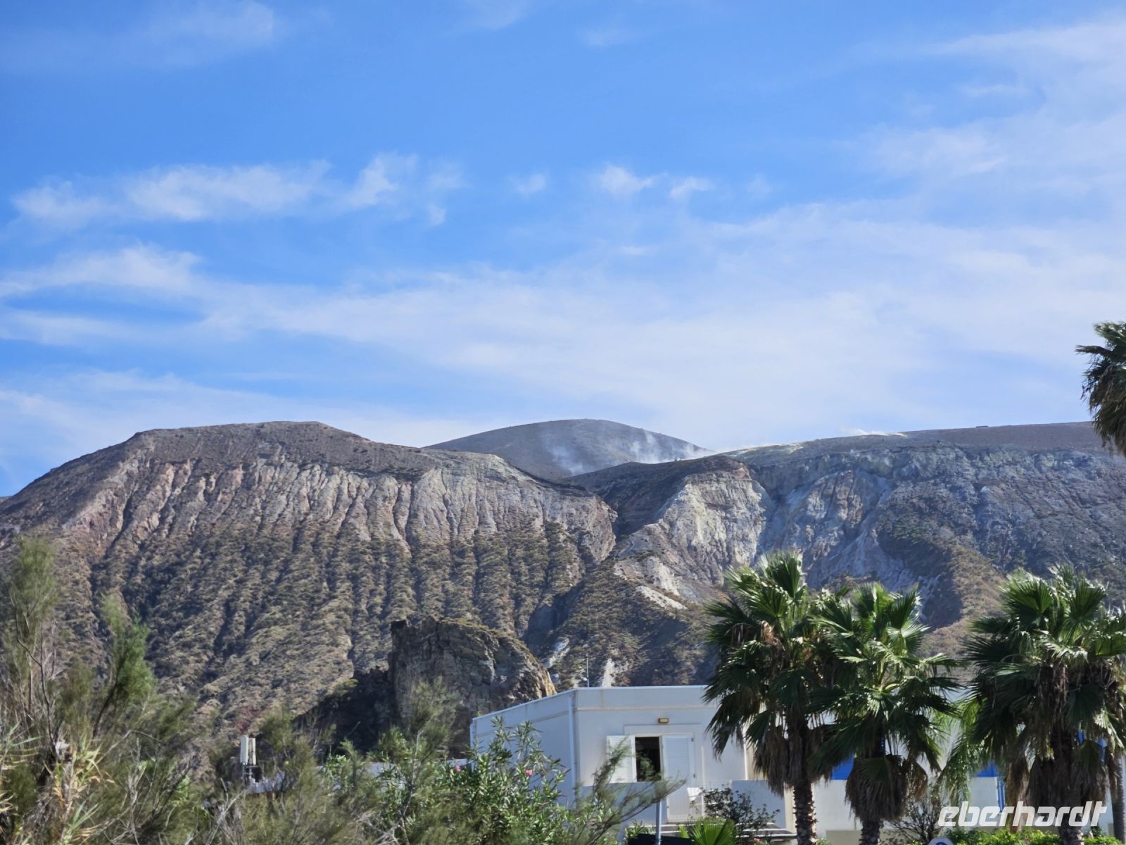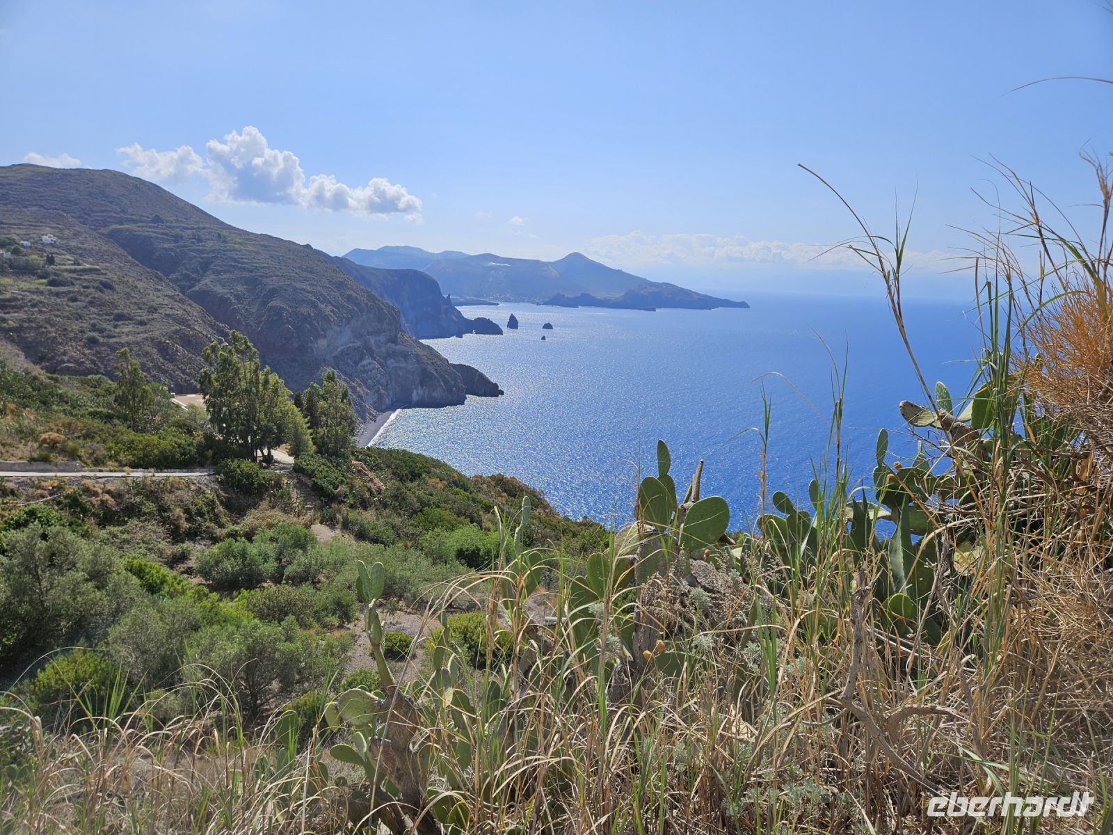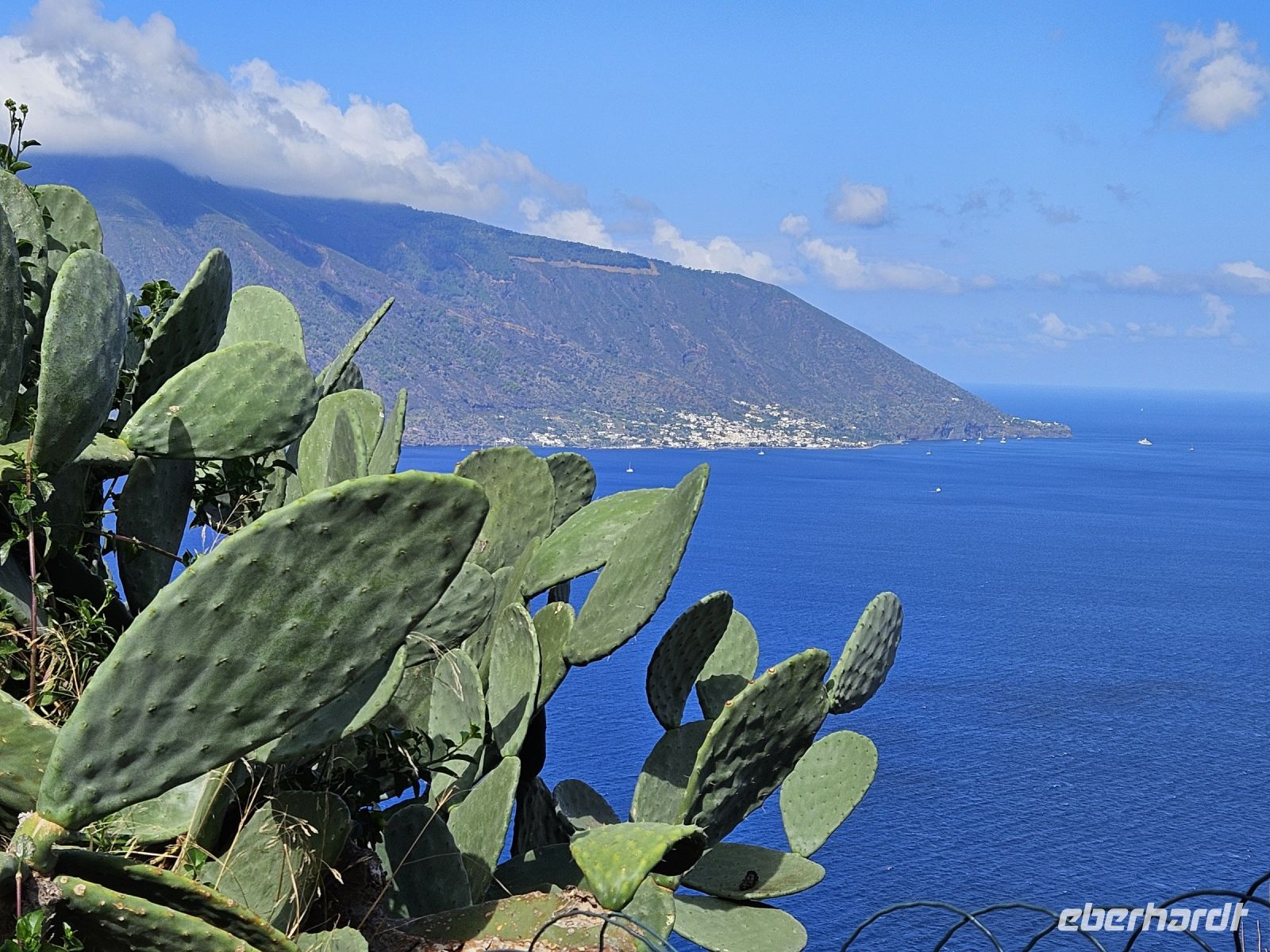Heute wollen wir einen Eindruck von den Liparischen Inseln gewinnen, die nördlich von Sizilien im Tyrrhenischen Meer liegen. Zur Inselgruppe gehören 7 bewohnte Inseln: Alicudi, Filicudi, Salina, Stromboli Panarea, LIPARI und VULCANO. Die letzteren beiden Inseln wollen wir näher kennenlernen. Nach einem guten und reichhaltigen Frühstück fahren wir mit dem Bus bis zur Hafenstadt MILAZZO. Hier wartet ein Schiff darauf uns zur Insel LIPARI zu bringen. Bei einer mehr als 1-stündigen Schifffahrt können wir uns den Wind um die Ohren wehen lassen und den herrlichen Ausblick auf Meer und verschiedene Felsformationen , die ein wenig an die an der Algarve erinnern, bestaunen. Ein Kleinbus erwartet uns auf der ersten Insel und bei einer 1-stündigen Rundfahrt mit Fotostopp können wir einen guten Einblick über die Flora und Fauna der Insel gewinnen. Vom höchsten Punkt der Insel haben wir eine gute Aussicht auf die anderen Inseln, in weiter Ferne können wir sogar den Stromboli erkennen.
