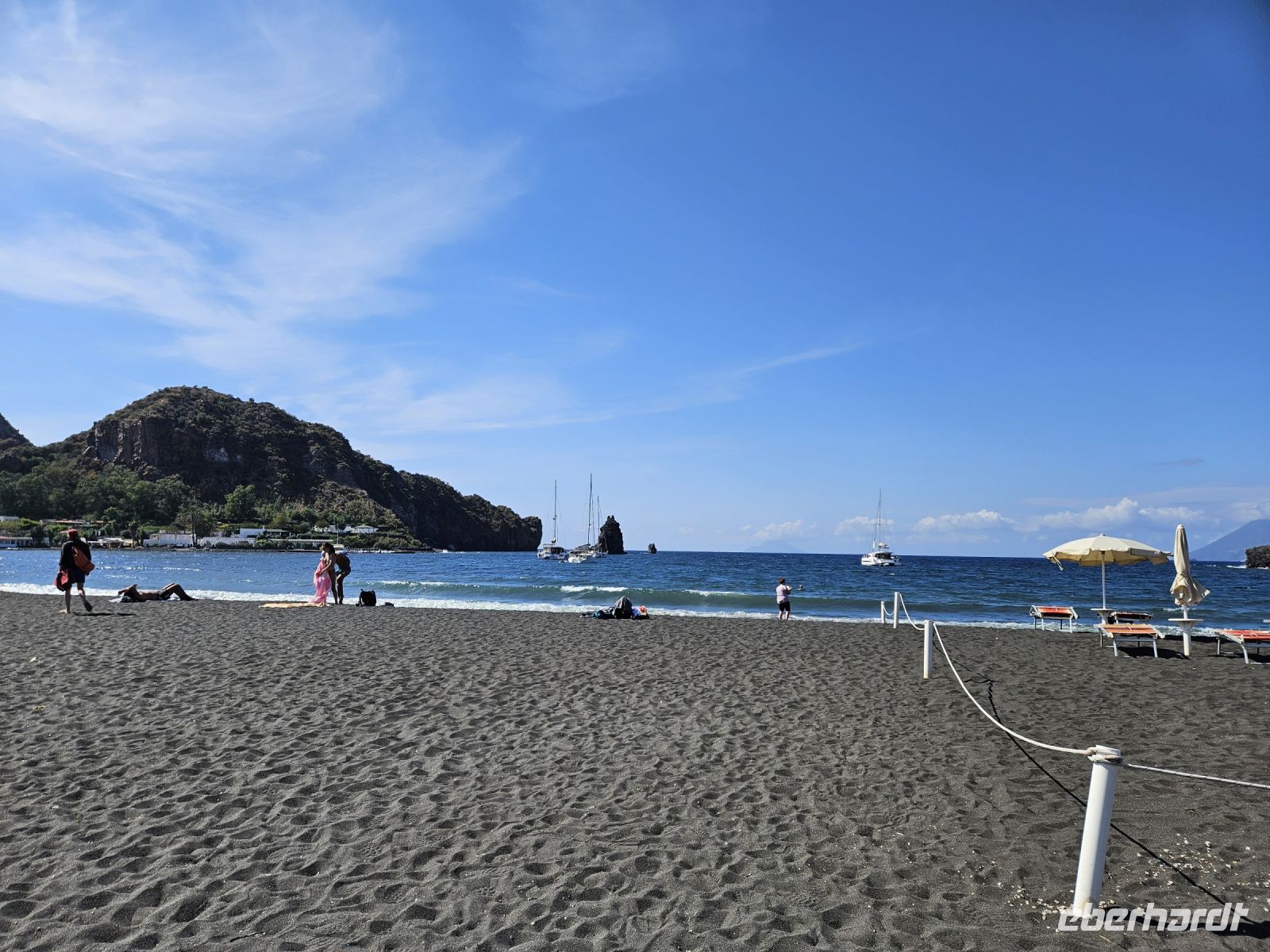 Eine kurze Schiffüberfahrt bringt uns zur nächsten Insel - VULCANO - wir können schon von weitem den Schwefel riechen. Das soll gesund sein: sich im Schlammbad wälzen, wir verzichten gerne, der Geruch reicht uns! Ausserdem sind die blubbernden Quellen wegen zu hoher Temperaturen geschlossen. Den dampfenden Vulkan immer im Auge wagen einige von uns den Sprung ins Meer. Und das am bekannten schwarzen Strand "Baia Negra Beach". Die Anderen erkunden den Ort bei einem Spaziergang. Gegen späten Nachmittag geht es zuerst per Schiff und danach mit Bus zu unserem Hotel in CAPO D`ORLANDO. Pünktlich zum Sonnenuntergang stehen wir vor unserem Hotel.