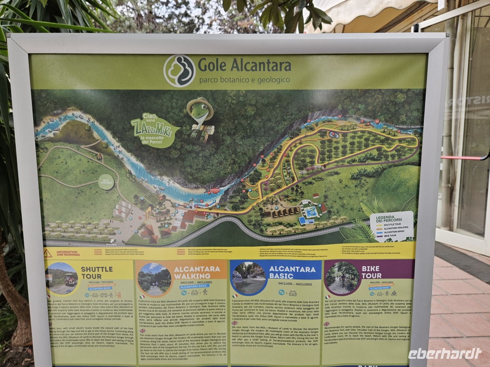 Da es heute unser letzter Ausflugstag ist, verabschieden wir in dieser angenehmen Atmosphäre unsere örtliche Reisleiterin Christiane sowie die Taffe Busfahrerin Rosalba. Beide haben ganz entscheidend zum Gelingen unserer Reise beigetragen. Das wissen wir zu würdigen und ausser einem kleinen Mitbringsel aus Deutschland gibt es auch reichlich Trinkgeld. Auf unserer Fahrt zu unserem Hotel für die nächsten 3 Nächte fahren wir durch das ALCANTARA - TAL zur gleichnamigen Schlucht, wo wir einen längeren Fotostopp einlegen. Wieder etwas, was man so auf Sizilien nicht erwartet - atemberaubend, wie sich der Fluss auf seinem Weg vom Nordhang des Ätna bis zur Küste von GIARDINI NAXOS sein Flussbett geschaffen hat. Nicht nur deshalb spricht man hier auch vom "Canyon im Osten Sizilien".