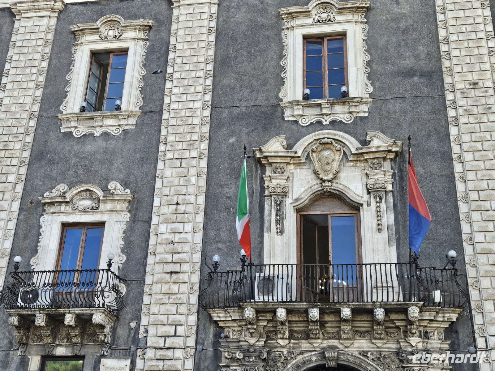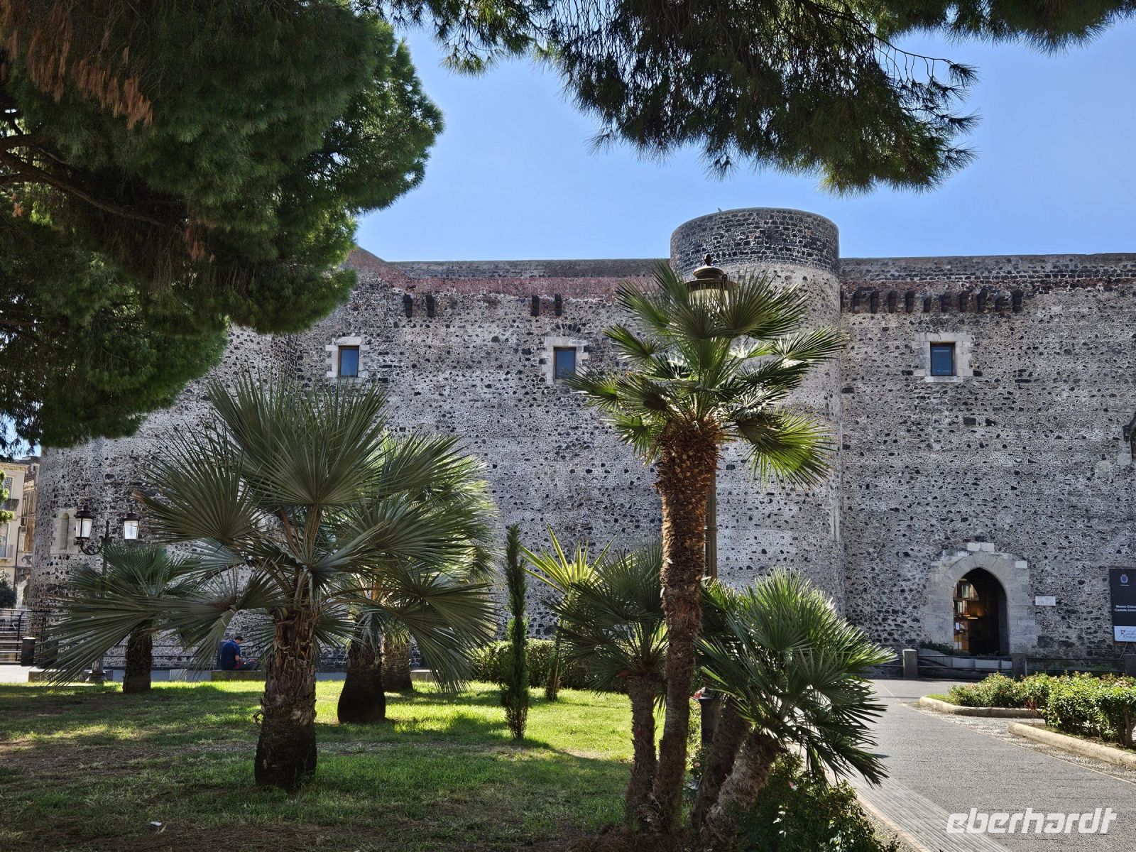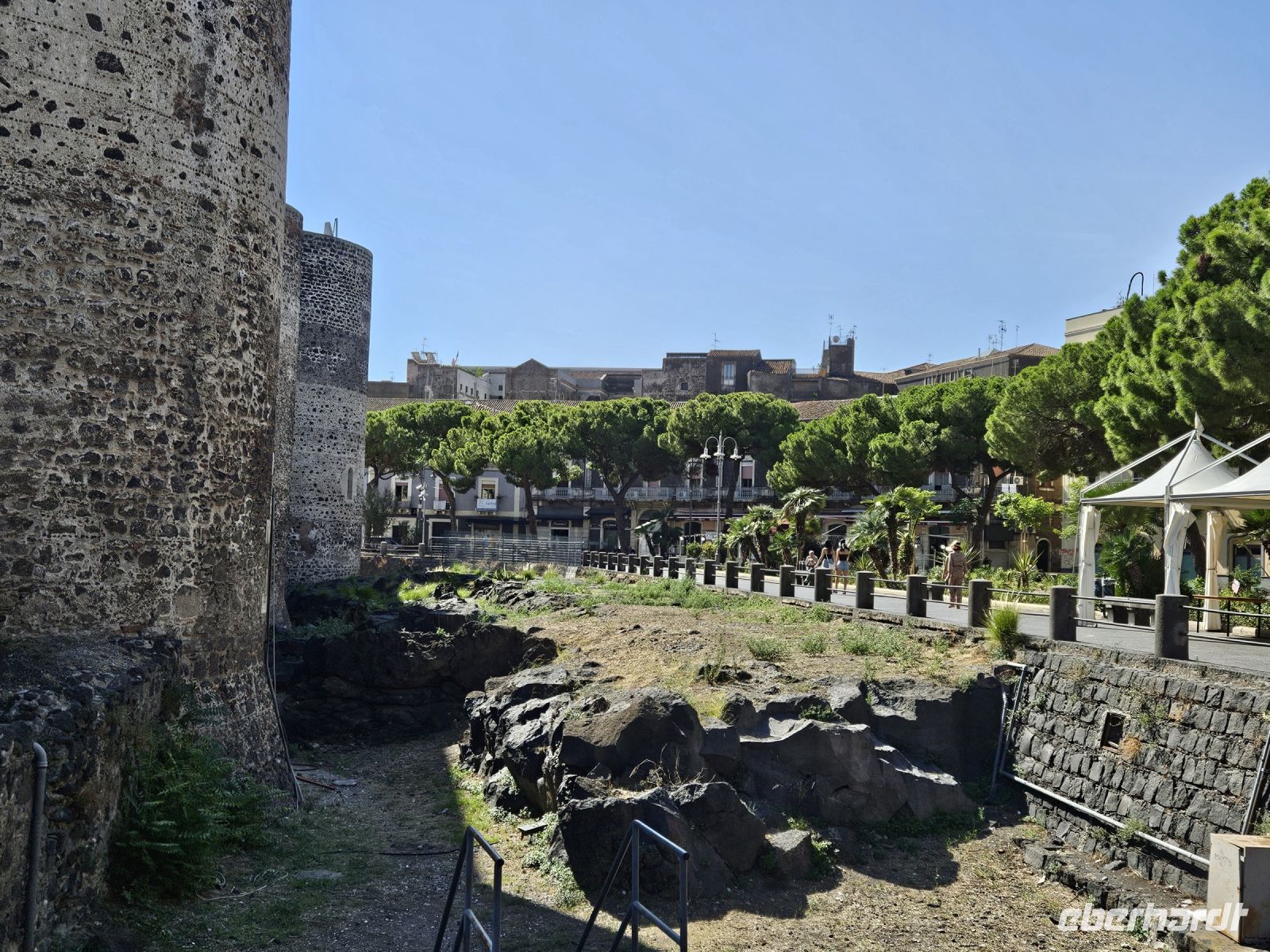 Angekommen in der Stadt sehen wir mit eigenen Augen, wie der nur 30 km Luftlinie entfernte Ätna das Leben und die Bauweise in der Stadt geprägt hat. Vor etwa 300 Jahren hat eine Lavazunge den damaligen Hafen aufgefüllt, vor dem CASTELLO URSINO kam sie zu Stehen. Wir stehen davor und können es kaum glauben. Vernichtender in der Geschichte Siziliens und besonders auch CATANIAS aren aber die vom Vulkan ausgelösten Erdbeben. Dem Letzten, 1693, verdankt die Stadt ihre Architektur aus einem Guss in tiefschwarzem Lavabarock, oft mit weißem Kalkstein abgesetzt. Deswegen wird sie auch "schwarze" Stadt genannt.