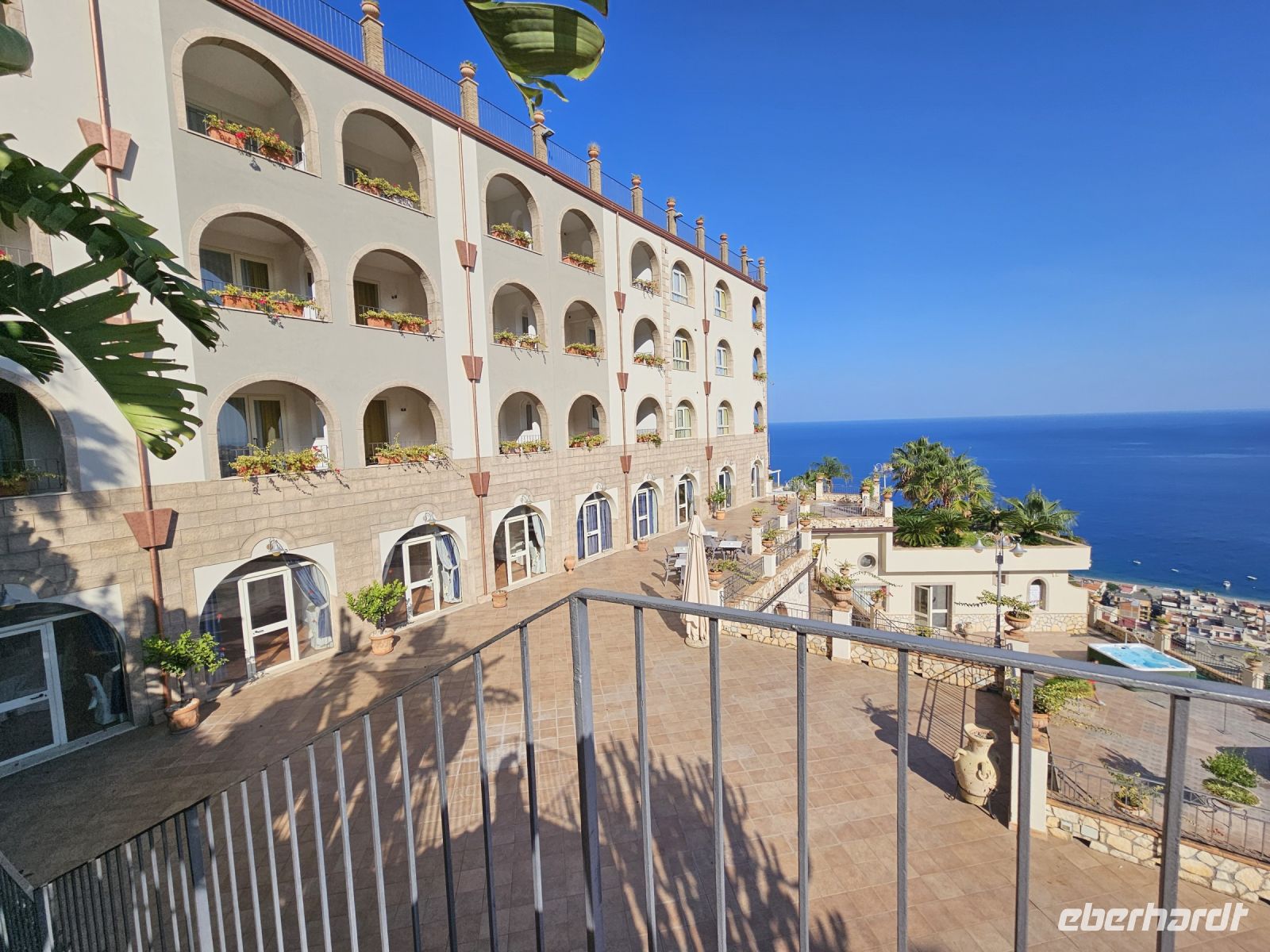 Gegen 17 Uhr checken wir im oberen Bereich des Hotels "Antares" in Letojanni ein. Da, wo unsere Rundreise am 19.9. begann, wird sie in 3 Tagen enden. In den nächsten 2 Tagen werden fakultative Ausflüge angeboten.