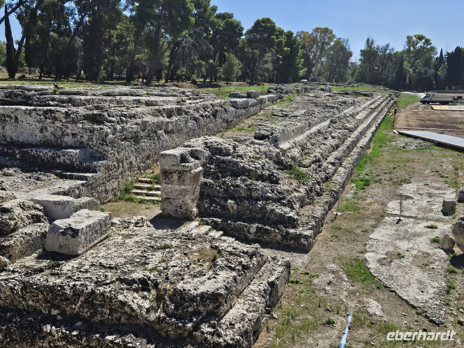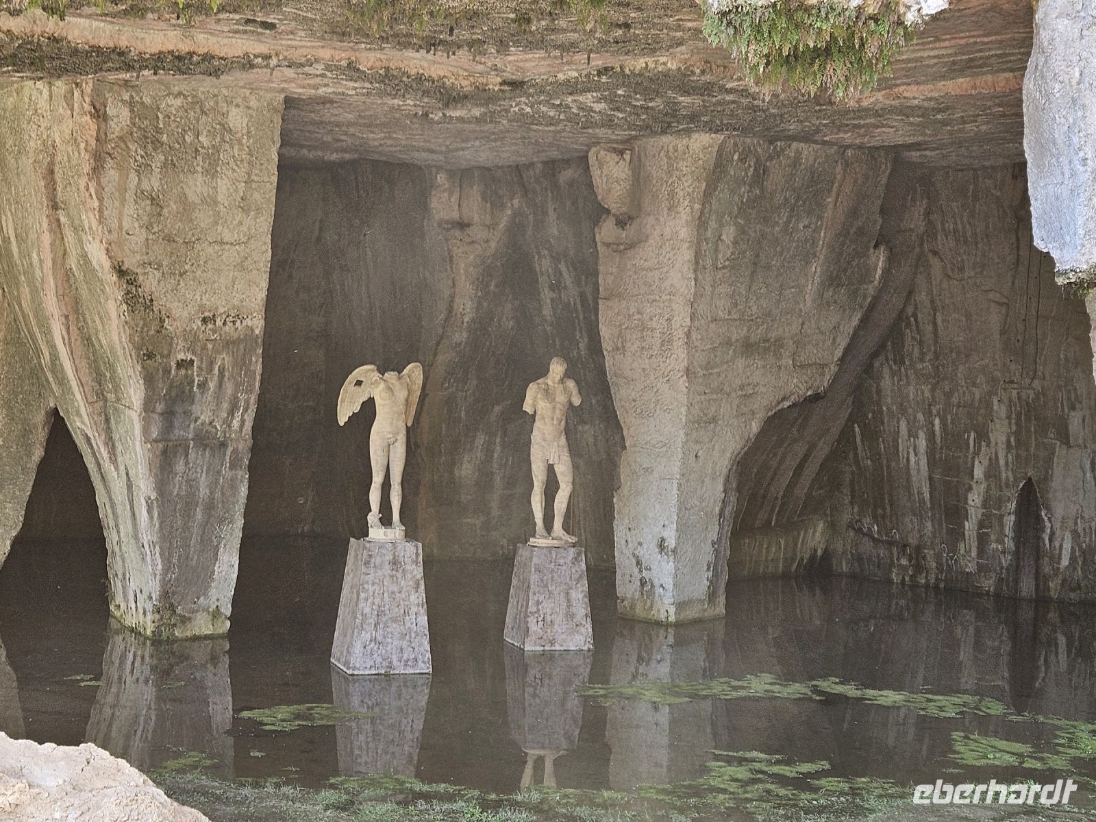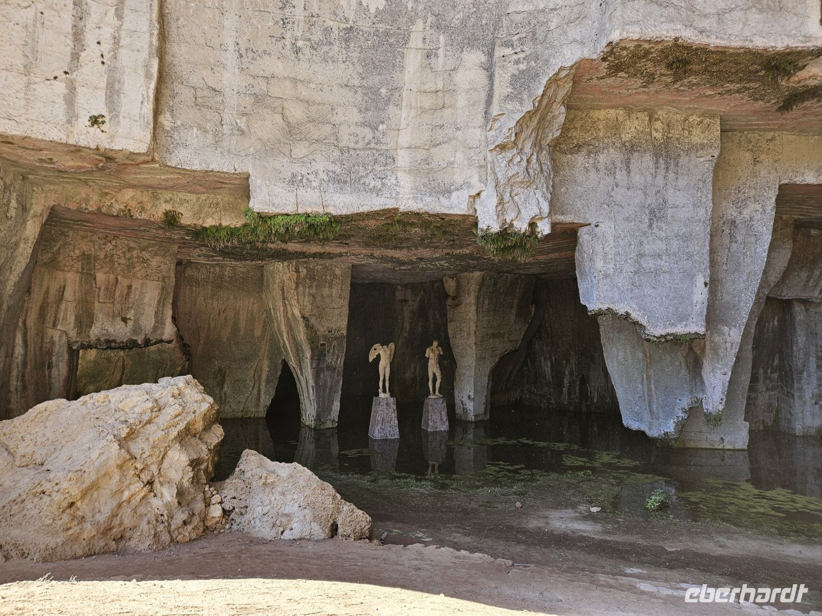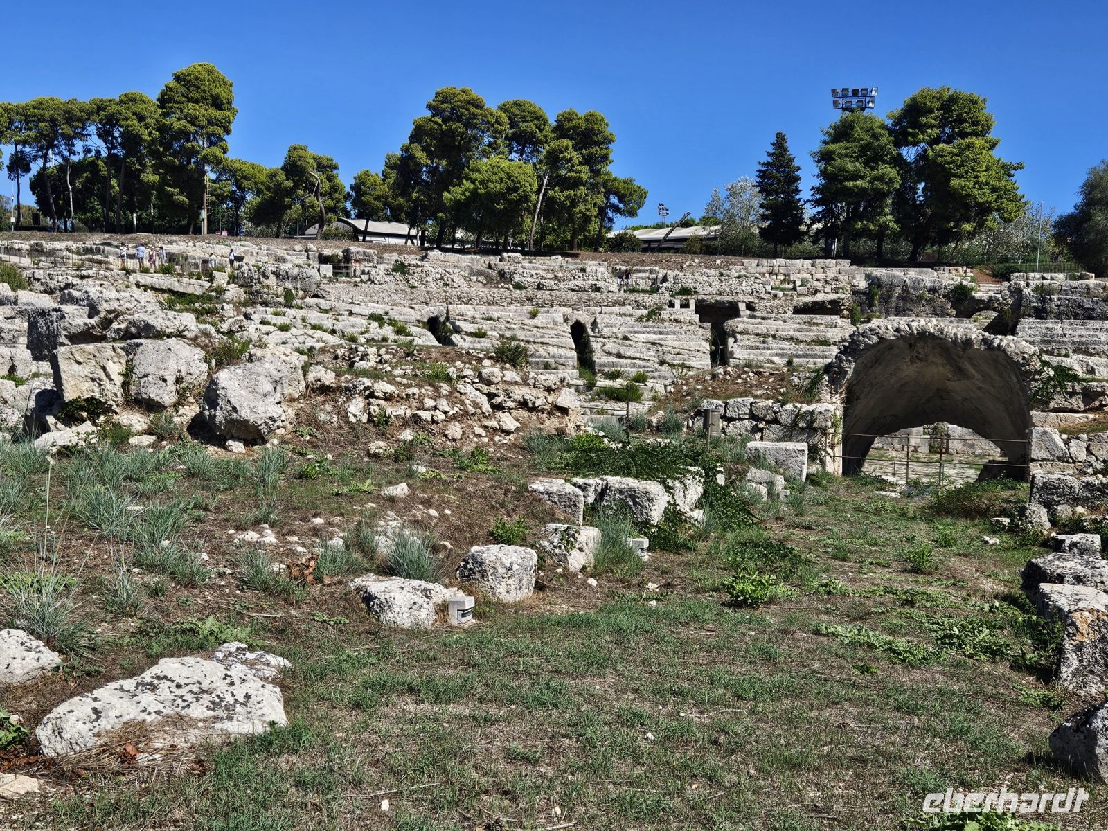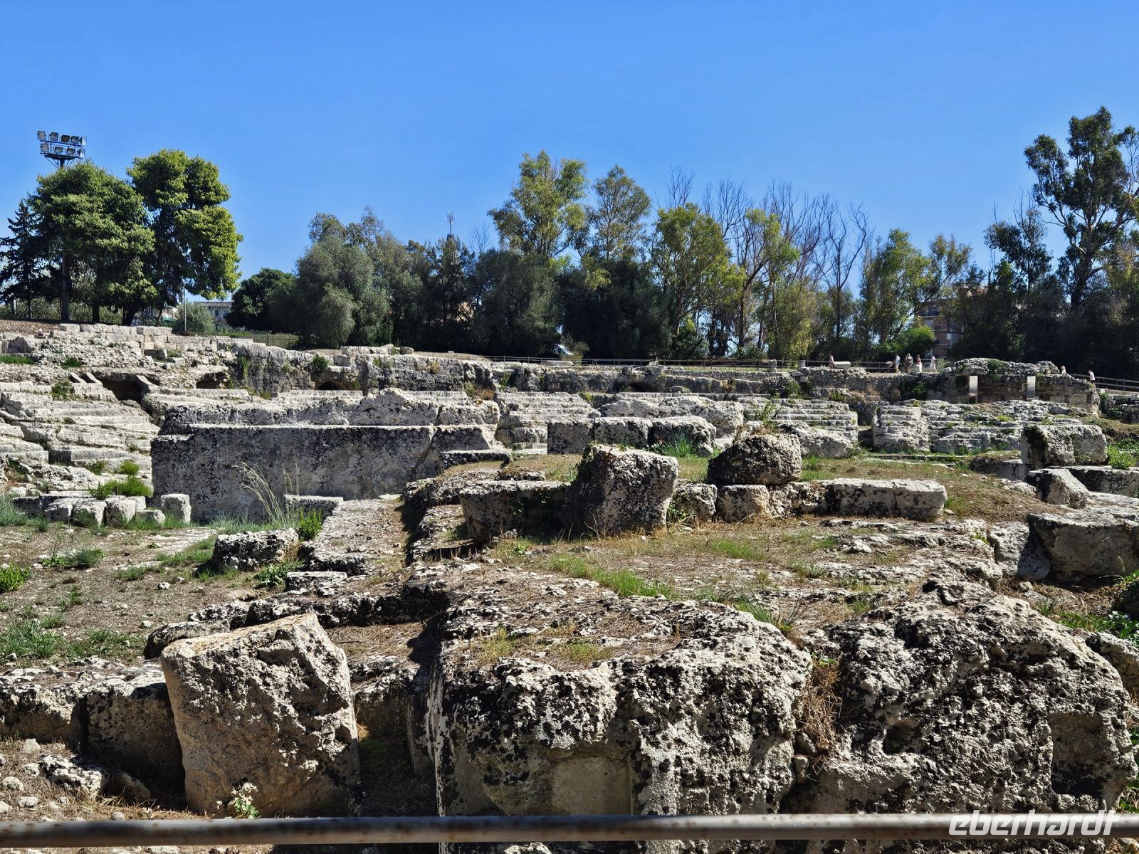 Nach dem Frühstück heisst es: auf zum nächsten Highlight - SYRAKUS - die weiße Stadt. Enza erwartet uns schon und nach kurzer nochmaliger Absprache über den Verlauf des Tages ( wir hatten am Vorabend entschieden, die Reihenfolge der Besichtigungen zu ändern) starten wir. Unser erstes Ziel an diesem Tag ist der zentral gelegene archäologische Park von NEAPOLIS mit seinen beiden Amphitheater (römisch und griechisch), der ehemalige Steinbruch, in dem auf Bäumen gleichzeitig 2 Zitrusarten wachsen - Zitrone und Orange. Das ganz besondere ist das ORECCHIO DI DIONISIO, eine Kalksteinhöhle, die wie ein menschliches Ohr geformt ist. Welch ein Zufall, dass wir die Besichtigung des archäologischen Parkes als erstes gewählt haben, er schliesst am späten Mittag, weil sich hoher Besuch ( G 7-Gipfel der Landwirtschaftsminister) angesagt hat.