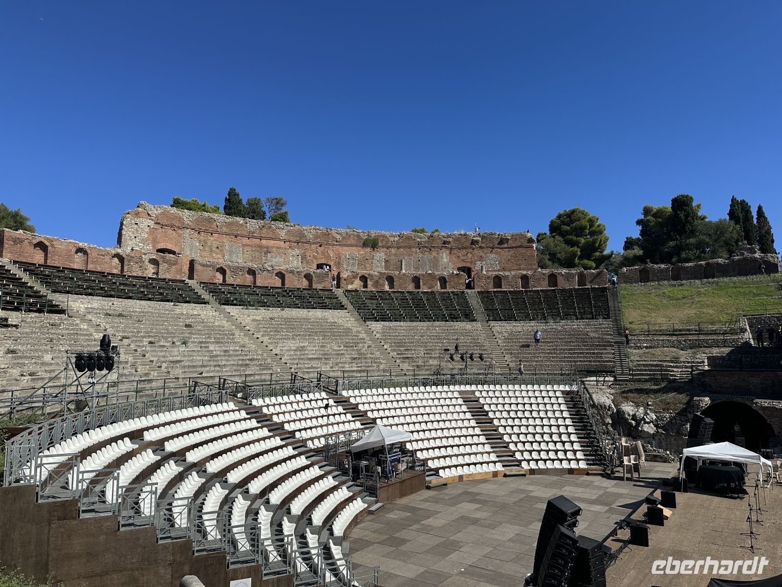 Am Nachmittag wartet der zweite Höhepunkt, das wohl bekannteste und sicherlich auch schönste Städtchen Siziliens Taormino. Es gehört zum Weltkulturerbe. Zunächst besichtigen wir das bekannte antike Theater, welches eine traumhafte Kulisse bietet. Es wird von vielen Liebhabern als die schönste Bühne der Welt bezeichnet. Wir schlendern über die Hauptstraße Corsa Umberto zwischen den beiden Stadttoren. Erfüllt und erschöpft kehren wir ins Hotel zurück. Der Abend klingt nach einem gemeinsamen Essen aus. Es war ein wunderschöner Tag.