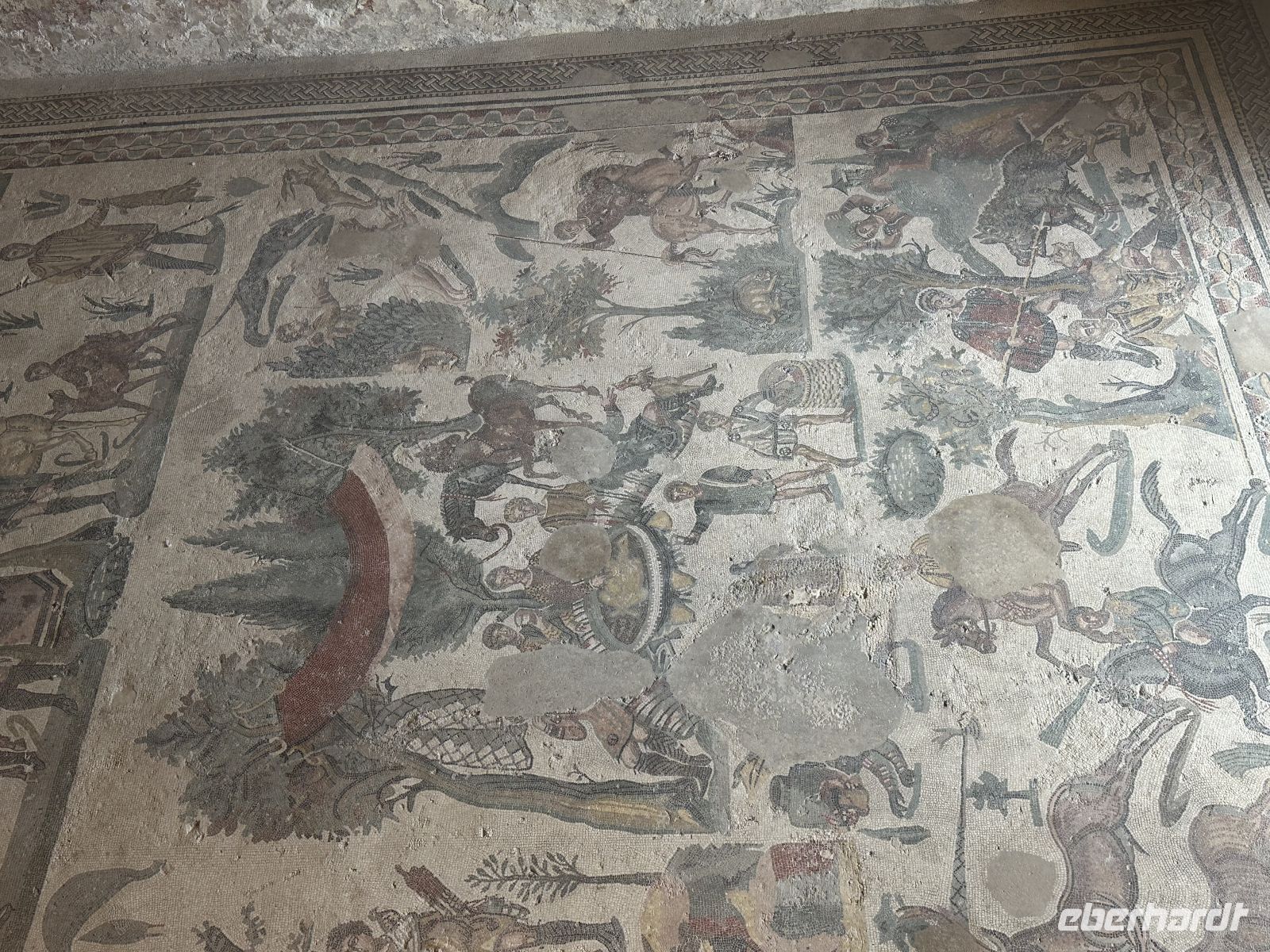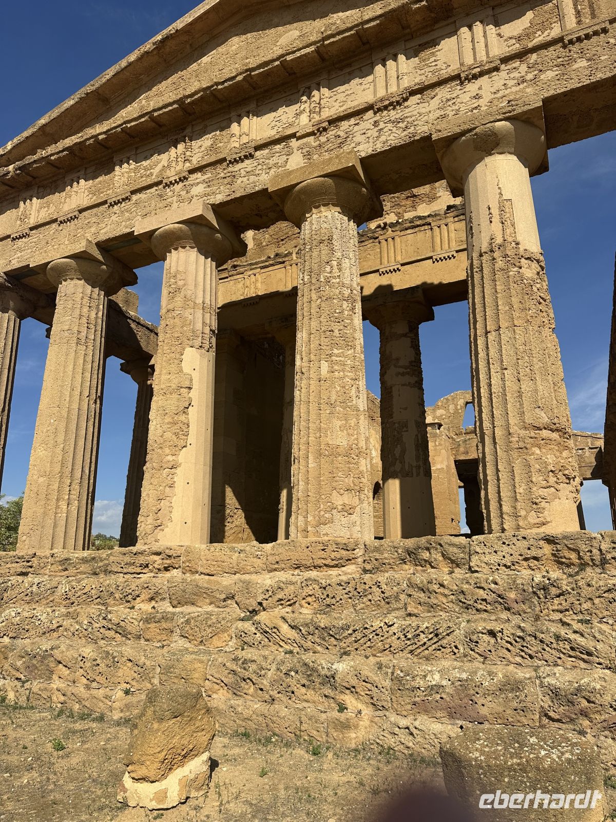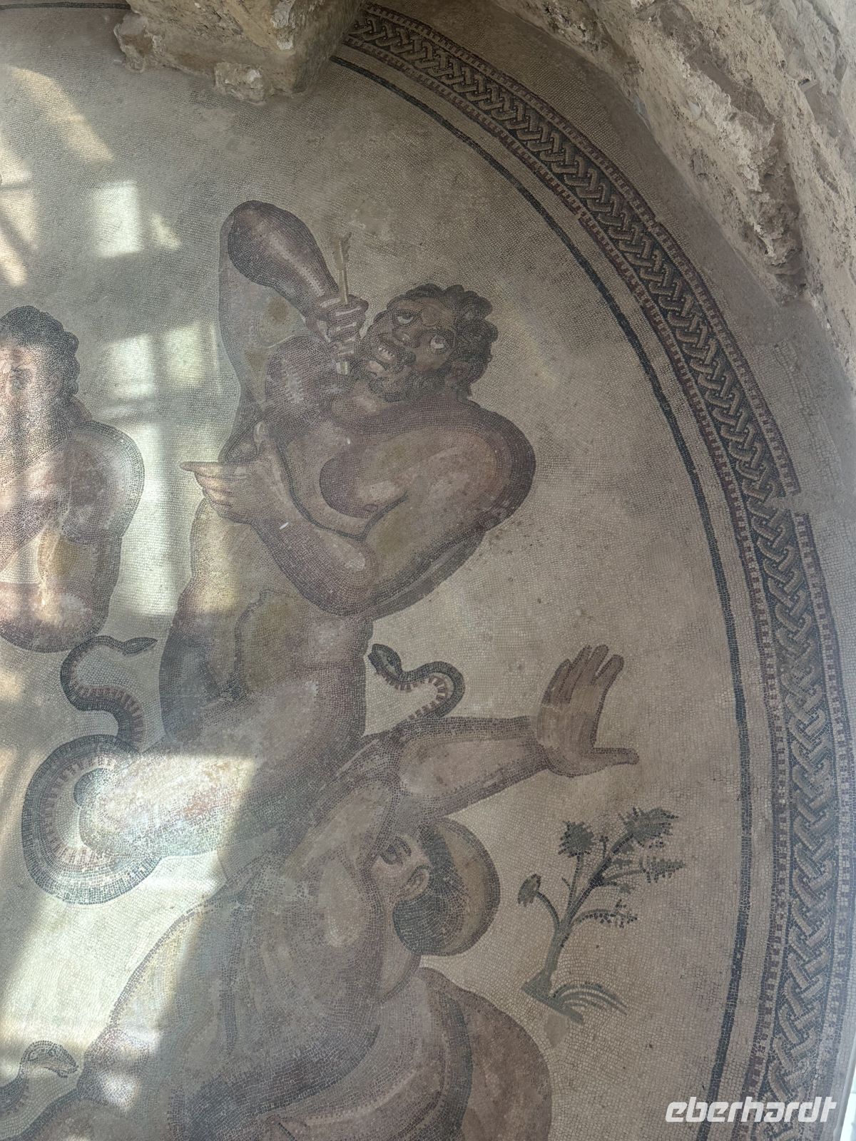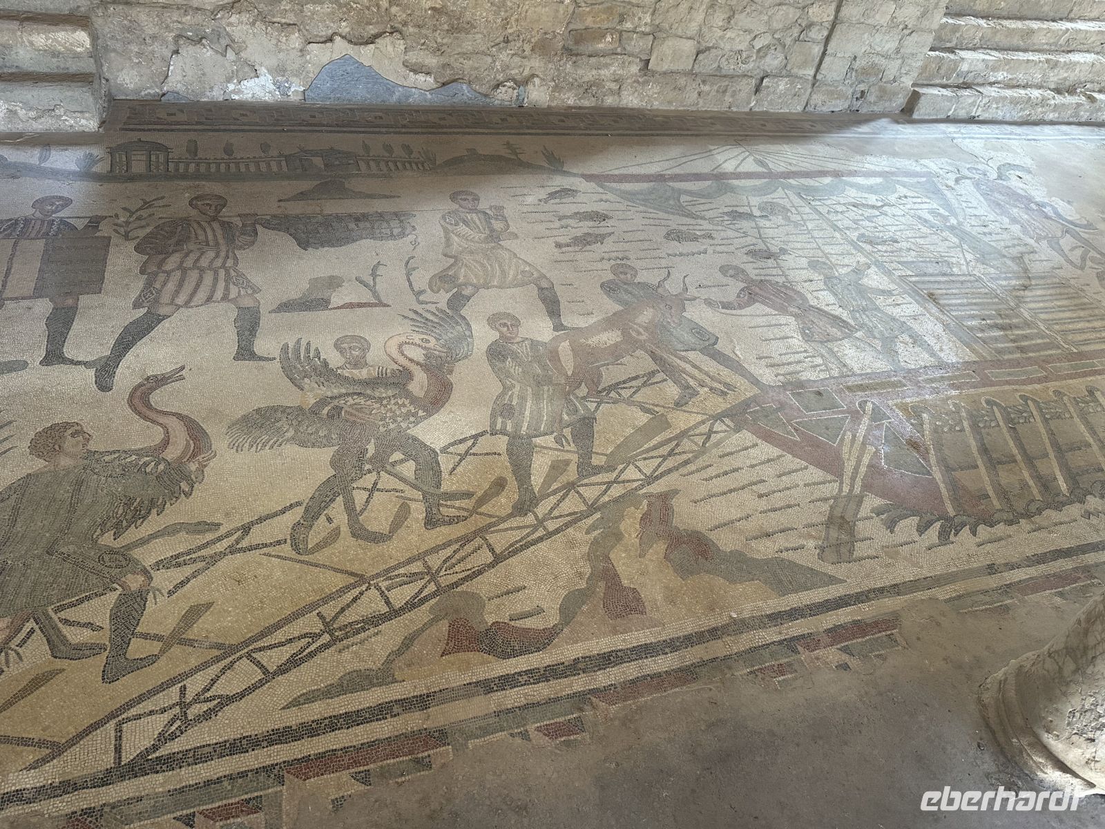 Nach dem Frühstück werden die Koffer verladen, wir wechseln heute das Hotel. Der Weg führt uns in den Südwesten Sizilien. Wir passieren die Ebene von Catania und erreichen nach erlebnisreicher Fahrt unsere erste Station die Ausgrabungsstätte Villa Romana. Es handelt sich hier wohl um den Land- und Jagdsitz eines römischen Kaisers aus dem vierten Jahrhundert .Unsere Reiseleiterin glänzt mit umfangreichen Geschichtswissen , was sie sehr verständlich rüberbringt. Die Villa Romana beeindruckt uns mit vielen Wohn- und Repräsentationräumen und einem umfangreichen Thermenbereich. Riesige Fußbodenmosaike in fast allen Räumen faszinieren alle Reise Gäste. Sie gehören zu den schönsten Mosaiken, die aus der Antike überliefert sind. In einem Raum sehen wir das bekannteste Motiv die Bikini Mädchen. Nach einer kurzen Stärkung fahren wir zur nächsten Station dem Tal der Tempel in Agrigent. Hier warten die Tempel der Hera, der Concordia und des Herakles auf uns. Alle sind beeindruckt! Noch einmal müssen wir 100 km überwinden und erreichen das Hotel Agricultura Case di Latomie . Es ist ein wunderschönes Hotel in Mitten traumhafter Natur. Viele Gäste nützen den Pool, um den Staub des Tages abzuspülen . Das Abendessen ist vorzüglich und reichhaltig voller sizilianischer Spezialitäten. Nach dem Abendessen sitzen wir unter Olivenbäumen und lassen die Eindrücke des Tages Revue passieren.