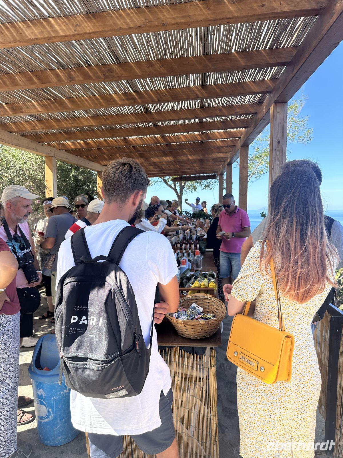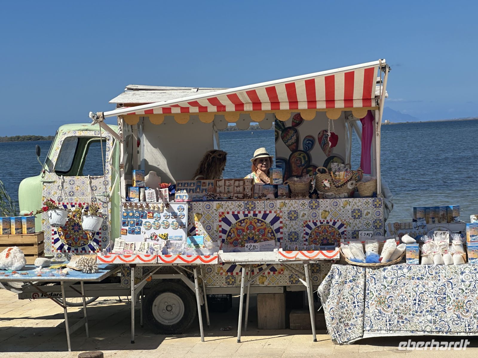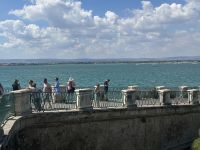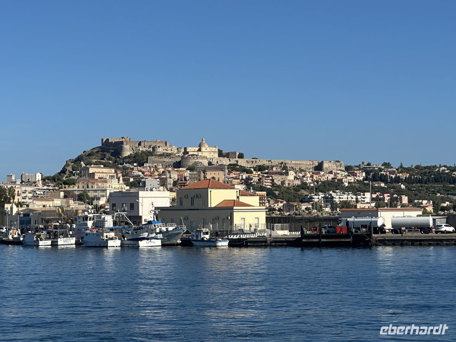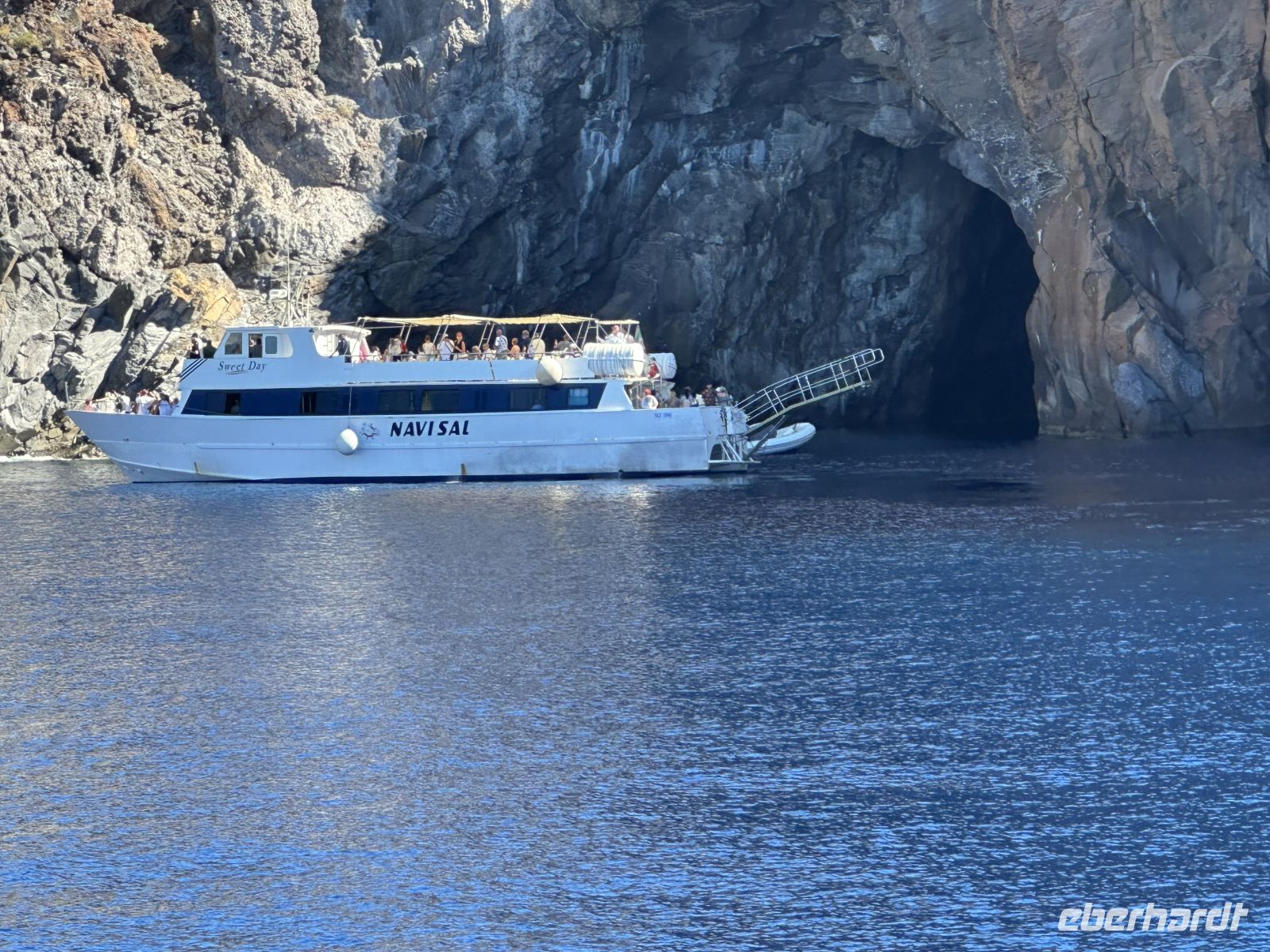 Das Meer ruft, heute erobern wir per Schiff die liparischen Inseln. Zuerst fahren wir mit dem Schiff an einer normannischen Festung am Hafen von Milazzo vorbei. Wir fahren zunächst an der Insel Vulcano vorbei und sehen immer wieder Spalten, aus denen Vulkangase entweichen. Die Schifffahrt dort ungefähr 1 Stunde, wir lassen uns den Wind um die Ohren wehen.Unser erster Halt ist auf der Insel Lipari. Dort erwartet uns ein Kleinbus, welcher uns rund um die Insel mit einem Fotostopp fährt. Wir genießen beeindruckende Aussichten und bewundern Flora und Fauna der Insel. Vom höchsten Aussichtspunkt der Insel haben wir eine weite Sicht auf andere Inseln. Wir erfahren, dass hier viele Filme gedreht wurden . Hier können wir Kapern probieren und kaufen.