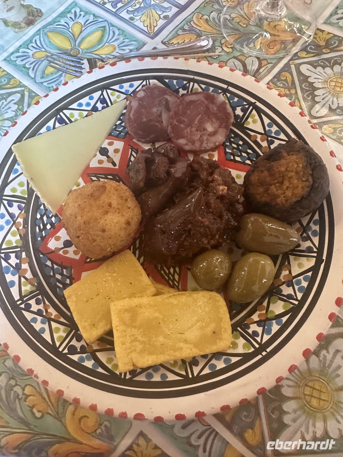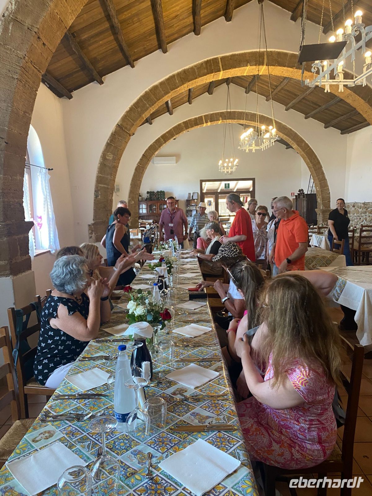 Voller Eindrücke erreichen wir die Tenuta Fratelli Sanacore . Hier wird uns ein mehrgängiges, typisch sizilianisches Menü serviert.