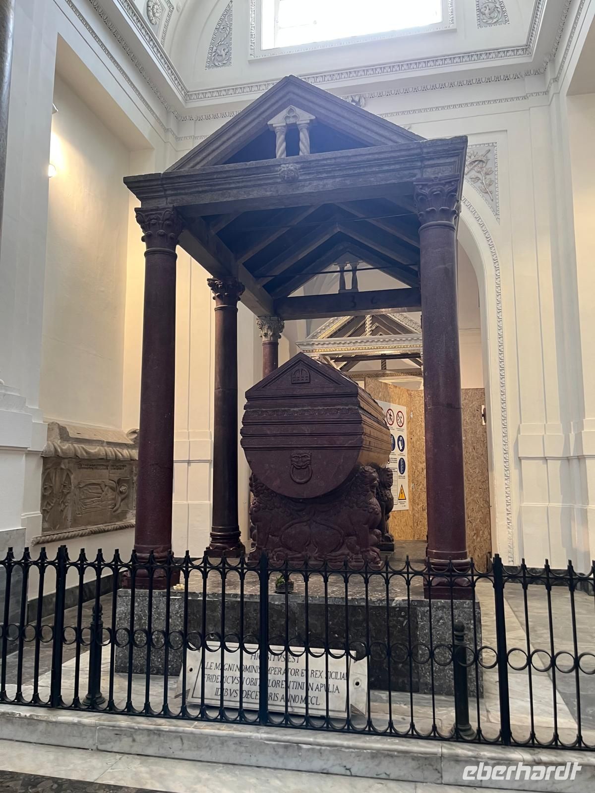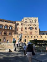 Palermo ist die Hauptstadt von Sizilien und die fünftgrößten Stadt Italiens. Die Stadt ist voller Leben, quirlig und aufregend. Zunächst besichtigten wir die Capella Palatina , durch welche uns die örtliche Reiseleiterin führt . Es handelt sich um die Hofkapelle des Palastes, sie ist zugleich Kirche und Thronsaal von Roger II . Mehrfach sehen wir das Wappen der Staufer, die Capella Palatina ist ein Wunderwerk der Malerei und Architektur , welche im gleichen Maße lateinisch byzantinisch und arabisch geprägt ist. Ein kleiner Stadtrundgang führt uns zu den wichtigsten Plätzen der Stadt. Hier beeindruckt uns die Kreuzung Quattro Canti und das Opernhaus. Nach einer kurzen Freizeit, welche die Gäste zu individuellen Stärkung nutzen, fahren wir nach Cefalu, einer kleinen Hafenstadt östlich von Palermo. Auch hier sehen wir kleine Gassen und eine beeindruckende Kirche im romanischen Stil. Nach einer etwa einstündigen Fahrt erreichen wir unser drittes Hotel. Es liegt direkt am Meer. Alle freuen sich auf das Abendessen und lassen den Tag am Strand ausklingen.