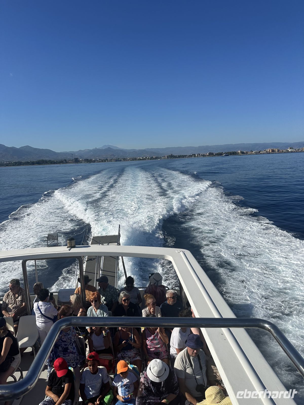 Nach einer kurzen Schifffahrt erreichen wir die zweite Insel, Vulcano. Überall riecht es nach Schwefel . In der Freizeit können die Gäste baden , wandern oder etwas essen. Die Schwefelbäder sind wegen zu hoher Temperaturen geschlossen. Wir genießen die Rückfahrt über das Meer und fahren mit dem Bus zu unserem Hotel. Ein weiterer erlebnisreicher Tag endet.