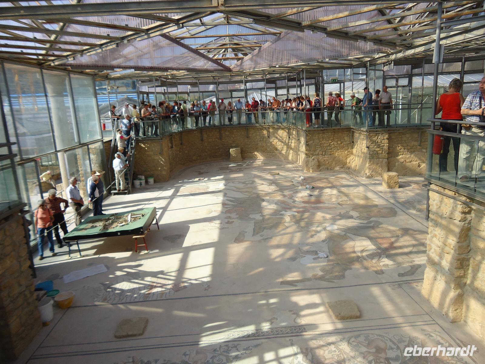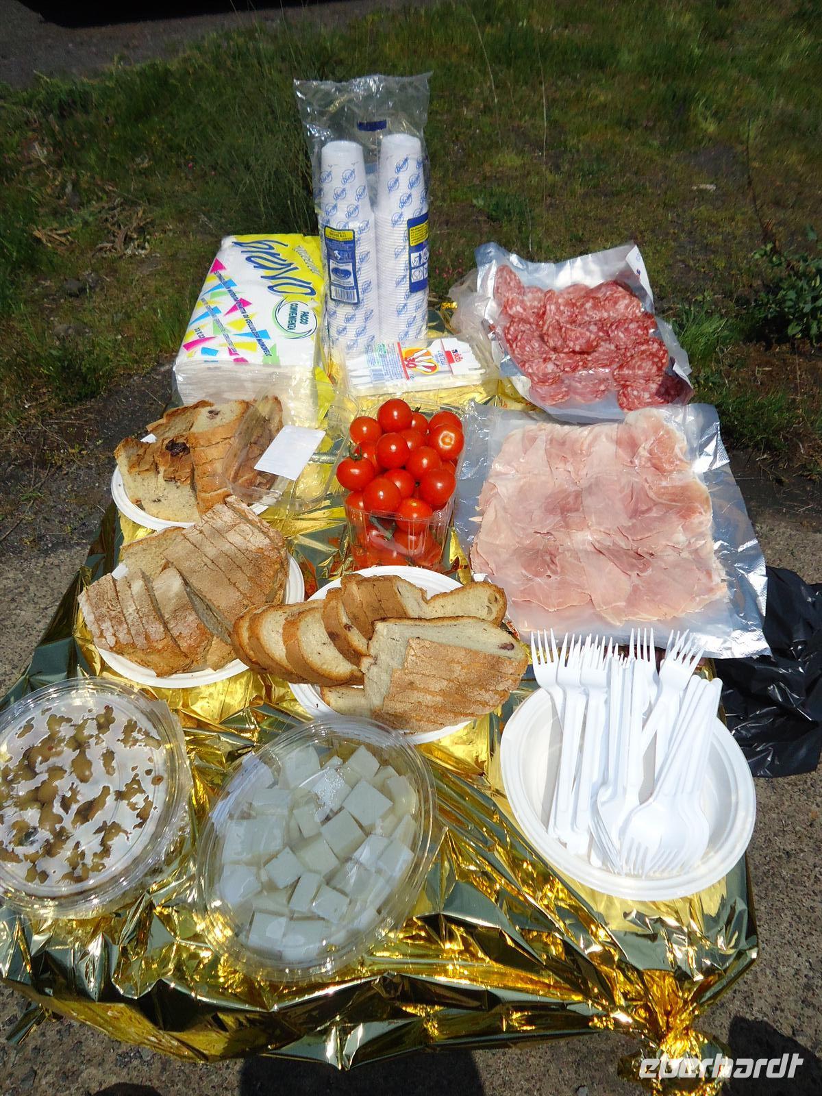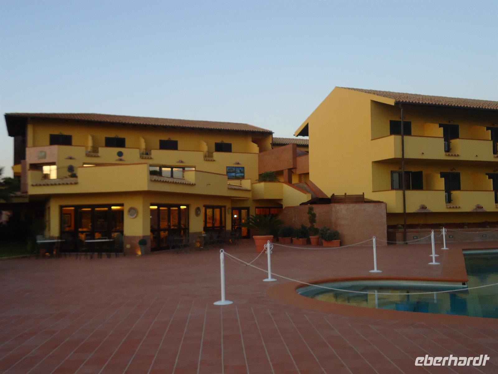 Unser heutiges Ziel war der Ätna - der höchste und aktivste Vulkan Europas, dass es der aktivste Vulkan Europas ist , davon haben wir uns selbst noch ein Bild machen dürfen. Wir fuhren mit dem Bus auf halbe Höhe. Von dort aus ging es mit der Seilbahn und dann mit dem Jeep nach oben. Bei nur 5 ° aber strahlendblauen Himmel und somit guter Sicht, bestaunten wir den Ätna. Der Vulkan hatte in der Nacht vorher einen kleinen Ausbruch gehabt, so dass er noch sehr aktiv war als wir oben waren. Es brummte und knallte so laut, als wäre ein Gewitter direkt neben uns. Auch große Steine spuckte er heraus. Da dies alles sehr gefährlich war durften wir leider keinen Spaziergang machen. Für unser kleines Picknick am Mittag suchten wir eine geeignete Stelle. Provisorisch bauten wir in einer Seitenstraße, mit Blick auf dem Ätna, unseren Tisch auf und servierten unseren Gästen Brot, Wurst, Käse, Oliven und Tomaten. Wein und Wasser durfte natürlich auch nicht fehlen. Auch das Donnern des Ätnas war noch zu hören. Gestärkt und voller guter Laune von diesen einmaligen Erlebnis auf dem Ätna fuhren wir nach Piazza Armerina und besuchten die Villa Romana, welche berühmt für ihre Bodenmosaiken ist. Leider wird momentan viel restauriert, so dass wir nicht alles sehen konnten. Dennoch blieb eine großer Teil der vielfältigen Pracht erhalten. Thermen, Portale, Mosaikflächen von mehr als 3000m², die Jagdszenen, Schlachten und Mythosmotive darstellen. Am späten Abend erreichten wir unser Hotel „Baia di Ulisse“ in San Leone bei Agrigent.