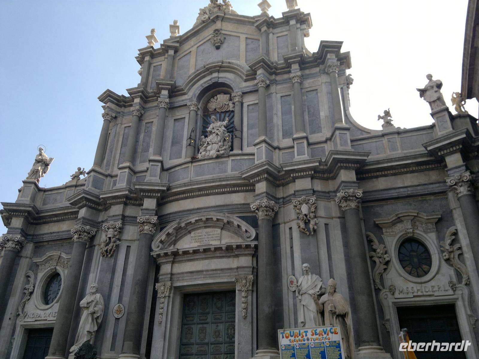 Nach einem reichhaltigen Frühstück beginnen wir den sonnigen Tag mit der Fahrt nach Catania. Catania ist mit über 300.000 Einwohnern die zweitgrößte Stadt Siziliens und zählt zu den wirtschaftlichen Zentren der Insel. Die Geschichte Catanias ist aufs Engste mit dem Ätna verknüpft. In nur 30 km Entfernung gelegen, hat die Stadt im Laufe der Jahrhunderte mehrmals die geballte Kraft des Vulkanes zu spüren bekommen. Genau deswegen wir die Stadt auch als „Tochter des Ätna" bezeichnet.