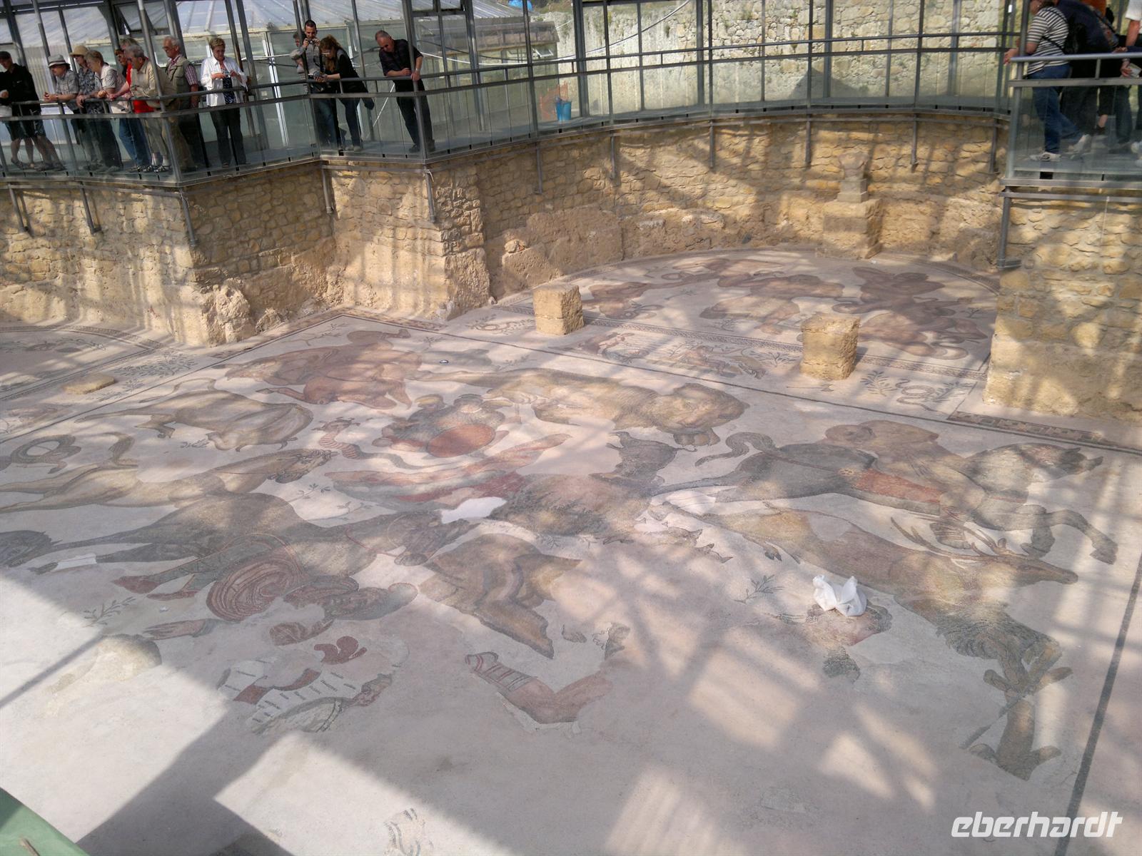 Mitten in den saftig grünen Bergen der Insel wurden bereits im 18. und 19. Jahrhundert Mosaiksteinchen gefunden. Nach den ersten systematischen Grabungen im 20. Jahrhundert stieß man auf die Villa Romana del Casale. Anfangs legte man großflächige Fußbodenmosaike zutage, später kam ein Gebäudekomplex mit Mosaiken von einer Fläche über 3.500 m² zum Vorschein. Aufgrund des Figurenrepertoirs sowie der Kleidermode und der Haartracht konnten die Darstellungen in das 4. Jahrhundert n. Chr. datiert werden. Dabei verraten der Stil und die Arbeitstechnik nordafrikanische Einflüsse. Leider ist zur Zeit wegen Restaurierungsarbeiten nur ein Drittel der beeindruckenden Anlage zu besichtigen.