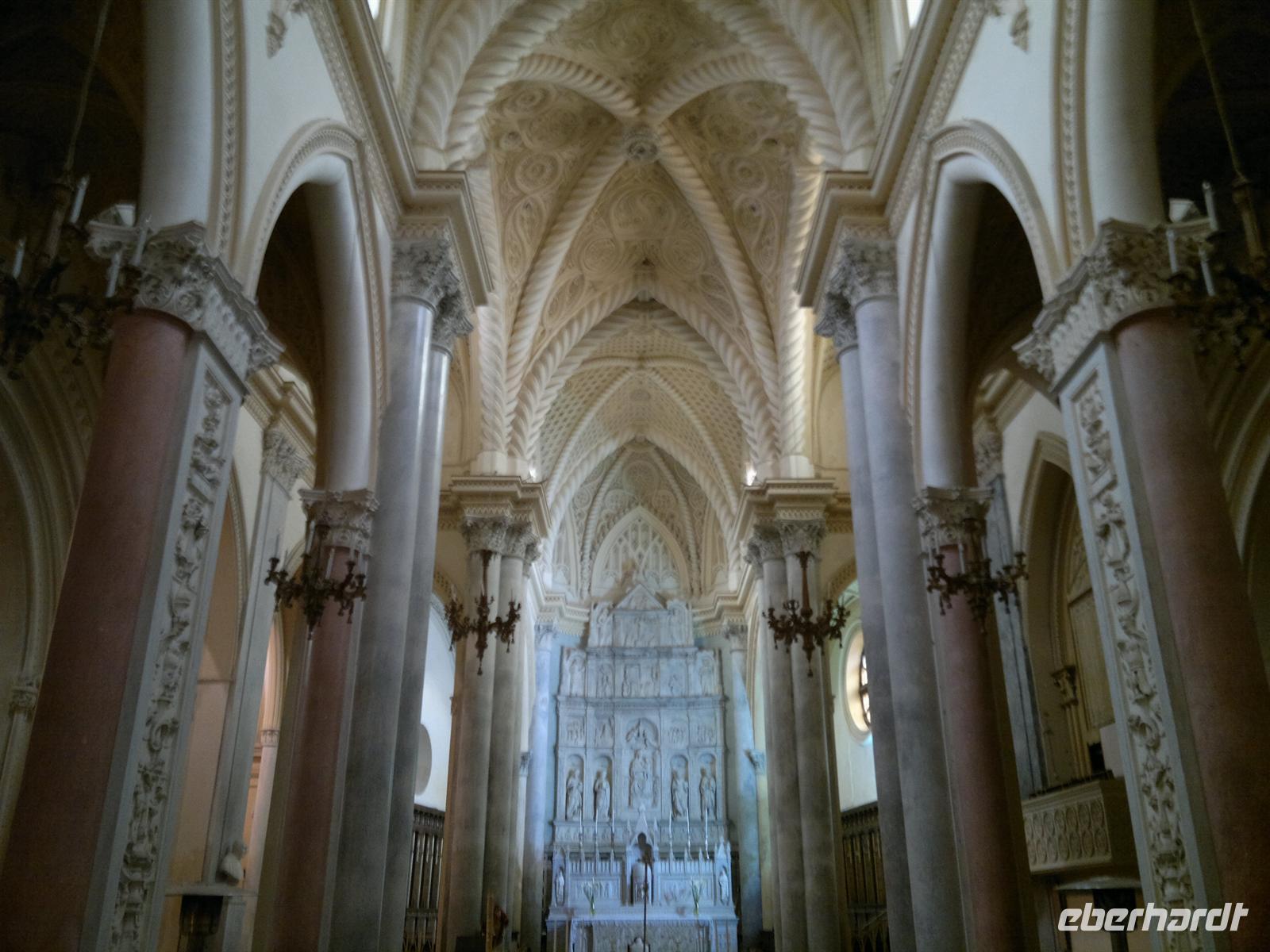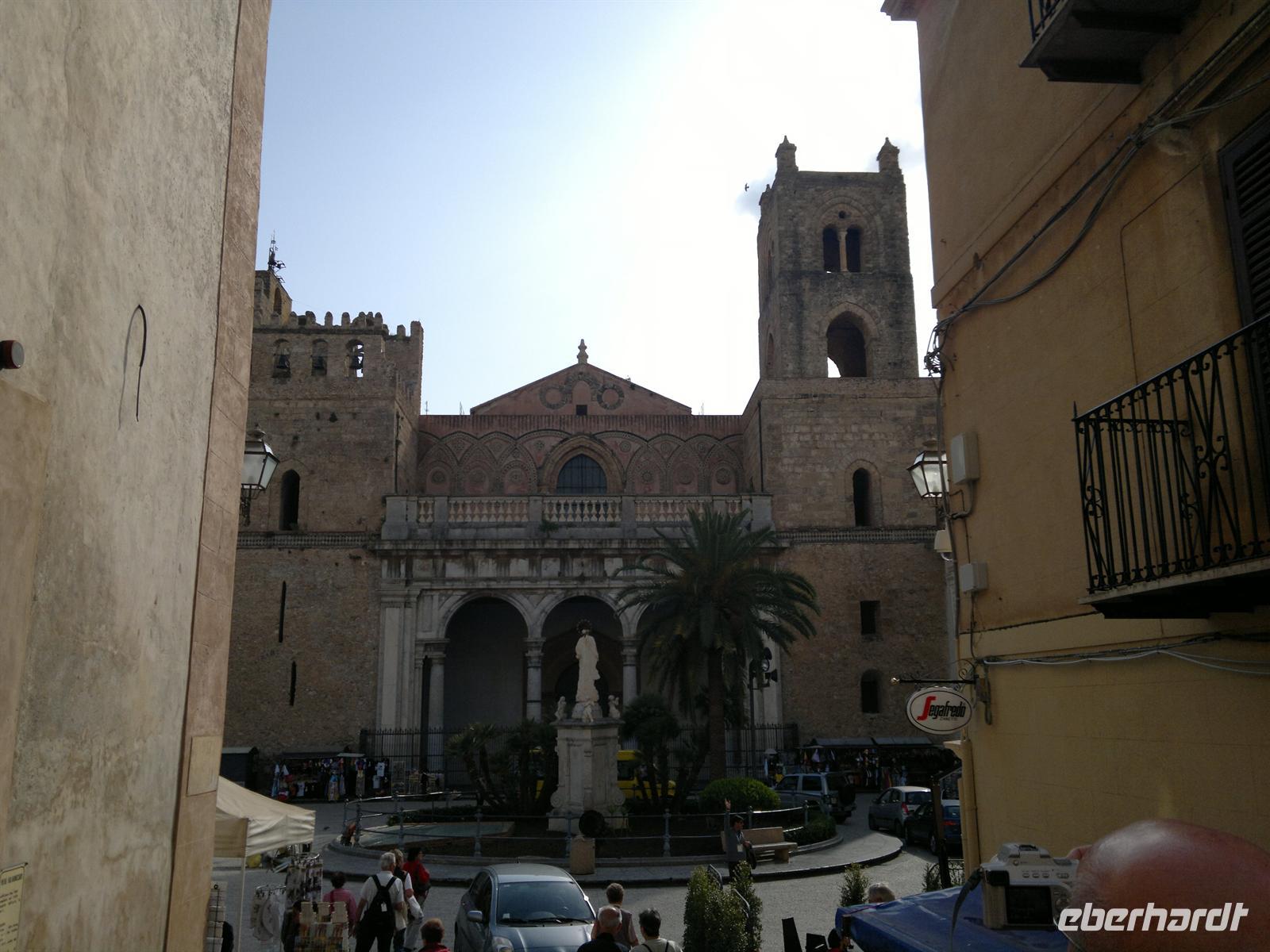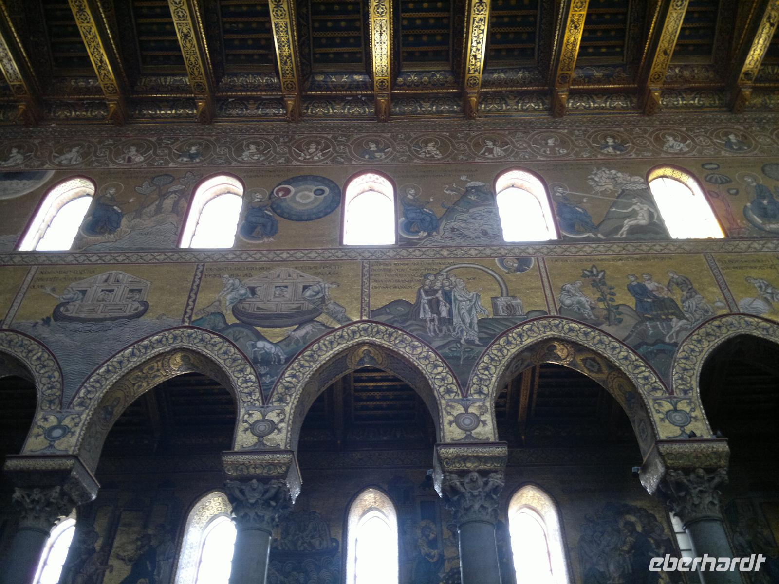 Nur 8 km weiter befindet sich die Konkurrenz zum Dom von Palermo. Die Cattedrale Santa Maria Nuova. Wilhelm II. ließ den Dom im Machtkampf mit dem Palermitaner Erzbischof entstehen. Der Kirchenraum beeindruckt allein durch seine Größe (102 x 40 m). Unsere Gästeführer beschreibt uns die normannische Kirchenbaukunst und wir sehen die herrlichen Mosaike, die den größten Mosaikzyklus des Abendlandes bilden. Ein wahres Meisterwerk!