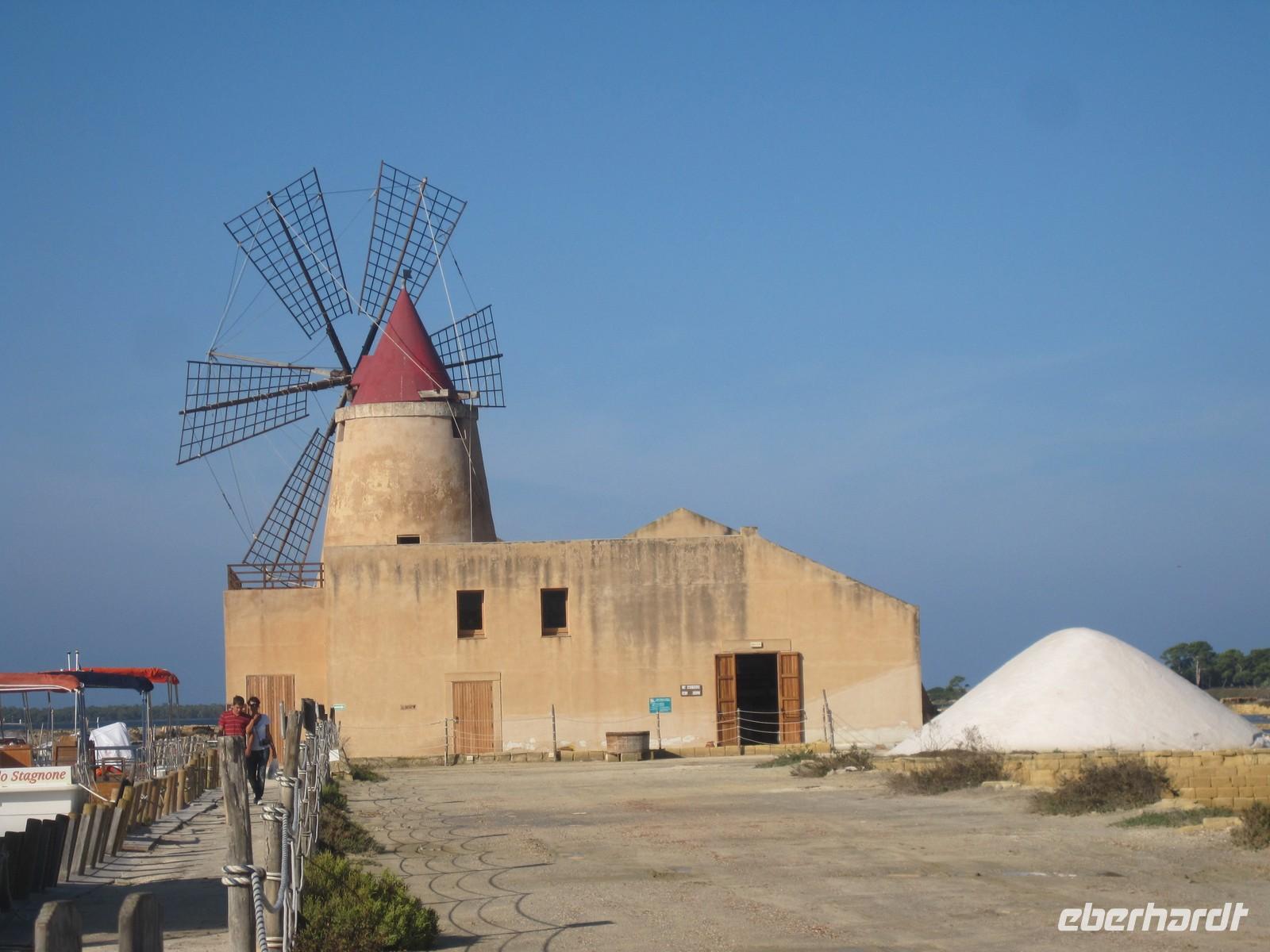 Auch am 5. Tag wurden wir wieder mit Sonne belohnt, ob das an dem leckeren Abendessen liegt, das wir immer so schön aufgegessen haben Wir freuen uns auf den Tag und starten zeitig mit gepackten Koffern in Richtung Westsizilien. Die erste Attraktion erwartet uns in Marsala, dem größten Weinanbaugebiet Siziliens. Marsala wird der süßliche bernsteinfarbene Likörwein auf Sizilien genannt, den wir gleich am frühen Morgen verkosten durften. Zum Glück haben wir alle reichlich gefrühstückt. In einer Weinhandlung an der Küste probierten wir mehrere Sorten des Liköres sowie Mandelgebäck und sizilianische Schokolade. Nach diesem kleinen aber feinen 2. Frühstück machen wir uns auf den Weg zu den Salinen. Am westlichsten Punkt Siziliens hatte man einen herrlichen Blick auf die Insel Favignana mit nur 10.000 Einwohnern. Schon erreichten wir die Salzberge, die majestätisch in die Höhe ragten und