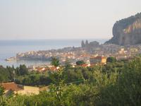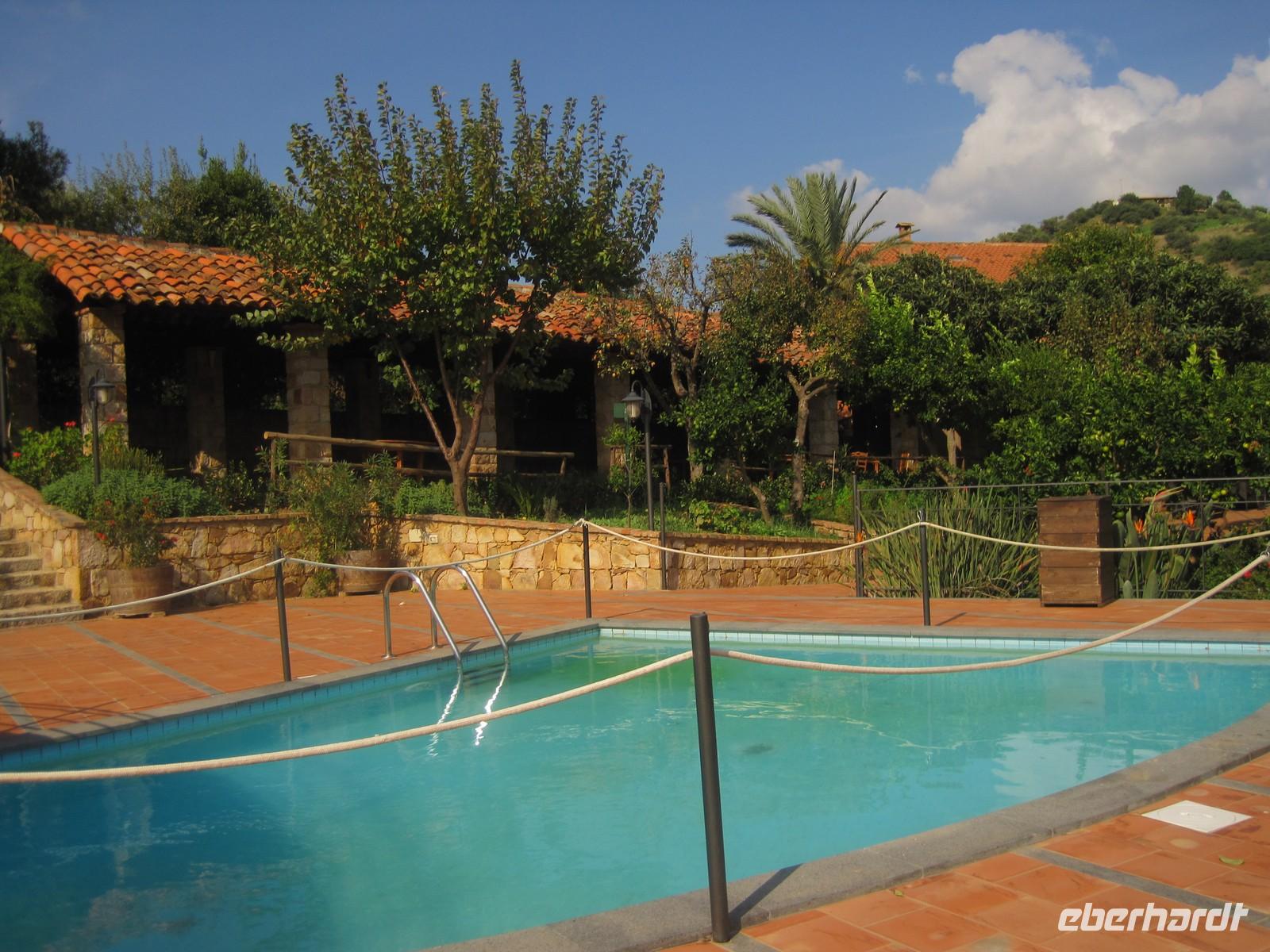 verweilten. Wenig später schloss sich Pasquale mit viel Eifer und Talent den Musikern an, so dass wir dachten, wir müssen uns einen neuen Busfahrer suchen. Nach dem Essen nahmen wir erst die volle Pracht dieser Gartenanlage wahr und wussten nicht was uns mehr begeistert- Orangenbäume, Olivenhaine, Rosen, ein herrlicher Pool oder doch die quickenden Schweine und Perlhühner. Keiner wollte Abschied nehmen, so dass Pasquale befürchtete, leer zurückzufahren. Aber natürlich war der Tag noch nicht zu Ende und die Besichtigung des Bergdörfchens Castelbuono stand noch auf dem Programm. Schon wieder "mussten" wir essen. Diesmal gab es Mandelcreme und Kaktusfeigenlikör, der seine Verkostung wert war. Ein herrlicher Tag ging zu Ende und noch lange blieben diese Eindrücke in Erinnerung.
