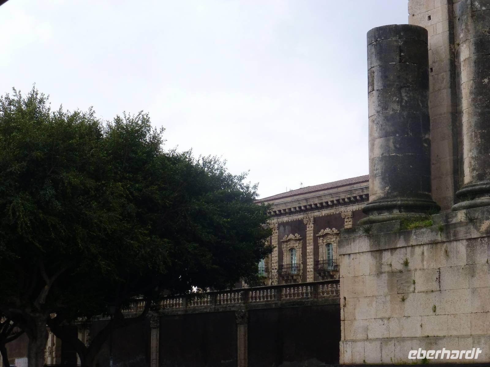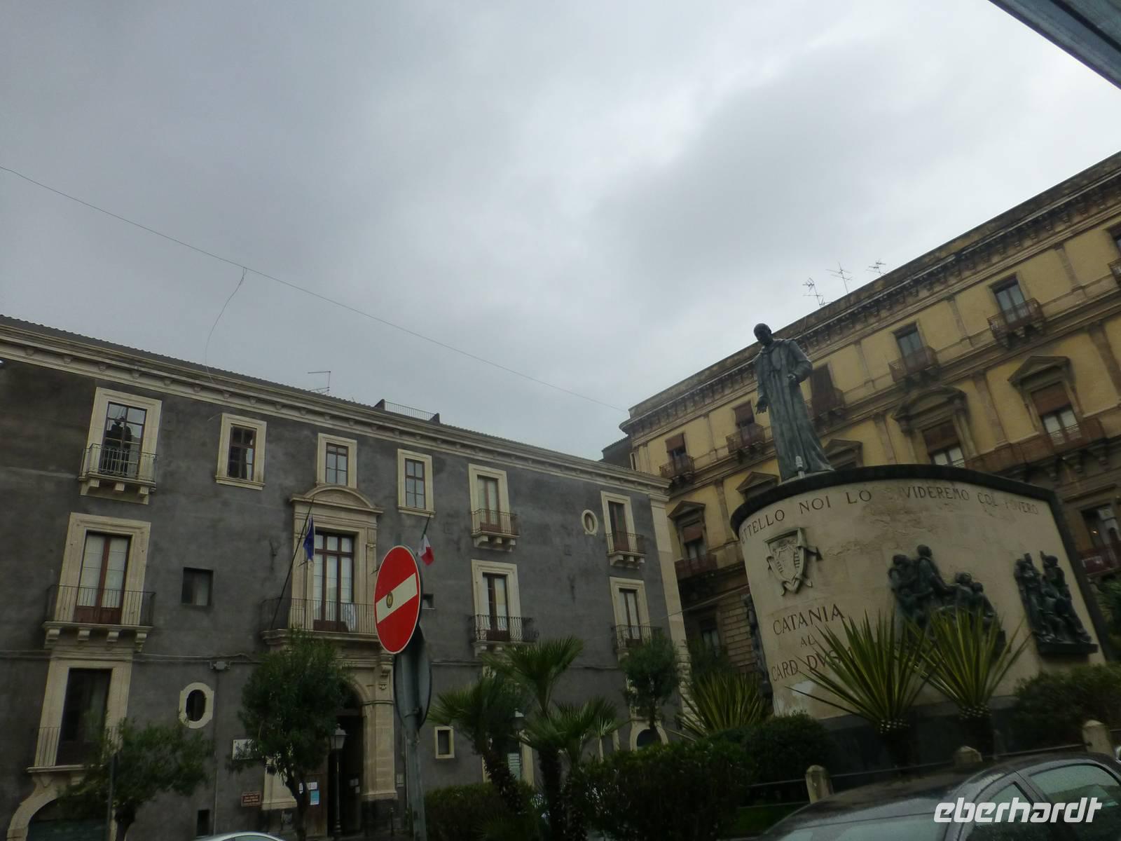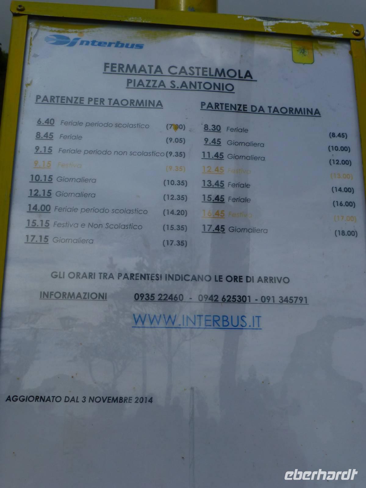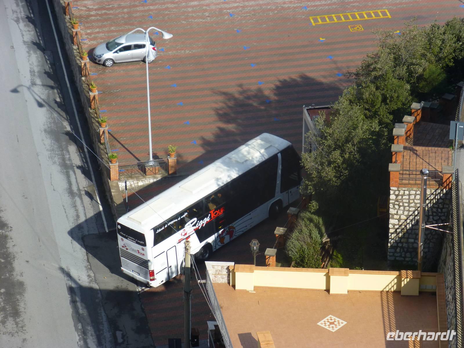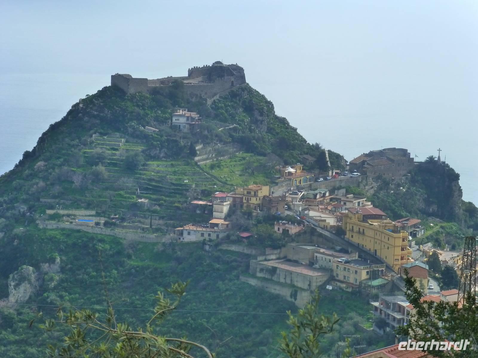 Die Sonne kam zum Vorschein und einige unternahmen einen Strandspaziergang und fuhren am Mittag mit dem Linienbus nach Taormina. In der schönen Altstadt lohnte ein Bummel durch die Gassen und natürlich der Besuch im griechischen Theater. Ich fuhr am Morgen mit dem Linienbus hinauf nach Castelmola. Dieser Ort liegt oberhalb von Taormina und ist von Touristen noch weniger bekannt und von daher noch nicht überlaufen. Also momentan noch ein echter Geheimtipp für Sizilien-Freunde. Bekannt ist der Ort auch für seinen Mandelwein. Ein schöner Blick auf die Bucht und ein kurzer Blick hinüber zum Ätna belohnte schon die Auffahrt. Eine fast absolute Stille bevor ein Reisebus mit einer Gruppe Italiener eintraf. Gemütlich ging es zu Fuß bergab nach Taormina bis zum Domplatz.