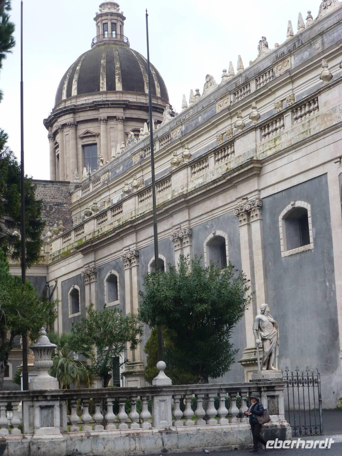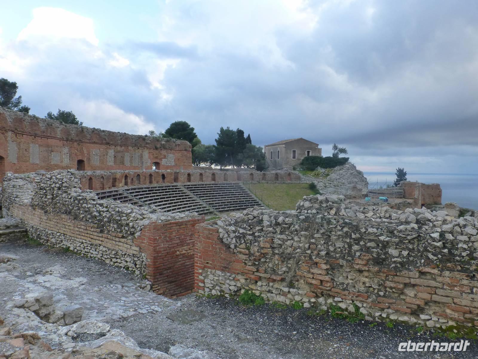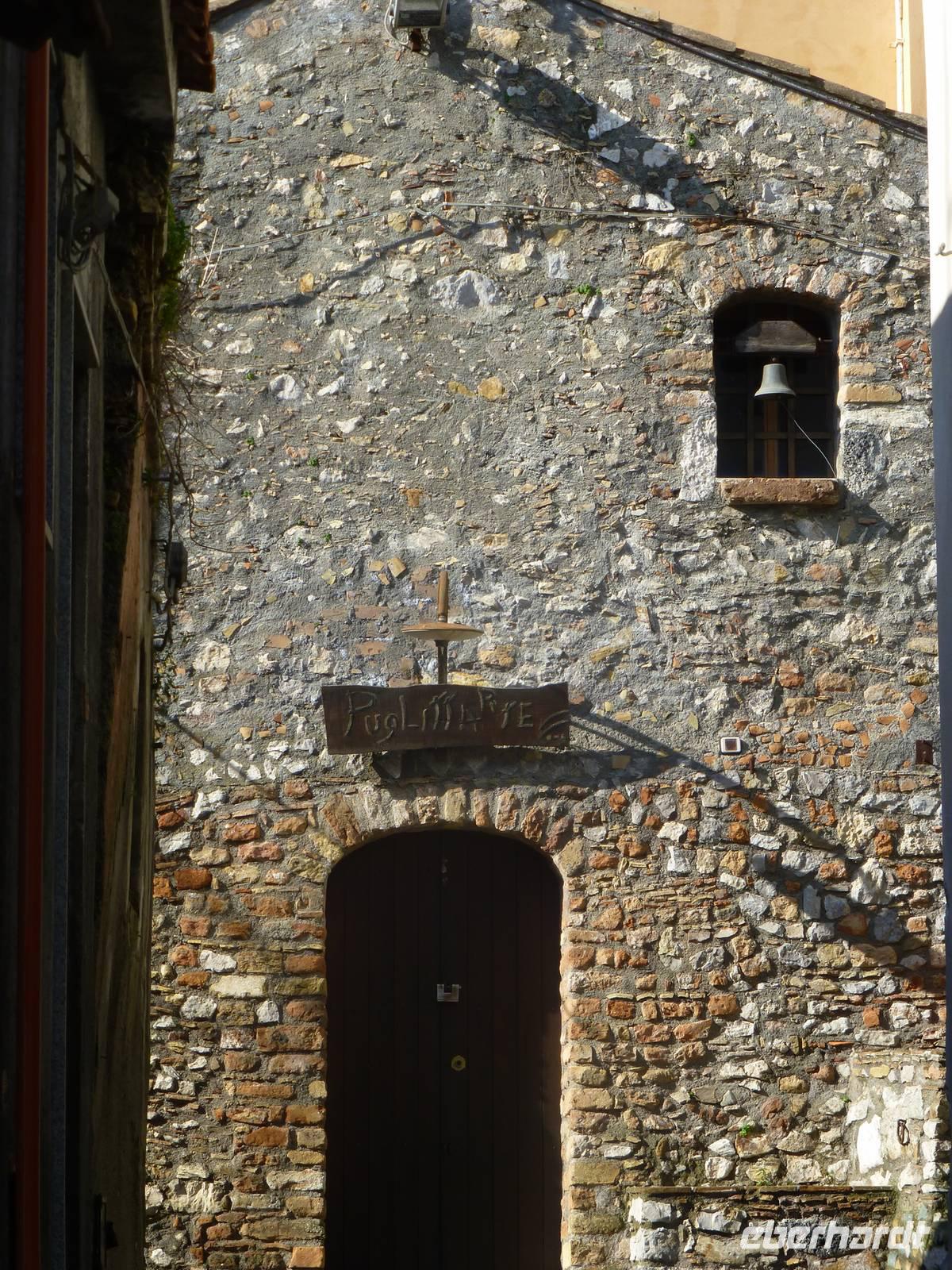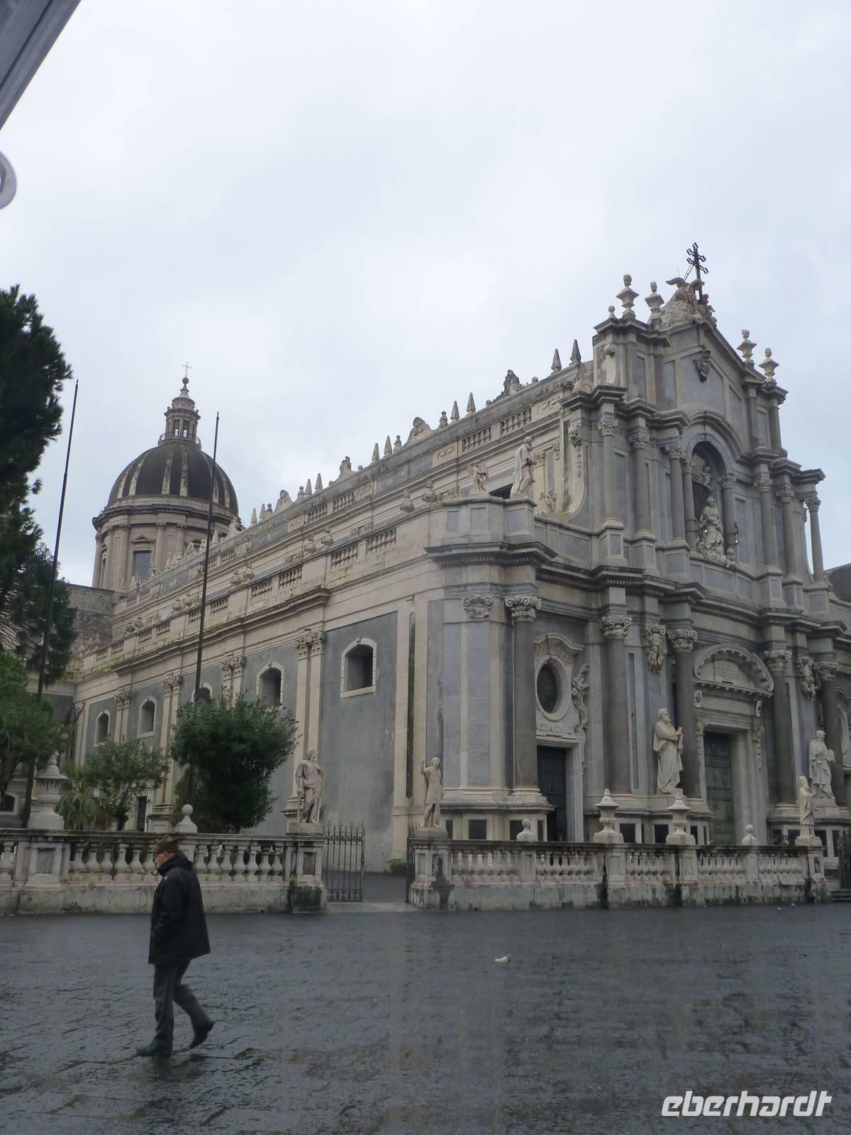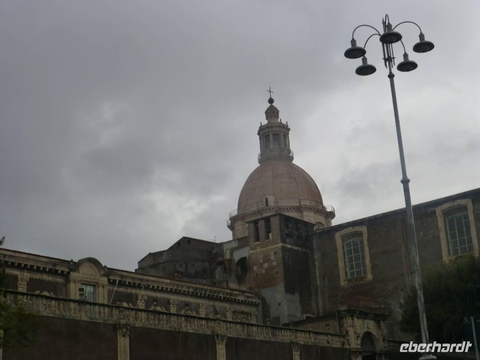 Die Sonne kam zum Vorschein und einige unternahmen einen Strandspaziergang und fuhren am Mittag mit dem Linienbus nach Taormina. In der schönen Altstadt lohnte ein Bummel durch die Gassen und natürlich der Besuch im griechischen Theater. Ich fuhr am Morgen mit dem Linienbus hinauf nach Castelmola. Dieser Ort liegt oberhalb von Taormina und ist von Touristen noch weniger bekannt und von daher noch nicht überlaufen. Also momentan noch ein echter Geheimtipp für Sizilien-Freunde. Bekannt ist der Ort auch für seinen Mandelwein. Ein schöner Blick auf die Bucht und ein kurzer Blick hinüber zum Ätna belohnte schon die Auffahrt. Eine fast absolute Stille bevor ein Reisebus mit einer Gruppe Italiener eintraf. Gemütlich ging es zu Fuß bergab nach Taormina bis zum Domplatz.