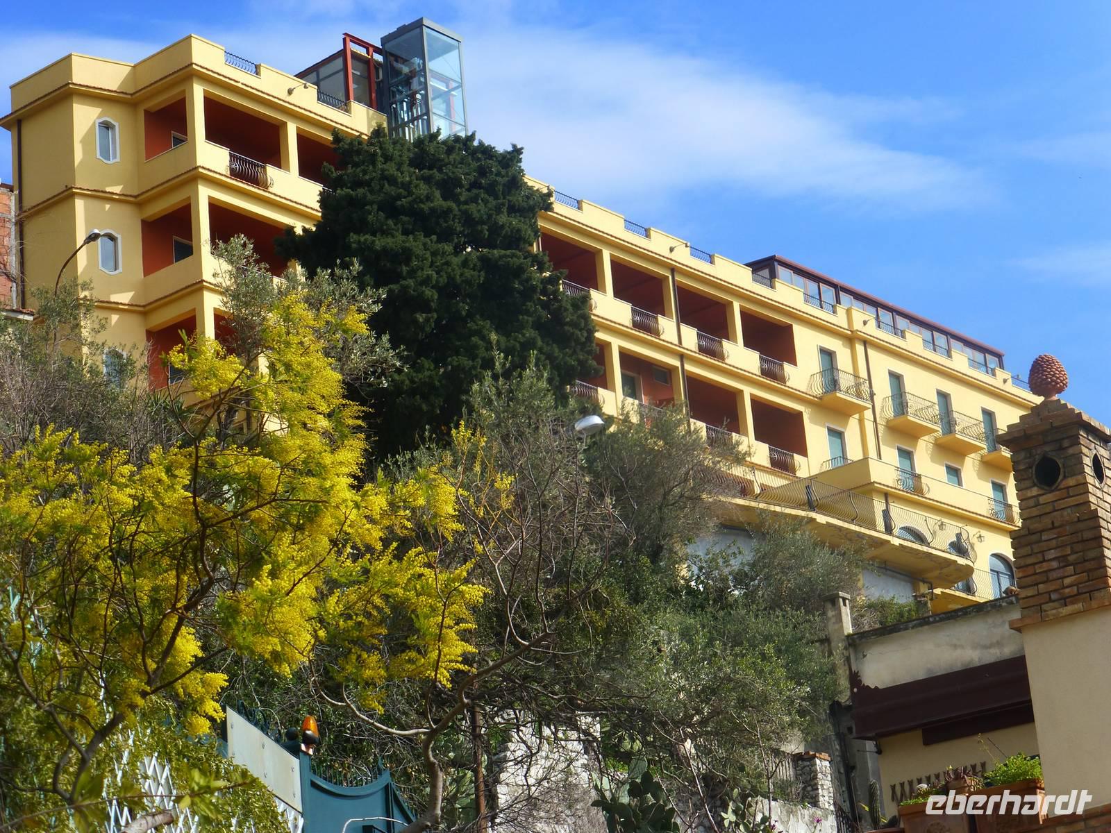 Am Flughafen von Berlin-Tegel trafen wir uns pünktlich ein und flogen mit Air Berlin direkt nach Catania. Ein örtlicher Reisebus brachte uns zum 4-Sterne-Hotel "Olympo" in Letojanni nahe Taormina.