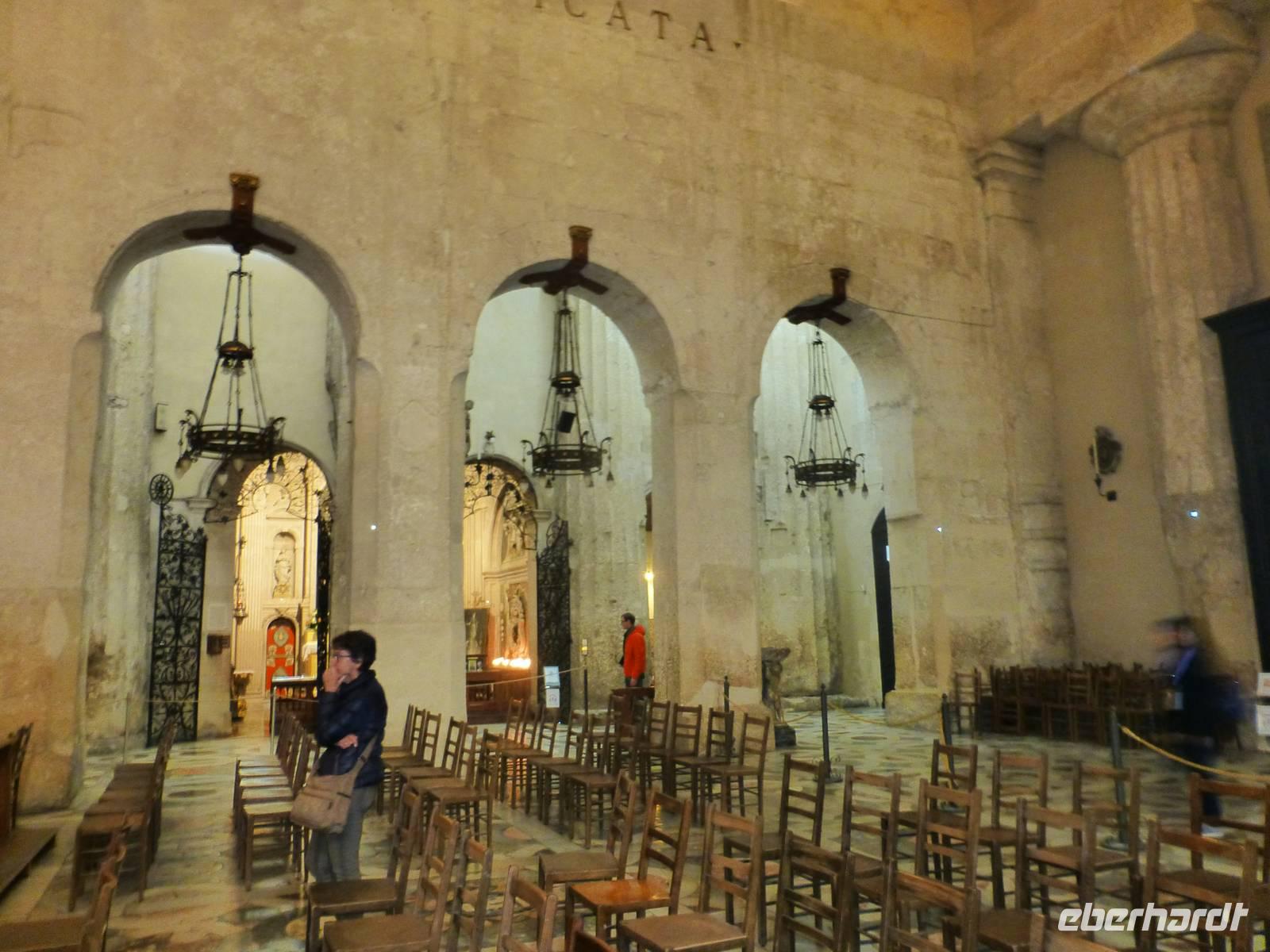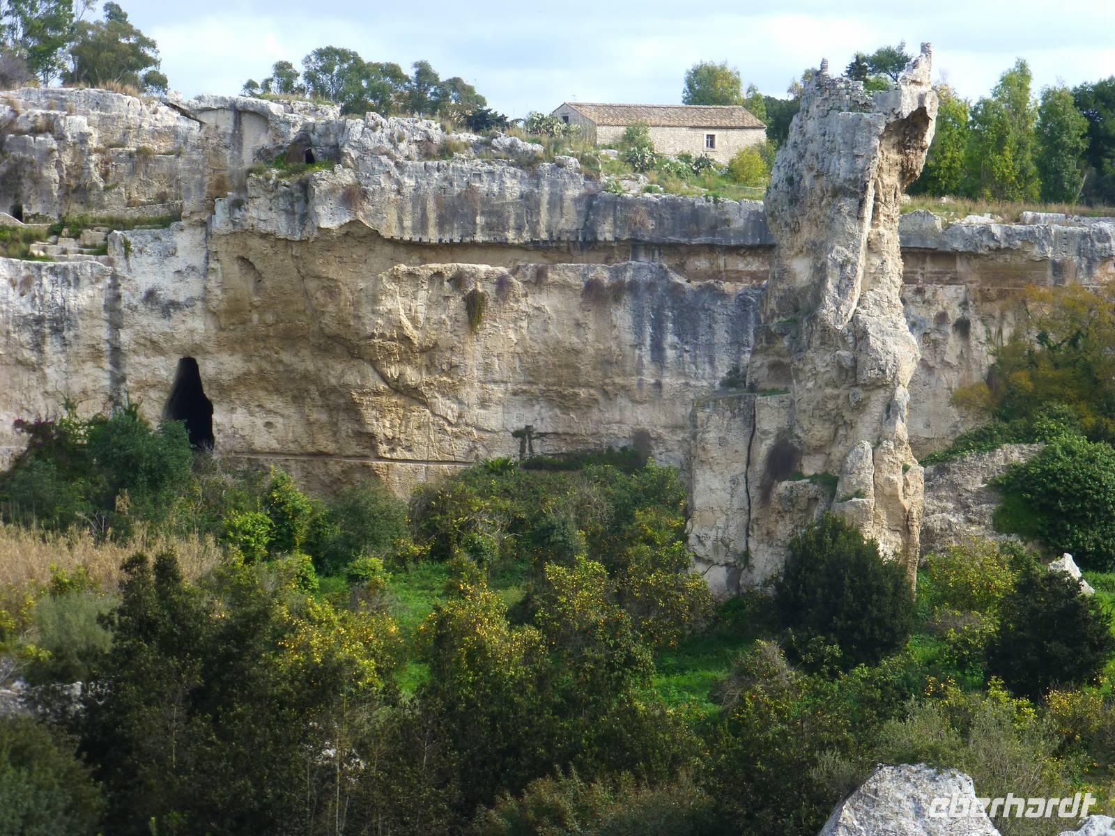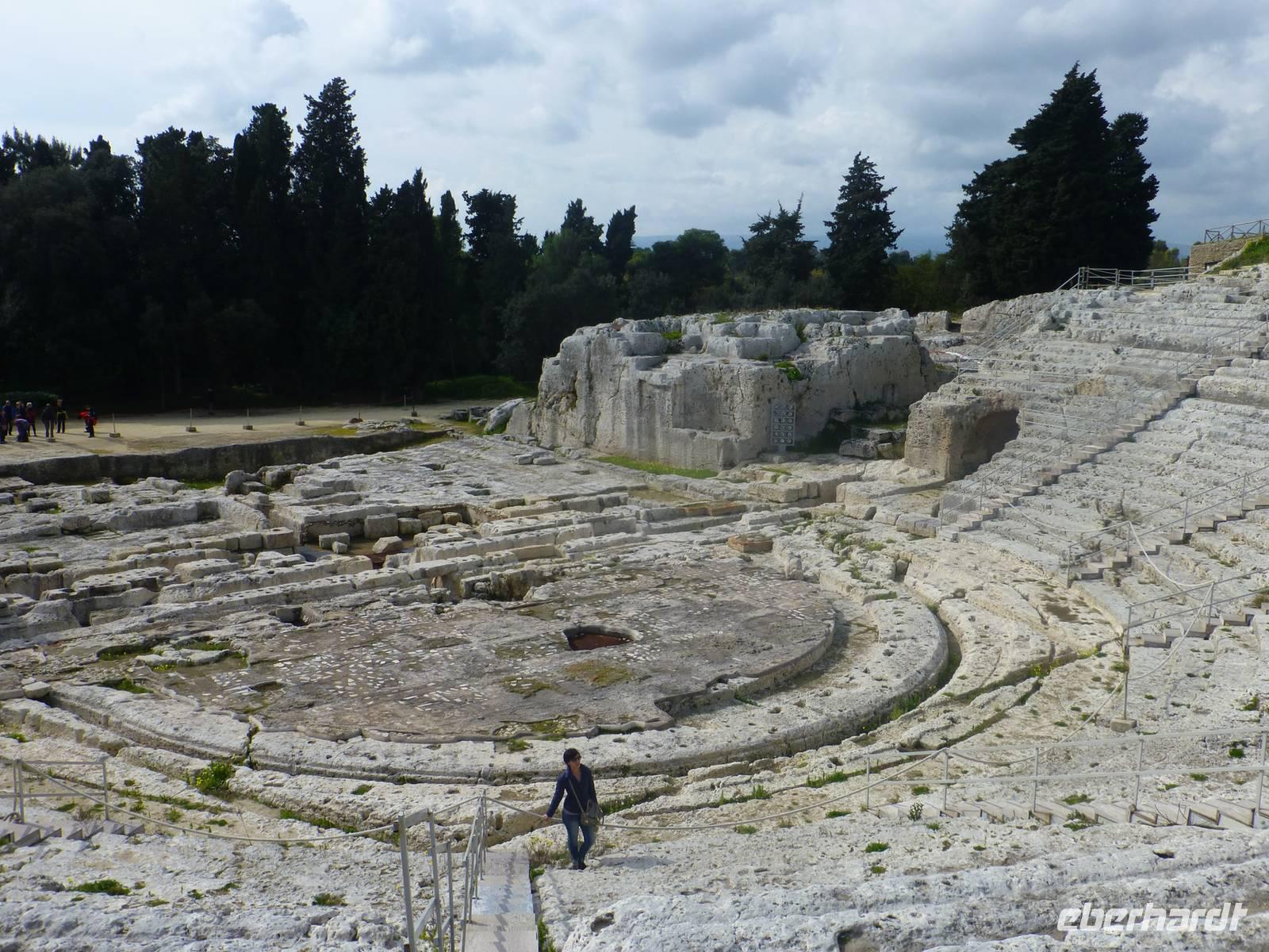Auch heute lugte die Sonne hervor und unser Ausflug an die Ostküste konnte beginnen. Unser Reiseleiter Hermann und unser Busfahrer Guiseppe holten uns direkt vom Hotel ab. Entlang der Küstenstraße Südlich von Taormina, ebenfalls an der Ostküste Siziliens liegt die Hafenstadt Syrakus. Unser Rundgang in Syrakus begann in dem archäologischen Park Neapolis. Beim Anblick des grandiosen Griechischen Theaters, dem prachtvollen Altar von Hieron II, dem römischen Amphitheater oder der Grotte „Ohr des Dionysios", fühlten wir uns um Jahrtausende zurückversetzt. Auf der Altstadtinsel Ortigia bewunderten wir die Überreste des Apollo-Tempels, den zu einer Kathedrale umgebauten Athena-Tempel und die mythische Arethusaquelle.