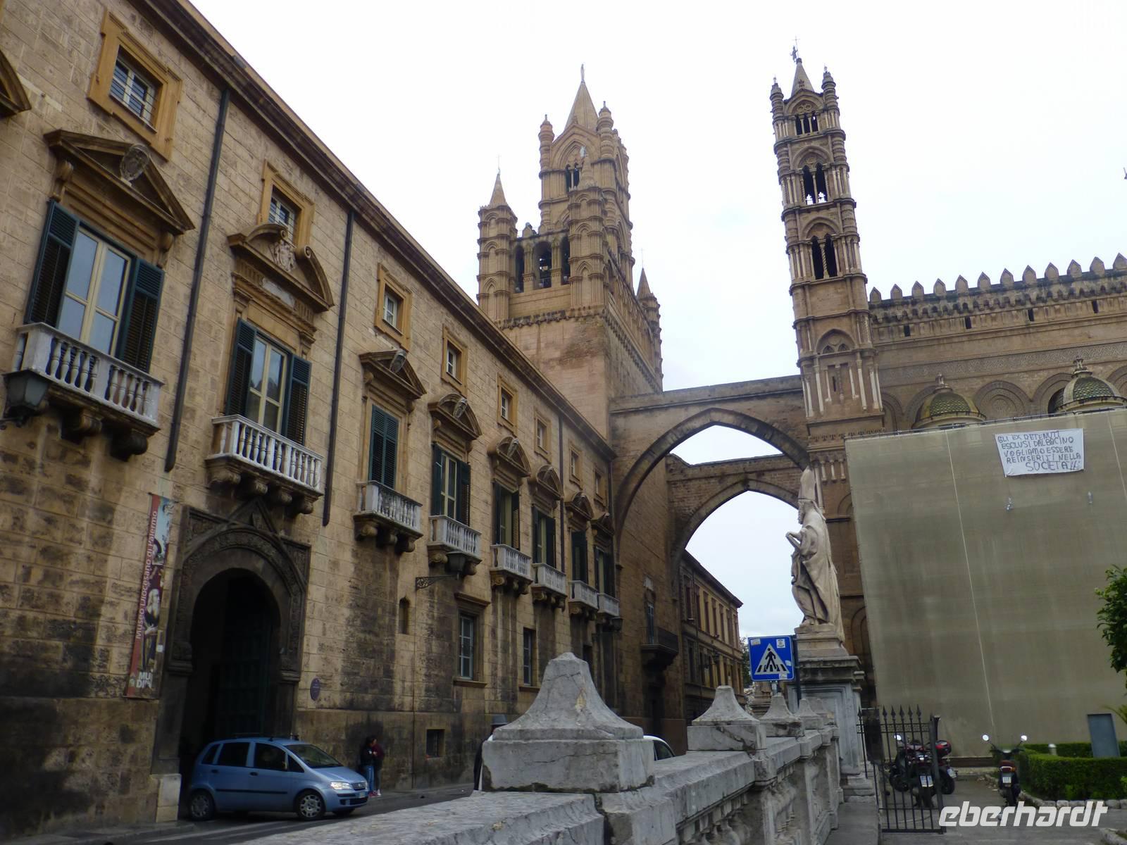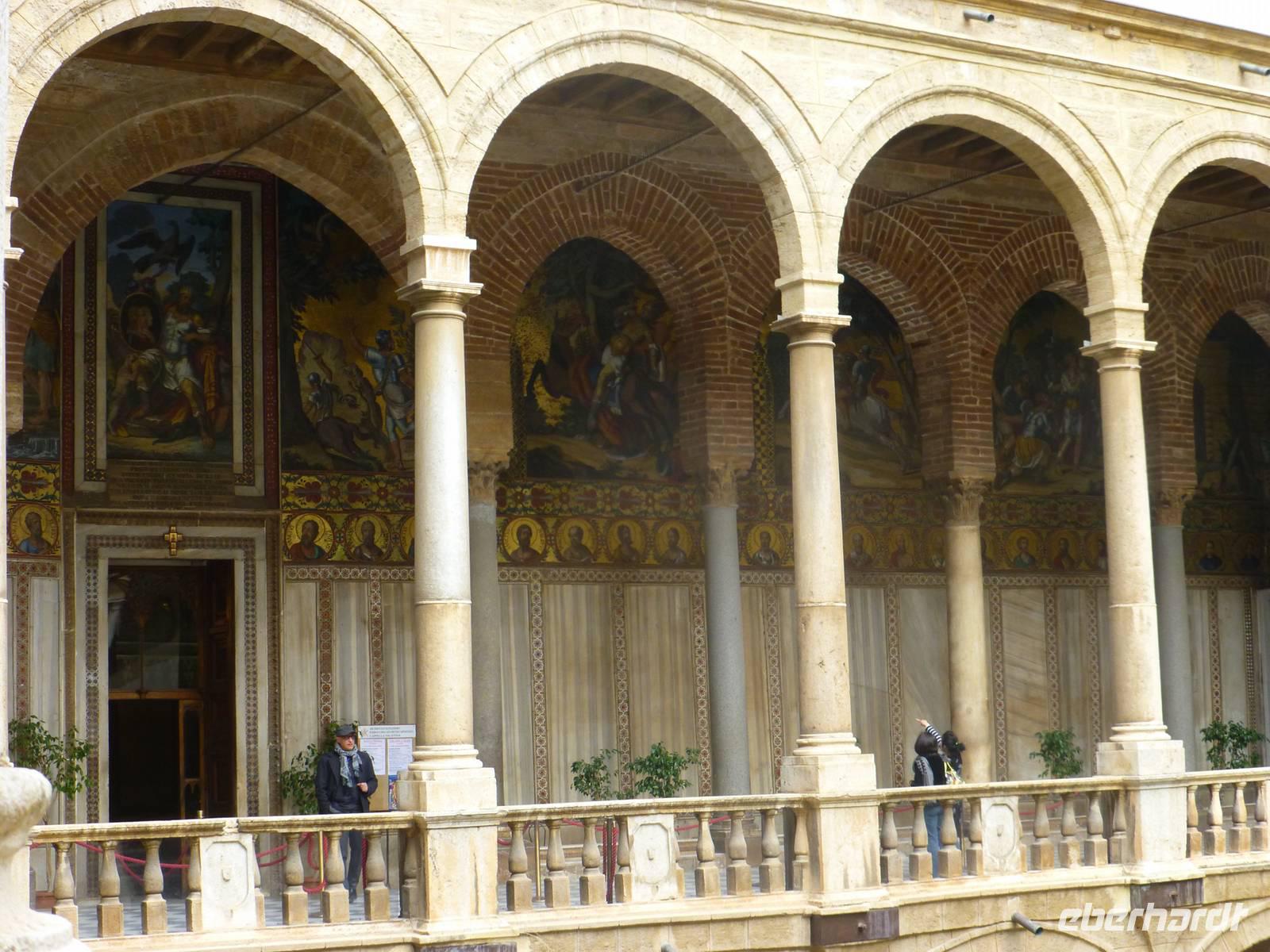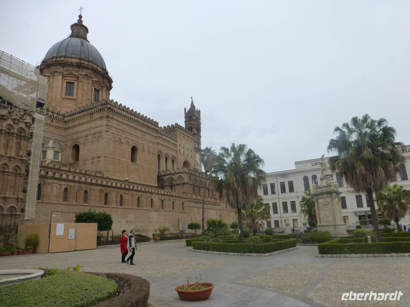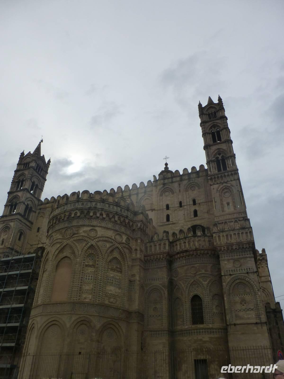 Das Wetter sah etwas nach Regen aus und wir beschlossen heute in die Hauptstadt Palermo zu fahren. Prunkvolle Paläste und eindrucksvolle Monumente erzählen noch heute von der Kultur der Araber, Normannen und Hohenstaufen. Besonders beeindruckt hat uns der Normannenpalast mit seiner Cappella Palatina als weltweit einzigartiges Gesamtkunstwerk. Auf dem Rückweg nach Taormina fuhren wir entlang der Nordküste zum Städtchen Cefalù. Vor der Kulisse des mächtigen Felsenhauptes erhebt sich der imposante Normannendom mit kostbaren Goldmosaiken byzantinischer Meister. Wir spazierten durch die malerische Altstadt mit ihren typisch arabisch anmutenden Gässchen bis hinunter zum Strand. Am Abend kehrten wir nach Taormina zurück.