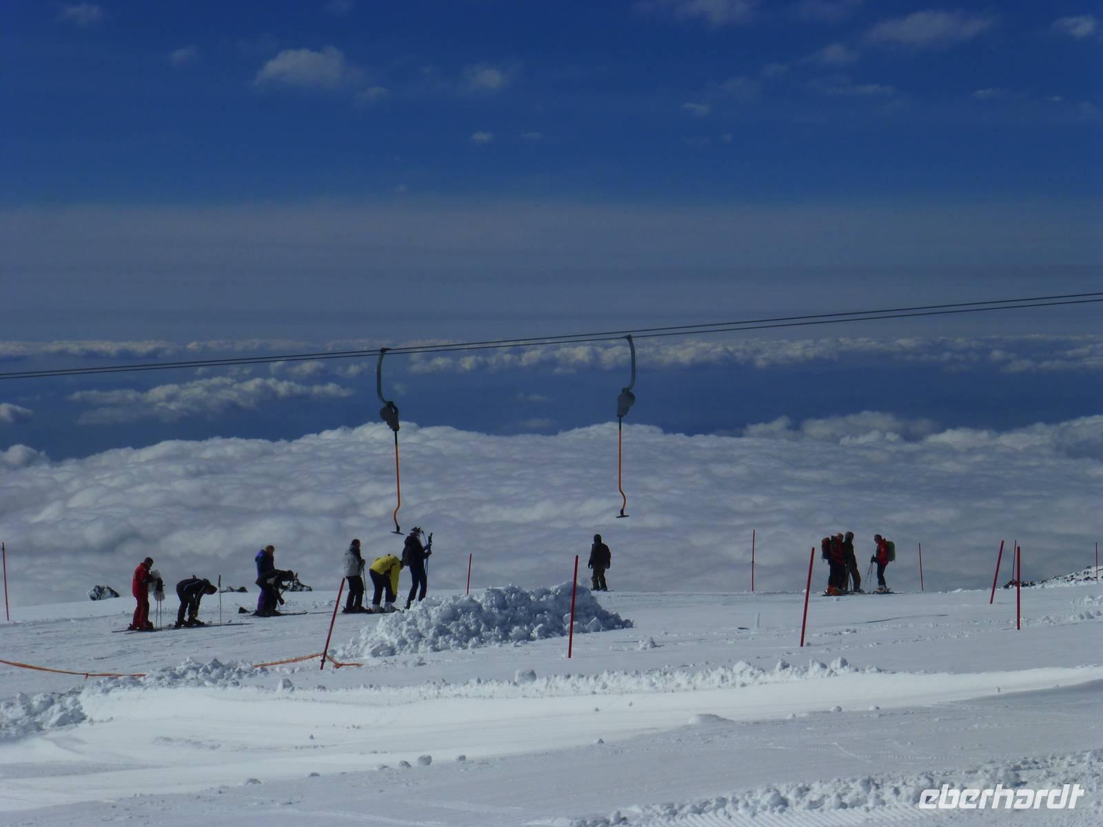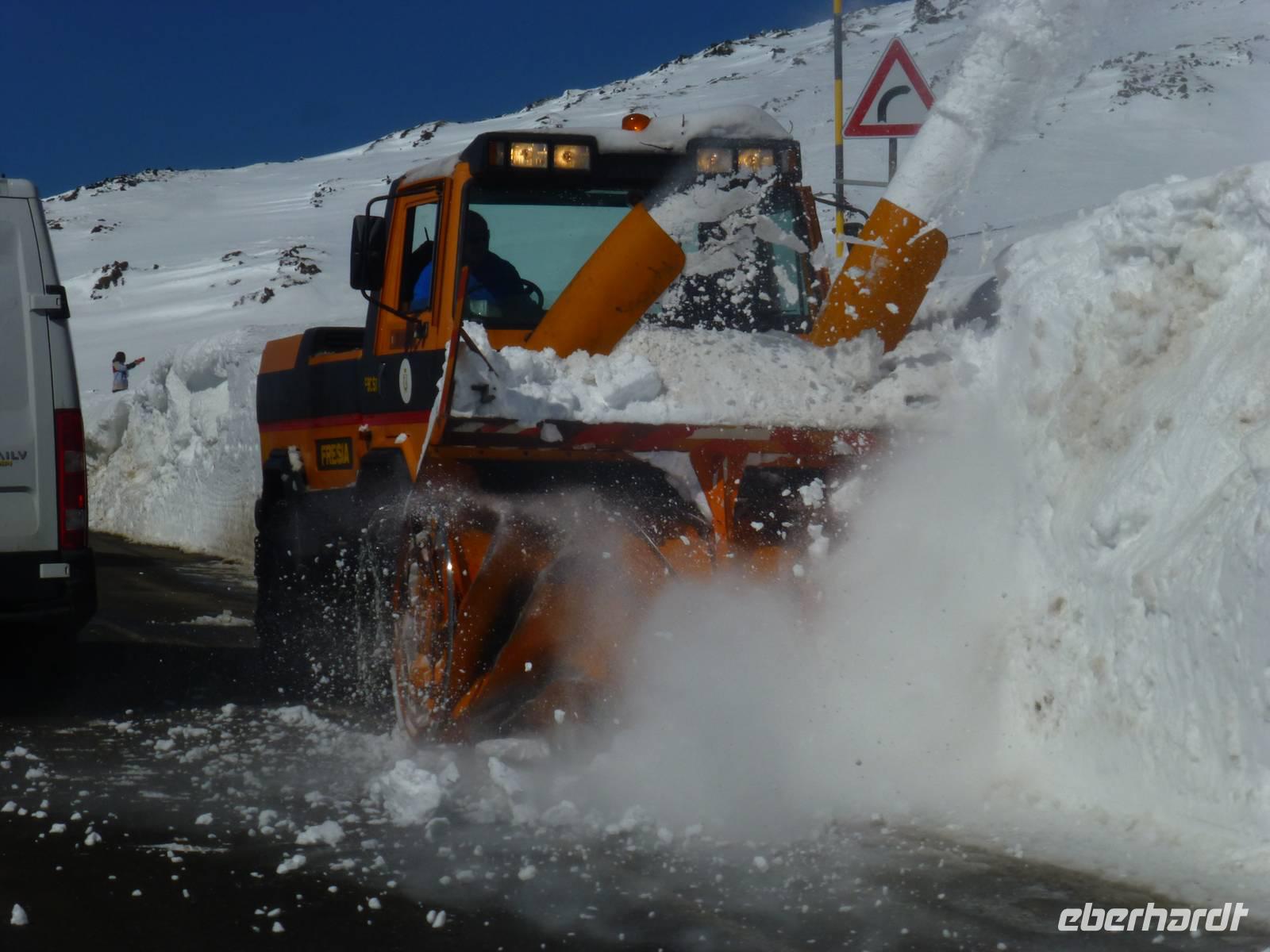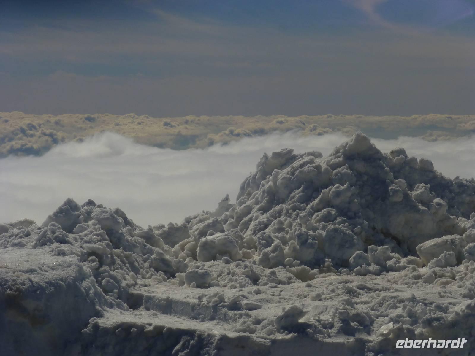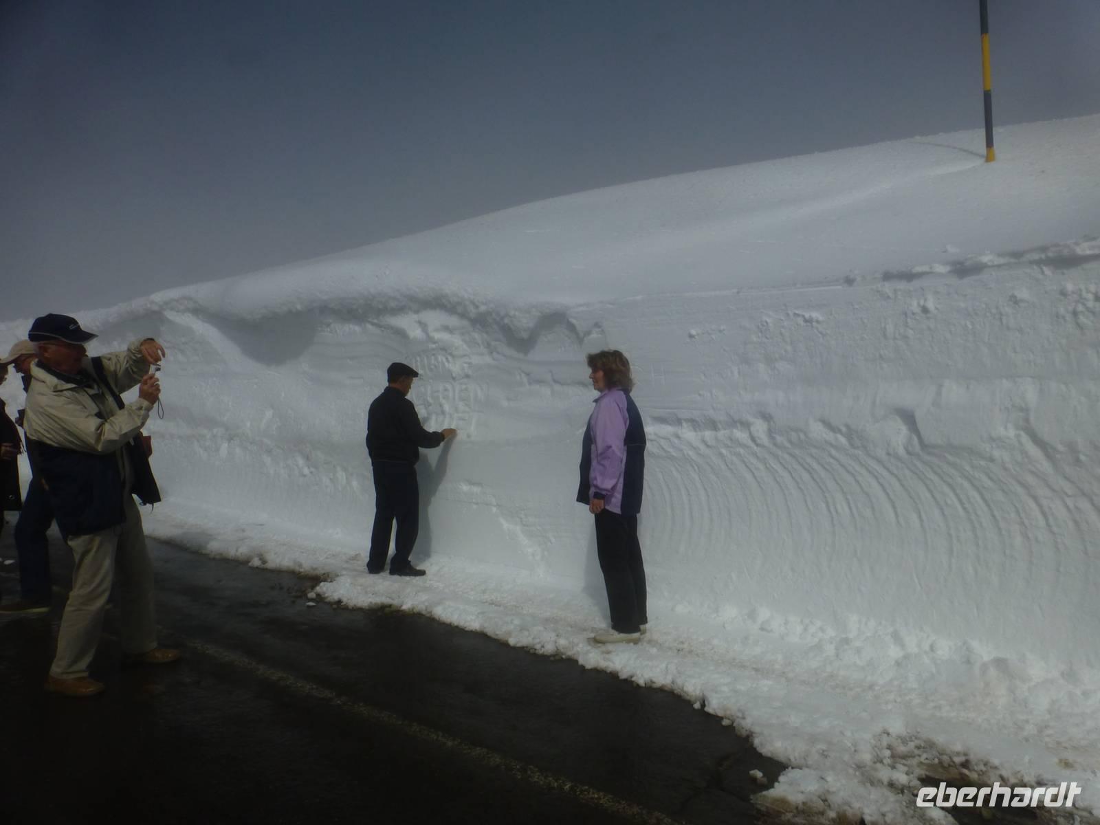Es hatte sich gelohnt, den Ätna am letzten Urlaubstag zu besuchen. Der Ätna, einer der noch aktiven und auch der größte Vulkan Europas, zeigte sich bei blauem Himmel und Sonnenschein in seiner vollen Pracht. Der Schnee der letzten Tage erschwerte unsere Anreise. Trotz Informationen der örtlichen Polizei standen wir an der Auffahrt Süd vor einer Absperrung. Guter Rat war teuer. Um etwas Zeit zu gewinnen, besuchten wir einen Imker. Neben den verschiedenen Honigsorten probierten wir auch verschiedene Öle und Pasten. Anschließend fuhren wir zu einem Lavafeld. Seine enormen Eruptionen und wechselhaften Ausbrüche haben ihn zu einem der bekanntesten Vulkane unserer Zeit werden lassen. Nach einem Anruf von Hermann bei den örtlichen Behörden, endlich die Mitteilung die Straße zum Ätna wäre geräumt. Mit dem Bus fuhren wir vorbei an meterhohen Schneefeldern bis zum Silvestri-Kratern auf ca. 1.900 Meter Höhe. Die Seilbahn brachte uns weiter auf 2500 Meter Höhe. Wir waren über den Wolken, der Himmel war immer noch Blau und die Sonne wärmte uns mit ihren Strahlen. Ein tolles Erlebnis an unserem letzten Tag in Sizilien und ein Grund mit einem kräftigen Schluck "Etna Feuer" anzustoßen.