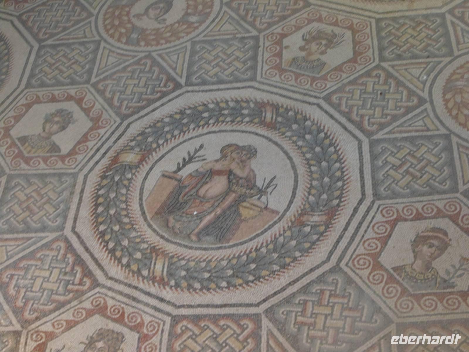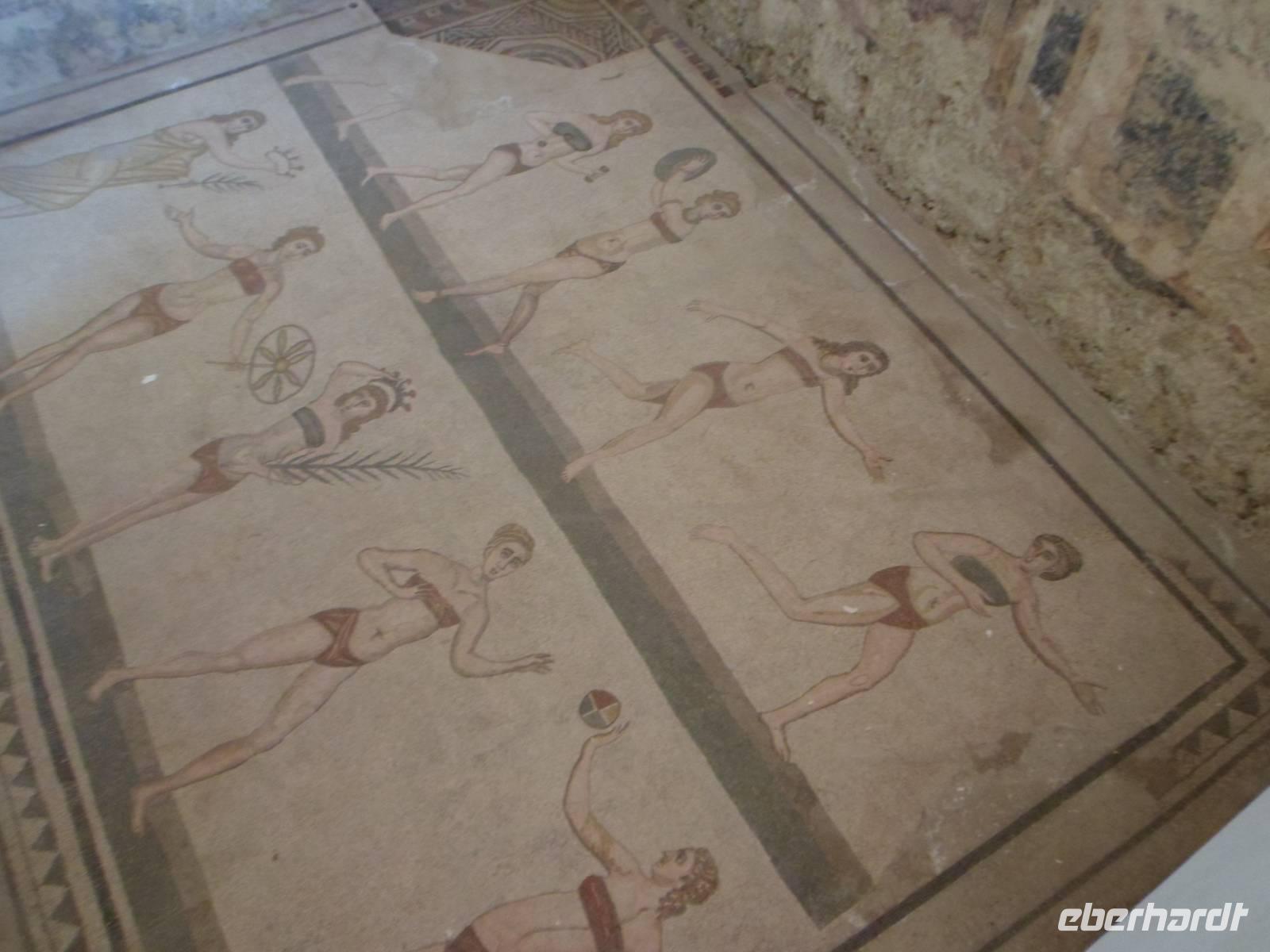 Etwa 13.30 Uhr fuhren wir nun ins Landesinnere. Ankunft an der " Villa Romana" 15.30 Uhr . Die Renovierungsarbeiten sind fast abgeschlosse und wir können die Mosaikfußböden aller Räume besichtigen. Alle Gäste waren, dank der guten Führung von Alberto, ca 1,5 Stunden überaus begeistert. WELTKULTURERBE!