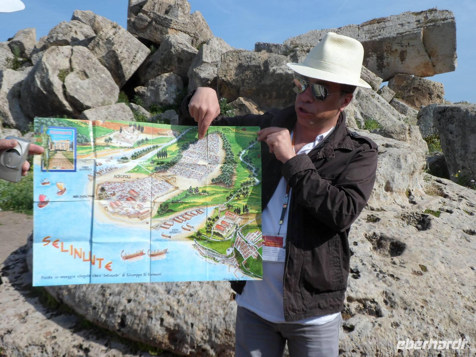 Abfahrt vom Hotel, 08.30 Uhr, mit Gepäck, nach Selinunte. Ankunft: 09.30 Uhr, Spaziergang durch das imposante Gebiet, schon aus kilometerweiter Entfernung sieht man die mächtigen Tempel und durch die ausgegrabenen Straßen, die wir entlang gingen, kann man sich vorstellen wie zu dieser Zeit gelebt wurde.