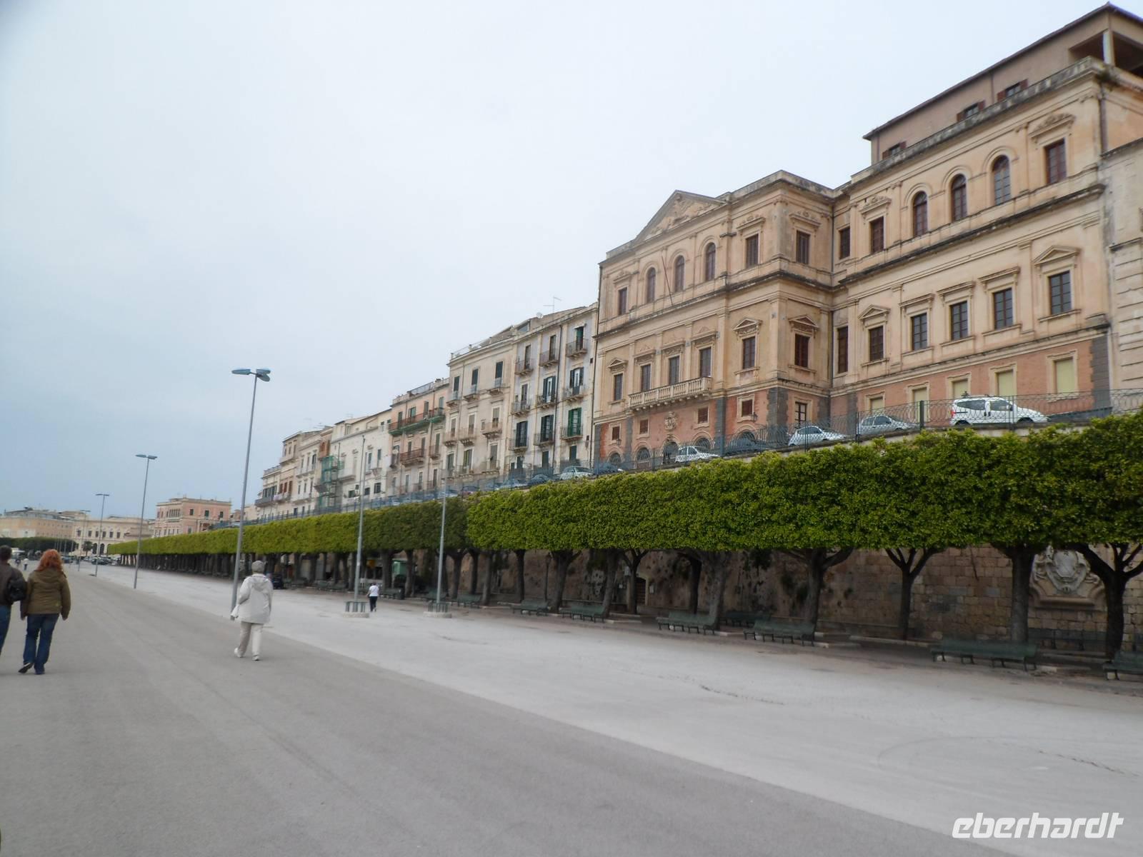 Am zeitigen Morgen werden wir abgeholt und treffen unsere Reiseleiterin Laura an der Autobahnstation Giare und fahren nach Syrakus. Es regnete in Strömen und so mancher dachte schon es hört bestimmt nicht auf, schade. Aber weit gefehlt ,etwa 30 km vor Noto klarte der Himmel auf und wir spazierten ohne "Hut und Melone" in die reizende Barockstadt. Laura erklärte uns , das durch ein großes Erdbeben im 16. Jhd. die Stadt später neu aufgebaut wurde aber an einem anderen Standort.
