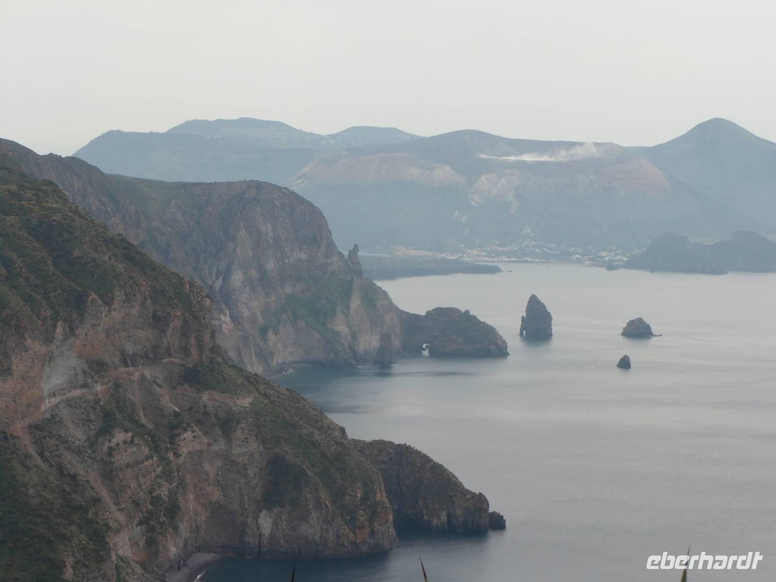 Sie erklärte uns die Umgebungen wärend der Fahrt und die weitere Verfahrensweise zur Einschiffung bzw. Überfahrt von Milazzo nach Lipari und Vulkano. Um 09.00 Uhr Abfahrt , alles ruhig im Hafenbecken, die Fahrt konnten alle genießen. Nach 1,5 Stunden kommen wir wohlbehalten im kleinen Hafen von Liparie an. Ankunft 10.30 Uhr, danach im Kleinbuss weiter zur Inselrundfahrt mit drei Fotostopps und der Möglichkeit einheimische Produkte wie Kapern, Gewürze und Pesto zu kosten und zu kaufen.