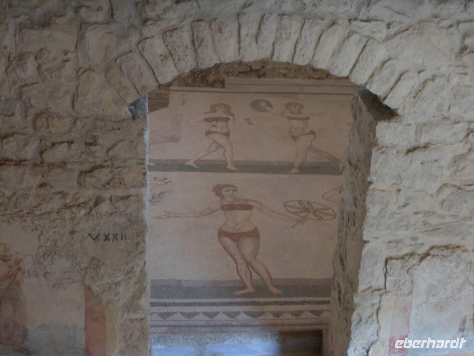 Ankunft an der " Villa Romana" 15.30 Uhr . Die Renovierungsarbeiten sind fast abgeschlossen und wir können die Mosaikfußböden aller Räume besichtigen. Alle Gäste waren, dank der guten Führung von Alberto, ca 1,5 Stunden überaus begeistert. WELTKULTURERBE! Weiterfahrt zum Hotel"Baia di Ulisse" nach San Leone , Ankunft 19.00 Uhr, Abendessen 20.45 Uhr, ein wunderschönes Hotel, es ist sehr geschmackvoll eingerichtet und besitzt eine edle Ausstattung.