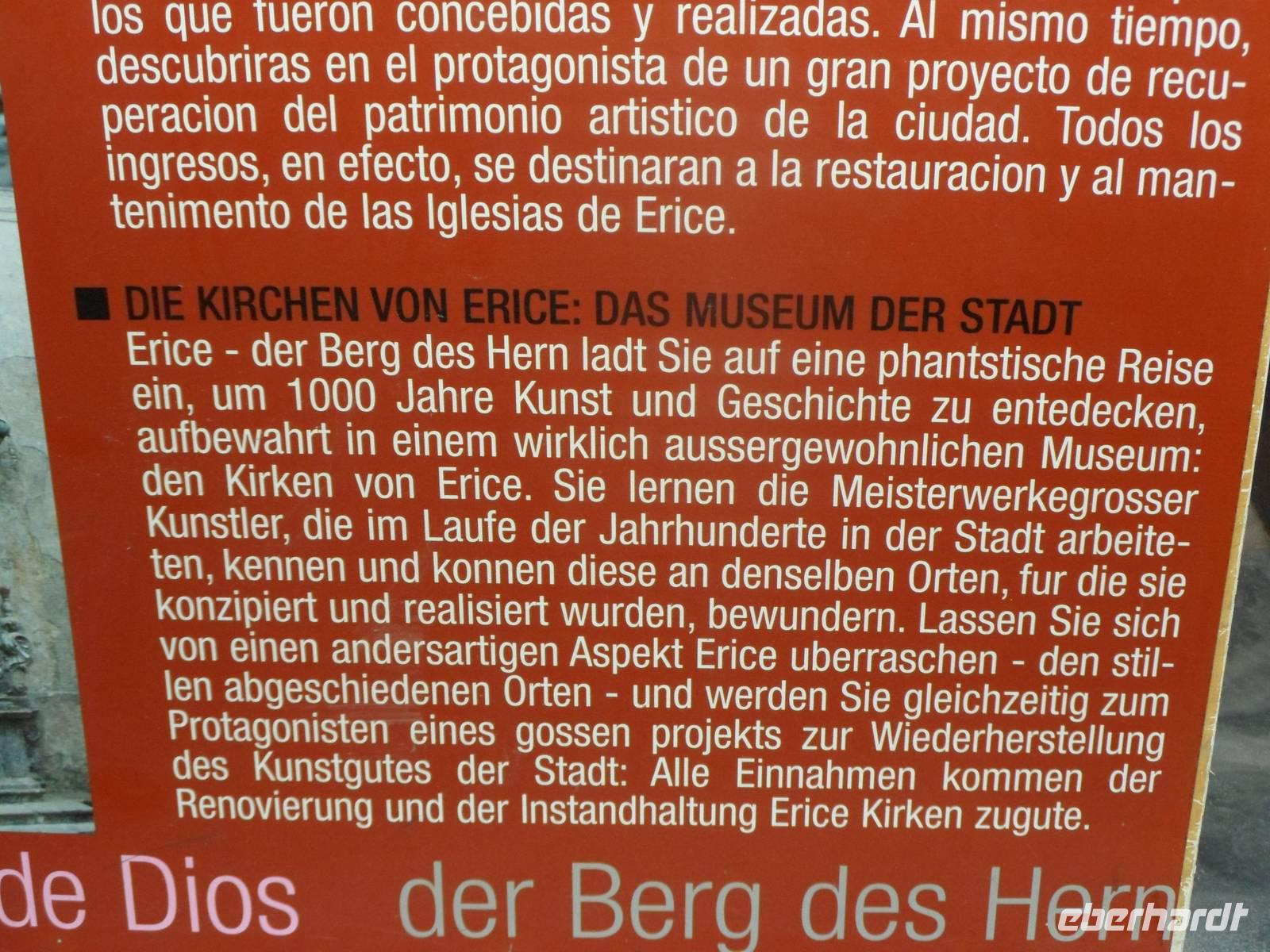 Weiterfahrt nach "Erice", Besichtigung der Hauptkirche," Chiesa Matrice aus dem 14.Jhd. Wunderschöne filigrane Fensterrosen sind zu besichtigen. Alberto weiß wie immer viel zu erzählen. Spaziergang durch die wunderschöne kleine, saubere Stadt auf dem Berg, Besuch einer kleinen Konditorei mit speziellen Gebäck, einige Gäste kauften Marzipan ect. Alle waren wieder begeistert über die Vielfältigkeit der Umgebung Weiterfahrt zum Hotel " Fiesta Atheene Palace" in Campofelice.