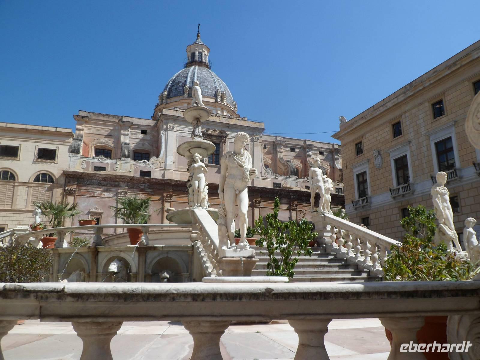 Weiterfahrt nach Palermo 11.00 Uhr, dort gehen wir zum Eingang in die Altstadt und besichtigen den Normannenpalst mit der Capella Palatina .Ein Kleinod . Weiter geht es zur Kathedrale von Palermo. Für uns besonders interessant ist das Grab von Friedrich den II.( Enkel von Kaiser Barbarossa )und die Deckenmalereien. Anschliessend folgte ein Spaziergang durch die Alstadt, vorbei am Schambrunnen, am Rathaus, durch die quatro Kanti Richtung Garibaldi Park fast am Hafen.