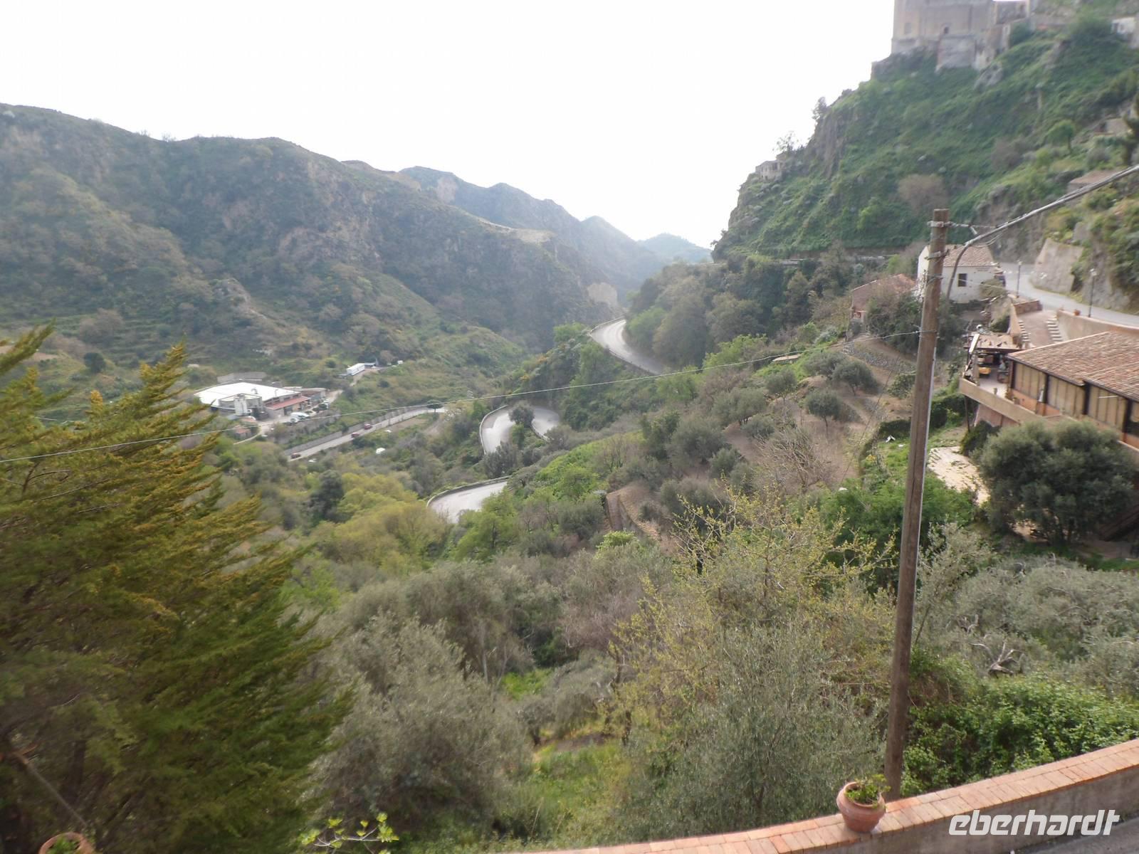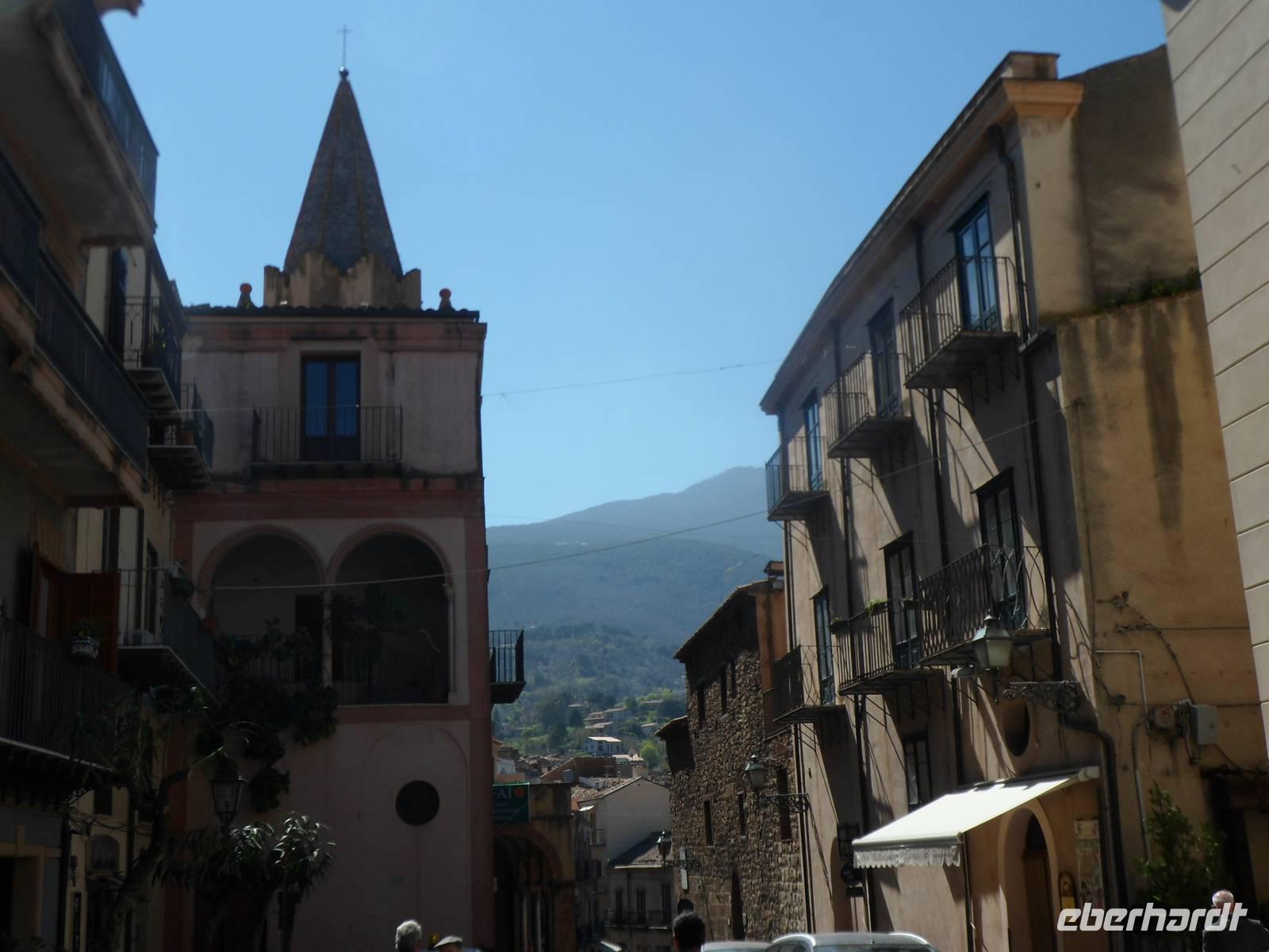 Etwa 30 km von Giardini Naxos entfernt liegt in den Bergen der kleine Ort Savoca. Und diese gepflegte Dörfchen mit 1600 Seelen + 38 Mumien aus den 17. 18. Jahrhundert hat etwas zu bieten. Hier wurde der Film "Der Pate"gedreht, hier gibt es eine Kapuzinergruft in der man die Mumien betrachten kann, eine wunderschöne Dorfkirche , grandiose Ausblicke und Spazierwege um die Ortschaft. Natürlich auch eine Bar mit Terrasse vor einem Abgrund. Da schmeckt das Eis oder der Espresso nocheinmal so gut.