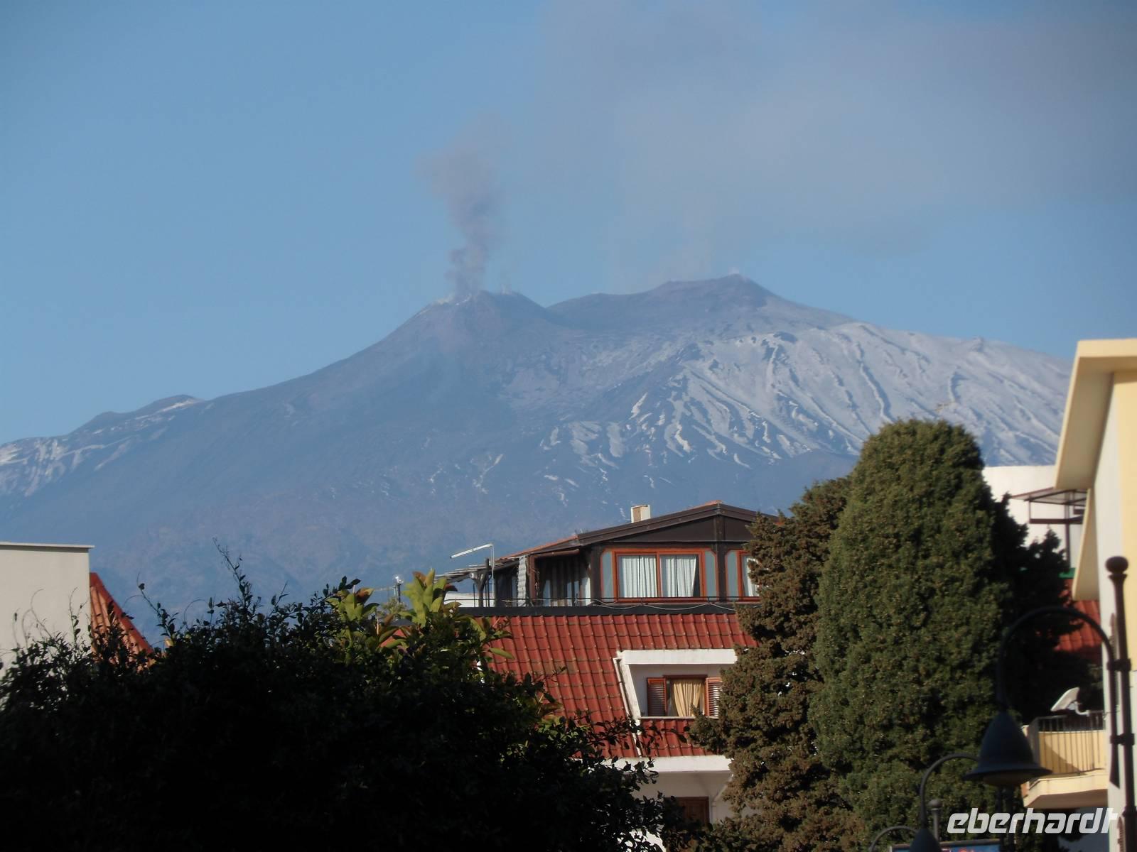 Am zeitigen Morgen werden wir abgeholt und treffen unseren Reiseleiter Herrmann . der Ätna raucht und spuckt, man kann glühende Lava erkenn die langsam in das Tal fließt. Keine Gafahr, aber was für ein Schauspiel, besonders Nachts.