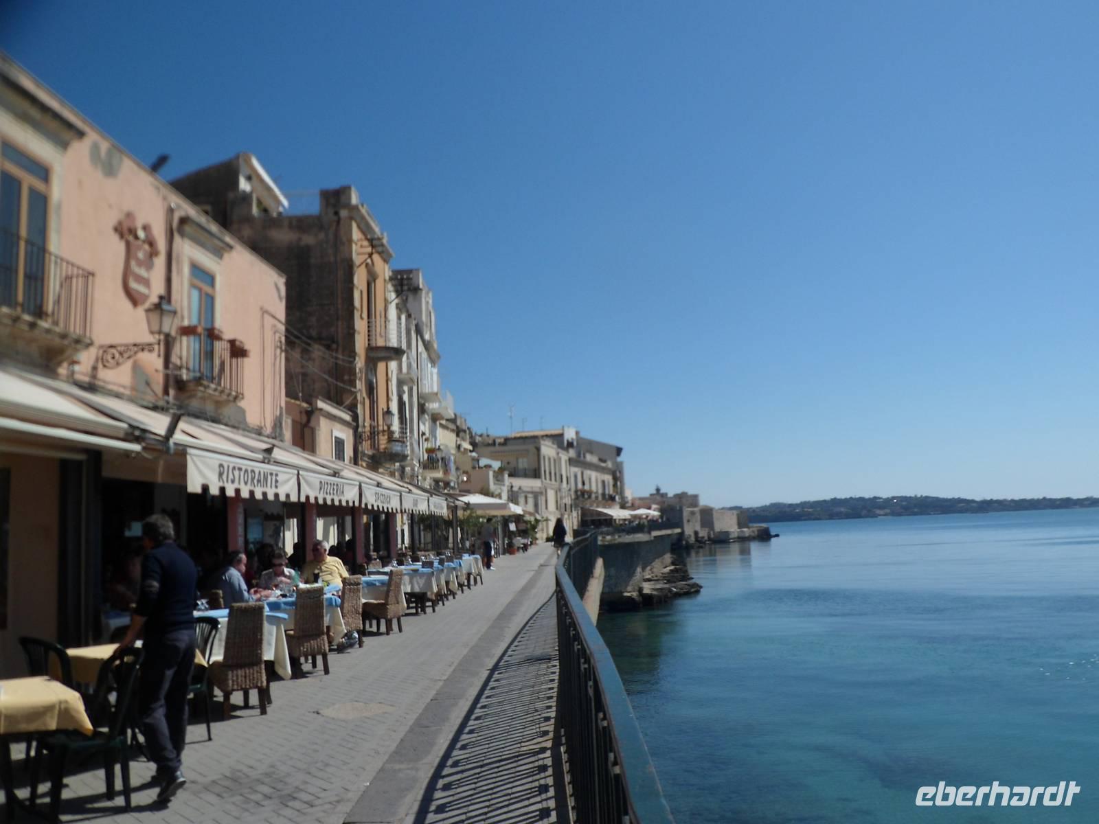 Rundgang mit Herrmann der uns sehr interessanter Einblick in die Geschichte gibt, wir haben spektakuläre Ausblicke vom griechichen Theater, Spaziergang durch eine wunderschöne Vegetation, in den ehemaligen Steinbruch " Das Ohr des Tyrannen". mit einem sagenhaften Echo. Nachdem wir noch die römische Arena angeschaut hatten ging es zur Insel der Stadt Syrakus, Ortigia.
