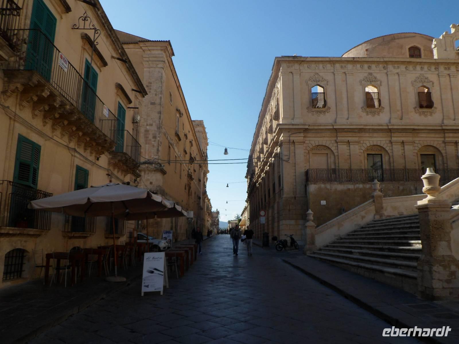Die bezaubernden Gebäude und ganz besonders die Kathedrale mit Ihrer riesigen Treppe davor ,sind beeindruckend und man kann enspannt durch die Straßen und Gassen bummeln. Ganz besonders schön wurden die barocken Gebäude von der Abendsonne angestrahlt und alles leuchtete rötlich.