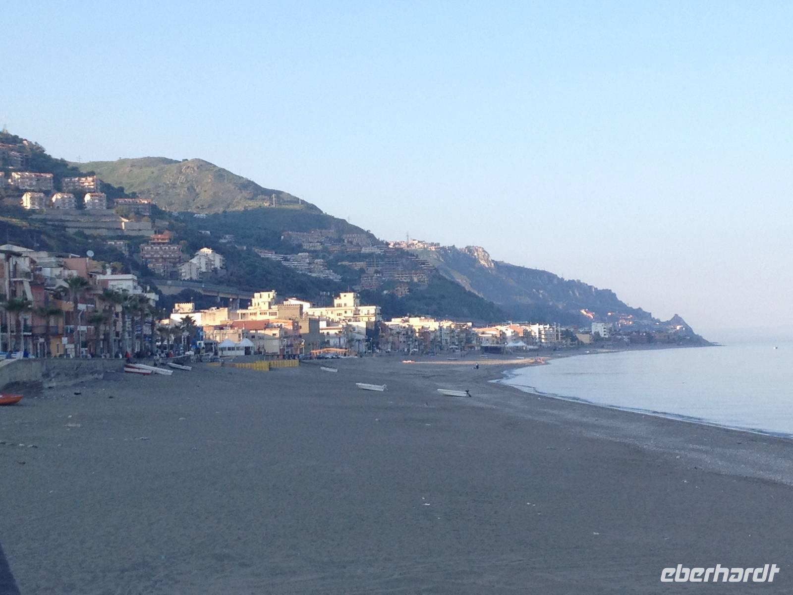 Am frühen Nachmittag sind wir auf Sizilien angekommen und wurden direkt am Flughafen von unserem Reiseleiter Gabriele und strahlendem Sonnenschein in Empfang genommen. Anschließend fuhren wir für eine kleine Mittagspause nach Catania. Dort machten wir erste Bekanntschaft mit den typischen Speisen auf Sizilien. Nachdem wir uns alle gestärkt hatten, fuhren wir in unser Hotel nach Letojanni. Dort angekommen starteten wir erste Erkundungen in der Umgebung. Den ersten Abend der Reise ließen wir bei einem schmackhaften Abendessen ausklingen.