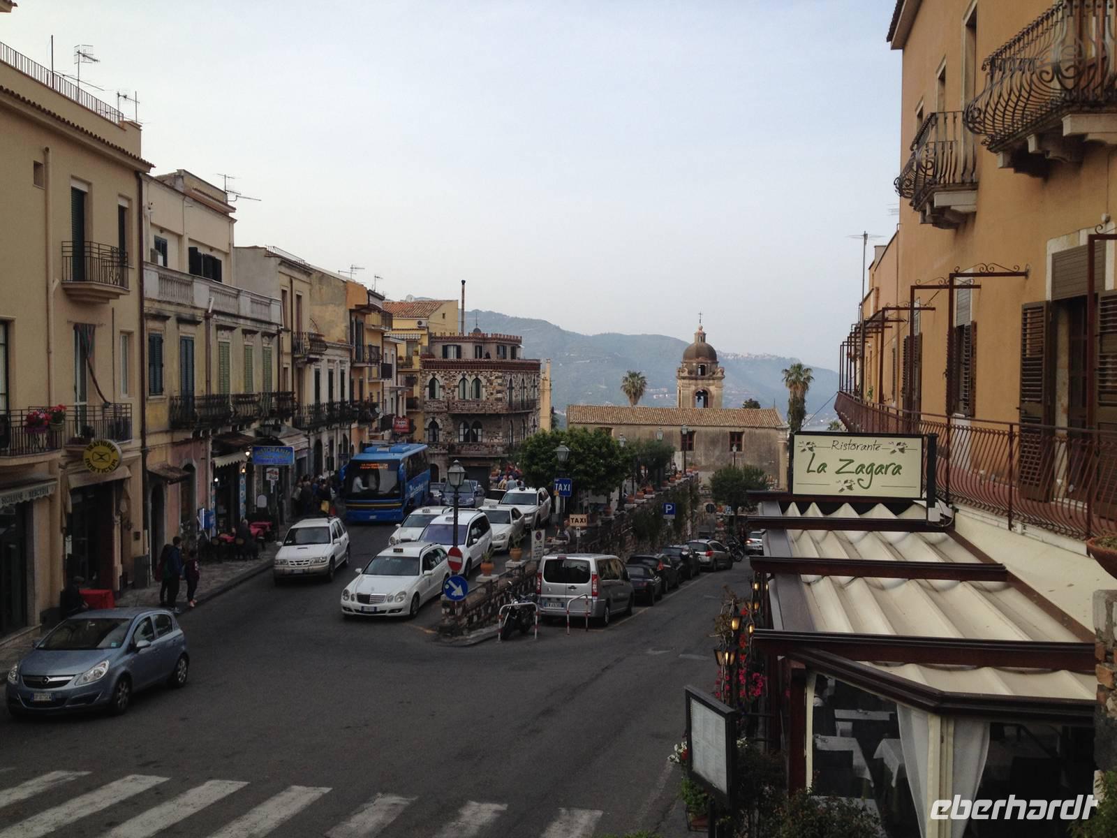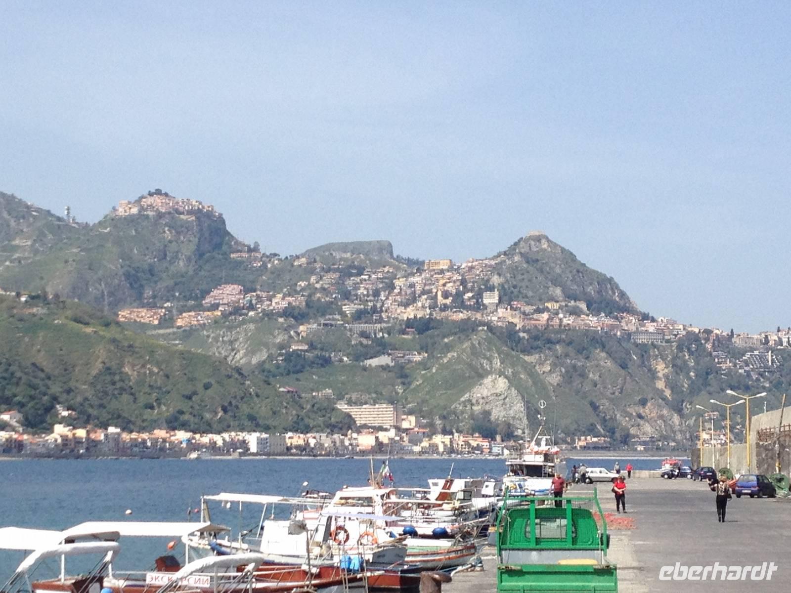 Gegen 10.00 Uhr fuhren wir zurück an die Ostküste nach Taormina. Der Tag stand zu unserer freien Verfügung, die meisten entschlossen sich aber, die Stadt ein wenig näher in Augenschein zu nehmen und schlenderten durch die Straßen, von wo aus man einen herrlichen Blick auf den Ätna und die Umgebung hatte.