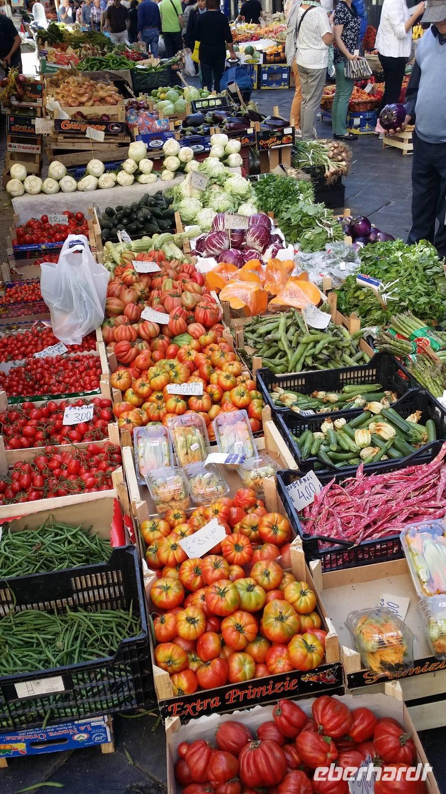 Catania ist vom Ätna so oft zerstört worden, dass wir eine nach italienischen Maßstäben junge Stadt vorfinden. Nach deutschen Maßstäben wäre sie von achtbarem Alter, immerhin barock oder unbestimmt historistisch. Eingeprägt in die optische Erinnerung bleibt die Fassade des Domes nebst dem Elefantenbrunnen, während sich der olfaktorische Sinn in den engen Nebenzeilen des Marktes zwischen Fisch, Meeresfrüchten und Gemüse wiederfindet.