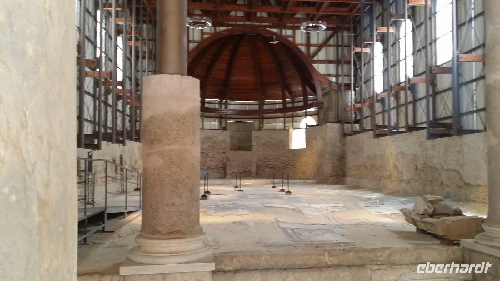 Die Rundreise durch Sizilien verfügt über eine gewisse Epochenreihenfolge: Sie besichtigt von Station zu Station grob chronologisch die Jahrhunderte und ihre Völker. Daher kommen wir von den Koloniestädten Großgriechenlands zu den Römern, indem jene, den Kampf gegen Karthago entscheidend, Sizilien zu ihrer ersten außeritalischen Provinz machten. Sodann spannen wir ein langes Band über lange Jahrhunderte, bis wir die Villa Romana del Casale nahe Piazza Armerina erreichen: Nach unseren Begriffen muss das vielräumige Landhaus mit seinen nachfühlbaren Thermalanlagen und Bodenmosaiken in der Spätantike erbaut worden sein. Wir sind in der römischen Kaiserzeit. Die Konservierung des Zeitalters rühmen wir einem Bergrutsch nach, der Verschüttung und dem weit späteren Wiederauffund.