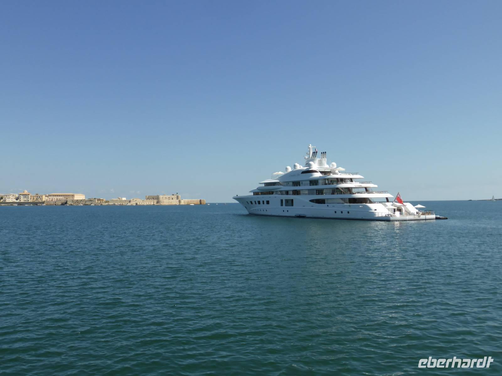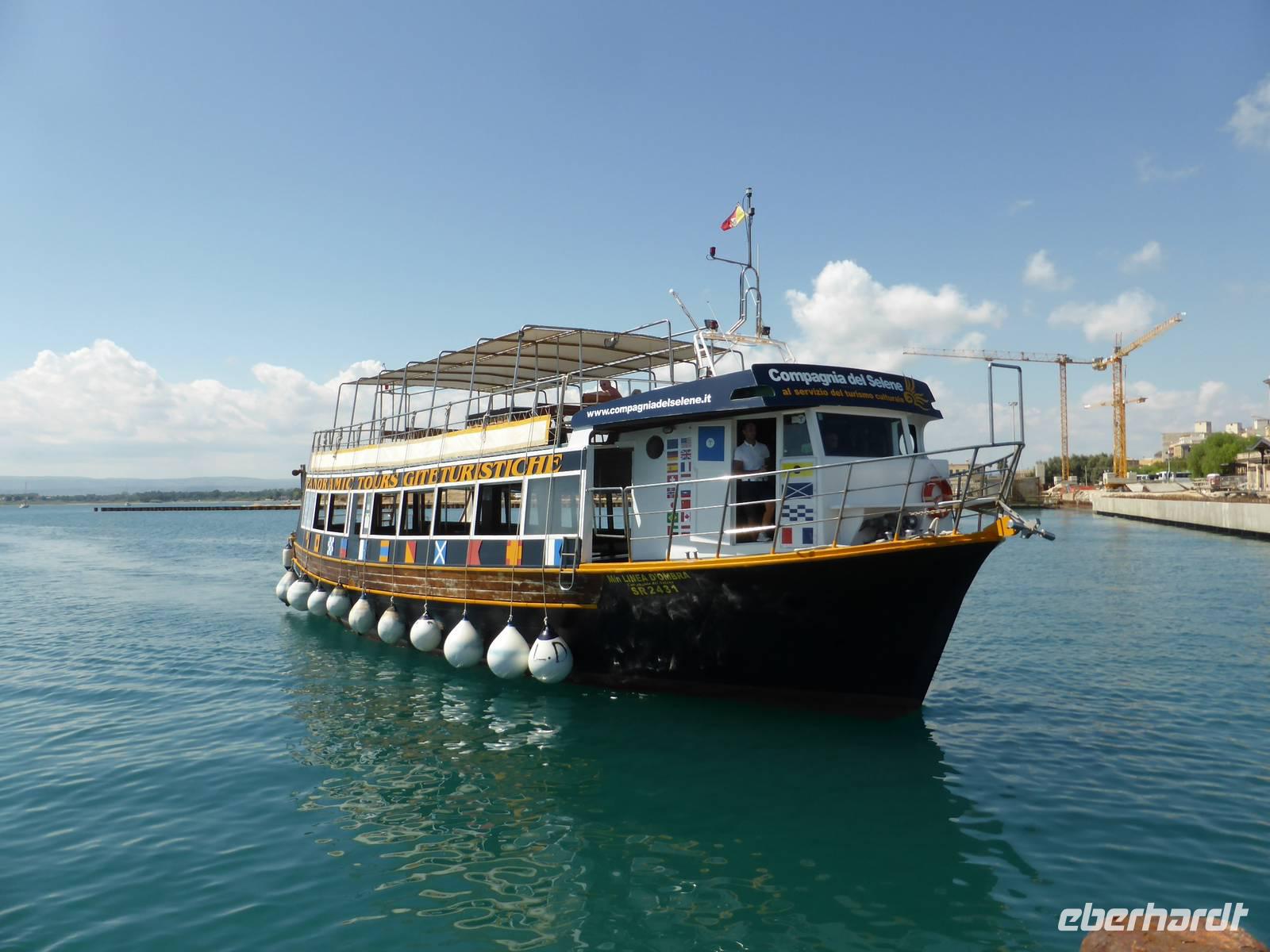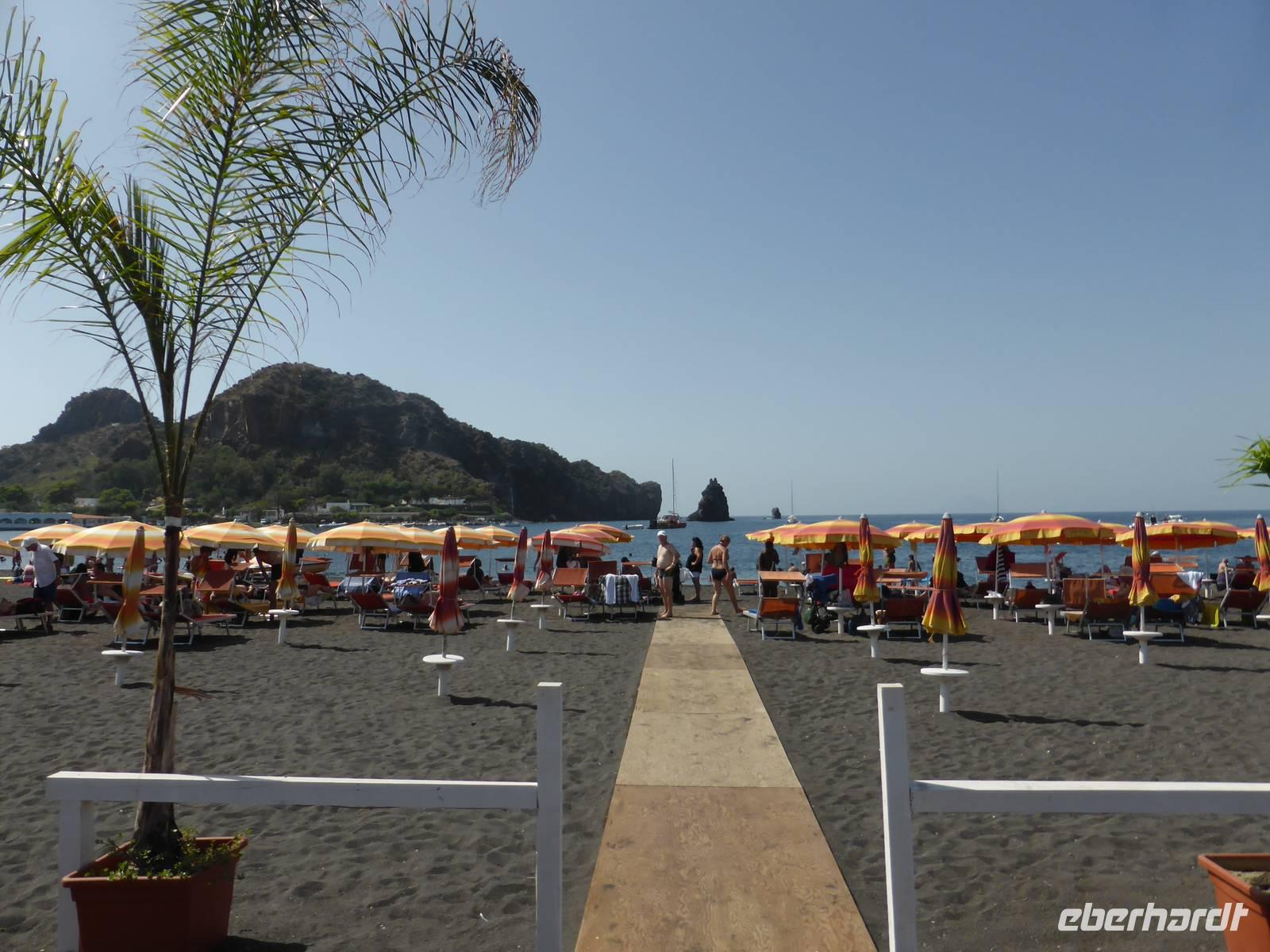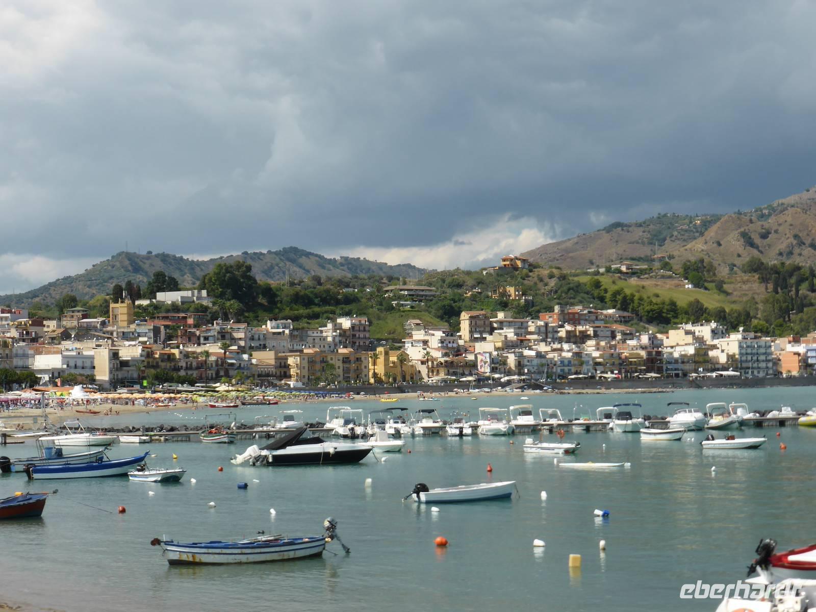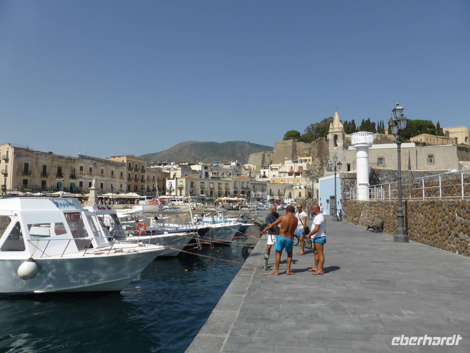 Zwölf Gäste unserer Reisegruppe nahmen am fakultativen Ausflug auf die Liparischen Inseln teil. Bereits um 06.00 Uhr gab es Frühstück und um 07.00 Uhr wurden wir von unserem Reiseleiter Herrman und unserem Fahrer Getano vom Hotel abgeholt. An einem Aussichtspunkt oberhalb von Messina legten wir einen kurzen Fotostopp ein. Uns bot sich ein fantastischer Blick auf die Meerenge von Messina. Gegen 08.30 Uhr kamen wir in Milazzo an und Punkt 09.00 Uhr legte unser Schiff in Richtung Liparische Inseln ab. Die erste Insel, welche wir sahen, war die Insel Vulcano, mit ihrem weithin sichtbaren Krater. Gegen 10.30 Uhr kamen wir im kleinen Hafen von Lipari an. Die Einfahrt in den Hafen war imposant. Lipari ist ein kleiner hübscher Fischerort, über dem sich auf einem 60 Meter hohen Bergsporn die Burg befindet. Von der Anlegestelle der Marina Corta spazierten wir durch den Ort zum Porto Sottomonastero, wo uns bereits unsere Fahrerin Ilenia mit ihrem Kleinbus zur Inselrundfahrt auf Lipari erwartete. Wir umrundeten die gesamte Insel und sahen bei Fotostopps die Nachbarinseln Vulcano, Salina, Panarea und in der Ferne sogar Stromboli. Den letzten Fotostopp legten wir inmitten eines Bimsstein-Tagebaues ein, durch den die Ringstraße führt. Seit dieser auf der Liste des UNESCO-Weltkulturerbes steht, findet kein Abbau von Bimsstein mehr statt. Trotzdem spülen Regengüsse den feinen Staub ins Meer, was dem eine schöne türkisblaue Farbe verleiht, wie man es auch vom Muschelkalk her kennt. In der Steinzeit war Lipari auch das wichtigste Abbaugebiet von Obsidian. Aus diesem glasartigen Gestein wurden Messer und Pfeilspitzen hergestellt, bevor es durch das Aufkommen von Kupfer und Bronze vollkommen an Bedeutung verlor. Zurück im Ort Lipari hatten wir bis zur Abfahrt unseres Schiffes noch etwas Zeit für die Mittagspause. Mit dem Schiff ging es dann auf die nächste Insel, nach Vulcano. Schon von weitem konnten wir den Vulkankrater sehen und den Schwefelgeruch riechen. Die Insel sieht aus wie ein kleines Paradies, Badestrände und Palmen und oberhalb der Baumgrenze der Kraterrand des Vulkans. Direkt neben der Anlegestelle befindet sich das Schwefelbad, welches Heilwirkung bei Rheuma- und Frauenleiden verspricht. Dafür muss man sich mit dem schwefelhaltigen Schlamm einschmieren, was zur Folge hat, dass die Badekleidung und auch die Haut noch tagelang danach riechen. Von unserer Gruppe wollte das wohl keiner den anderen zumuten, weshalb wir lieber zu einem der beiden Strände gingen. Wir wählten den etwas weiter entfernten, dafür aber umso schöner gelegenen schwarzen Sandstrand aus. Das Wasser war angenehm warm und sehr sauber! Nach dem Baden tranken wir im Selbstbedienungs-Restaurant noch einen Kaffee und anschließend ging es mit dem Schiff nach Milazzo zurück. Die Fahrt war sehr interessant, da wir an der Westseite der Insel Vulcano vorbeifuhren, die wir bei der Hinfahrt noch nicht gesehen hatten. Von Milazzo fuhren wir dann auf direktem Wege zu unserem Hotel zurück.