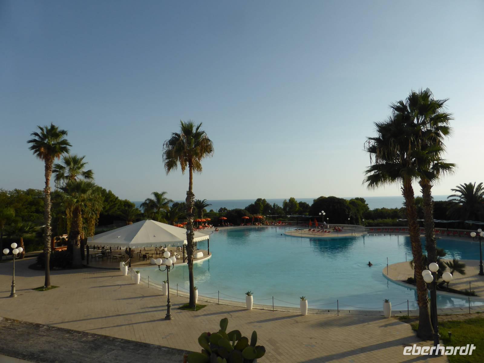 Heute hieß es Abschied nehmen von unserem Hotel und Weiterfahrt nach Letojanni, zum Hotel Olympo, welches wir ja bereits von unseren ersten drei Übernachtungen kannten. Die Überraschung war groß, als uns Sebastiano vom Hotel abholte. Wir hatten mit einem anderen Fahrer gerechnet und freuten uns umso mehr ihn wiederzusehen! Sebastiano verpasste allerdings erst einmal die Auffahrt in Richtung Messina, so dass wir bis zur nächsten Wendemöglichkeit eine Viertelstunde in Richtung Catania fuhren. Da wir aber an diesem Tag keinen weiteren Programmpunkt hatten, war dies für uns nicht weiter schlimm. Auf halber Strecke legten wir eine Pause ein und kamen gegen 13.30 Uhr am Hotel an. Der weitere Tag stand zur freien Verfügung, was die meisten bei Temperaturen von über 35 Grad zum Baden im Meer oder im Pool nutzten. Zum Abendessen trafen wir uns wieder im Hotelrestaurant.