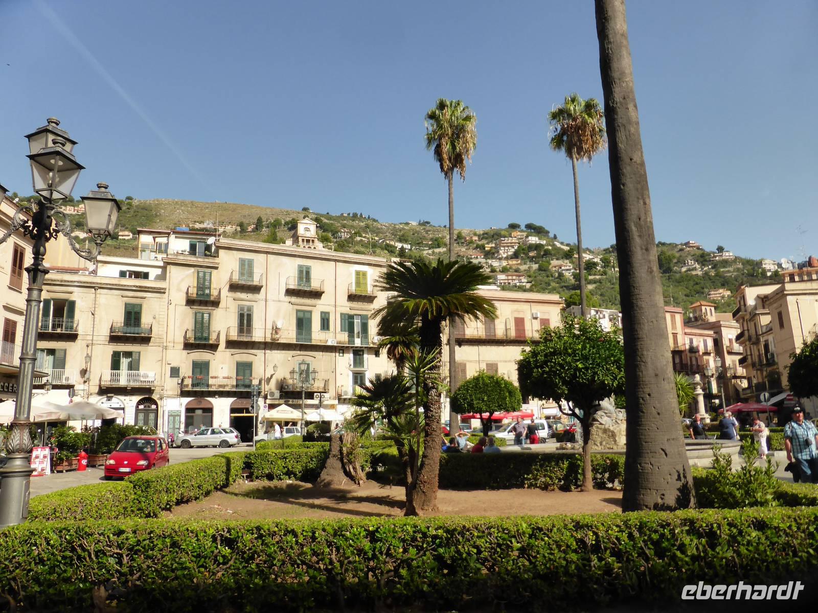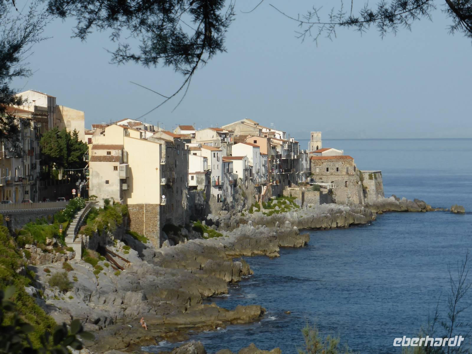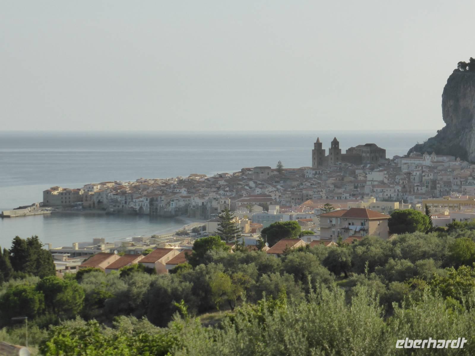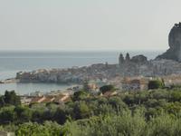 Nach dem Frühstück erwarteten uns bereits Christiane, unsere Reiseleiterin, und Sebastiano, unser Busfahrer, zu unserem Ausflug nach Cefalu und in das Madonie-Gebirge. Zuerst fuhren wir nach Cefalù und es war gut, die Stadtbesichtigung auf den Morgen zu verlegen, da es wieder sehr heiß werden sollte. Die Stadt liegt malerisch am Meer zu Füßen eines gewaltigen Felsens aus Muschelkalk, des „Rocca di Cefalù". Auf ihm befindet sich eine arabische Festung und ein Diana- Tempel. Im Ort Cefalù besichtigten wir zunächst den alten Fischerhafen und anschließend den ehemaligen Waschplatz, welcher Wasser aus einem kalten Gebirgsfluss bezieht und in unseren modernen Zeiten nicht mehr zum Wäsche waschen genutzt wird. Die größte Sehenswürdigkeit ist die gewaltige Kathedrale, dem vielleicht großartigsten Bauwerk der Normannenzeit auf Sizilien. Baubeginn war Anfang des 12.Jh., womit die Kathedrale von Cefalù ebenfalls auf die Zeit von Roger dem II. zurückgeht. Die Halbkuppel über dem Chor dominiert wieder Christus Pantokrator, der uns dieses Mal aber weitaus freundlicher anblickte, als in der Capella Palatina in Palermo. Architektonisch ist der Bau der Kathedrale von Cefalù eine Meisterleistung, da er byzantinische, arabische und normannische Baustile miteinander vereint. Von Cefalù aus ging es anschließend ins Madonie-Gebirge, dem höchsten Gebirge Siziliens mit Höhen von fast 2000 Metern. Ein großer Teil ist seit 1989 als Naturpark ausgewiesen. Wir fuhren bis zur Ortschaft Castelbuono, einem auf 420 Meter Höhe gelegenen kleinen Städtchen. Überragt wird der kleine Ort von einem finsteren Kastell, welches an höchster Stelle steht und von dem aus die Hauptstraße zum Marktplatz hinunterführt. Dort ist besonders die alte Marienkirche aus dem 14.Jh. sehenswert, welche wir besichtigten. Anschließend probierten wir Mandel- und Pistaziengebäck, Manna-Kuchen sowie verschiedene Liköre der Firma Fiasconaro, welche natürlich auch zum Verkauf angeboten wurden. Während unseres Aufenthaltes sahen wir auch, dass die Müllabfuhr durch einen mit Körben bepackten Esel erfolgte. Von Castelbuono aus wollten wir eigentlich weiter durch die Modonie zum Mittagessen bei Agriturismo Gelso fahren, aber die Straße war aufgrund eines Waldbrandes gesperrt. Glücklicherweise waren unser Fahrer Sebastiano und unsere Reiseleiterin Christiane so vorausschauend, dass wir weiträumig vor dem Brand noch halten und wenden konnten. Die Sperrung der Straße bedeutete für uns einen weiten Umweg. Wir mussten wieder zurück zur Küstenautobahn fahren. Gegen 14.30 Uhr kamen wir dann bei unseren Gastgebern Daniela und Claudio auf dem Gut „Agriturismo Gelso" an. Als erstes begrüßten uns ihre Hunde. Anschließend wurden wir zu Tisch gebeten und reichlich bewirtet. Das Landgut ist sehr gepflegt und mittlerweile werden von Daniela und Claudio auch Unterkünfte angeboten. Wein und Olivenöl stellen sie selbst her. Die Gegend eignet sich auch bestens zur Vogelbeobachtung, worüber uns eine Informationstafel Auskunft gab. Wir waren von ihrem Anwesen und dem guten Essen sehr angetan. Vom Landgut fuhren wir zu unserem Hotel zurück und verabschiedeten schweren Herzens unsere Reiseleiterin Christiane und unseren Fahrer Sebastiano. Sie waren ein fantastisches Team und der Abschied fiel allen schwer.