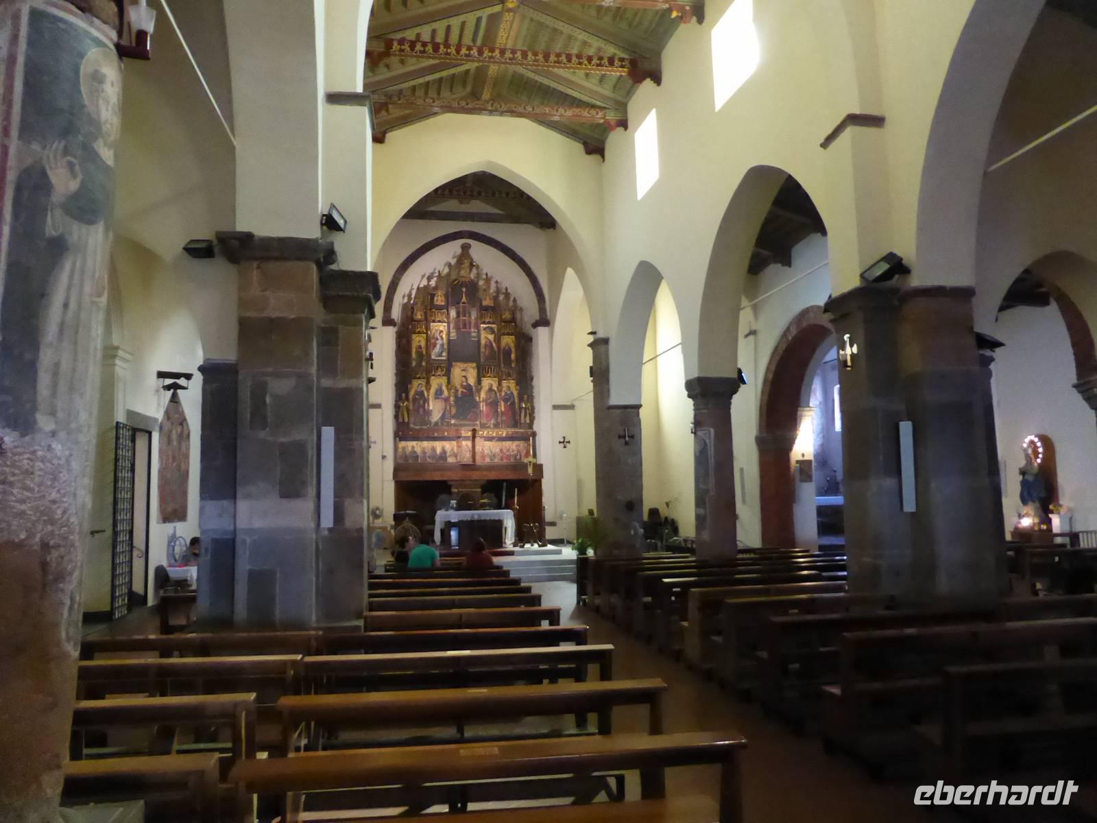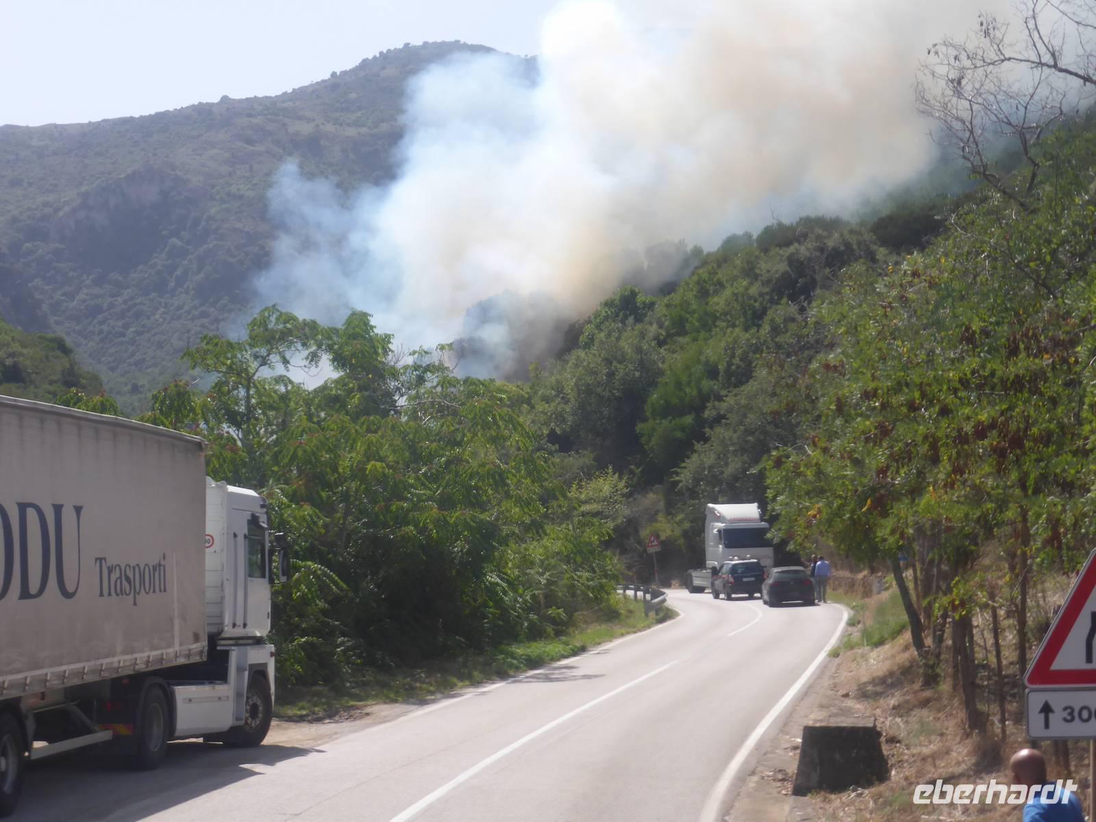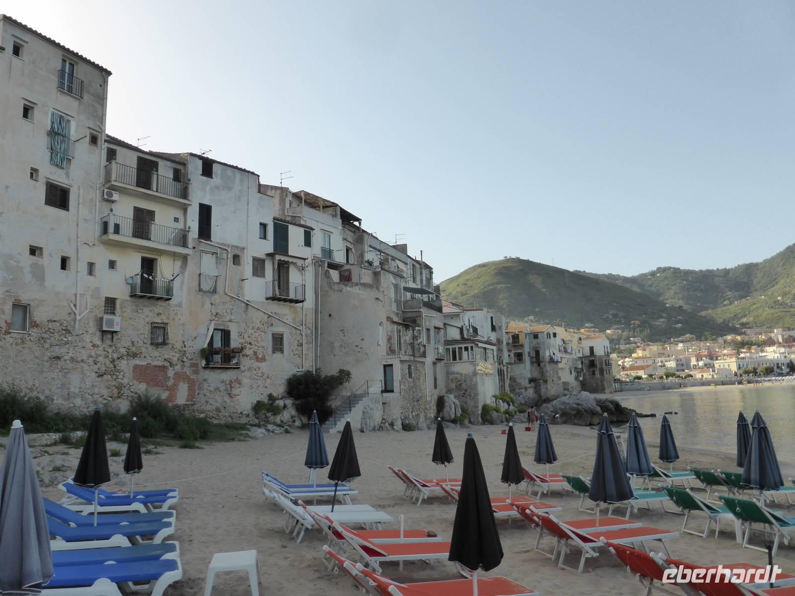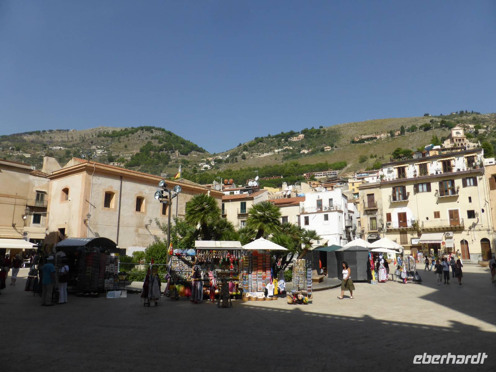 Nach dem Frühstück erwarteten uns bereits Christiane, unsere Reiseleiterin, und Sebastiano, unser Busfahrer, zu unserem Ausflug nach Cefalu und in das Madonie-Gebirge. Zuerst fuhren wir nach Cefalù und es war gut, die Stadtbesichtigung auf den Morgen zu verlegen, da es wieder sehr heiß werden sollte. Die Stadt liegt malerisch am Meer zu Füßen eines gewaltigen Felsens aus Muschelkalk, des „Rocca di Cefalù". Auf ihm befindet sich eine arabische Festung und ein Diana- Tempel. Im Ort Cefalù besichtigten wir zunächst den alten Fischerhafen und anschließend den ehemaligen Waschplatz, welcher Wasser aus einem kalten Gebirgsfluss bezieht und in unseren modernen Zeiten nicht mehr zum Wäsche waschen genutzt wird. Die größte Sehenswürdigkeit ist die gewaltige Kathedrale, dem vielleicht großartigsten Bauwerk der Normannenzeit auf Sizilien. Baubeginn war Anfang des 12.Jh., womit die Kathedrale von Cefalù ebenfalls auf die Zeit von Roger dem II. zurückgeht. Die Halbkuppel über dem Chor dominiert wieder Christus Pantokrator, der uns dieses Mal aber weitaus freundlicher anblickte, als in der Capella Palatina in Palermo. Architektonisch ist der Bau der Kathedrale von Cefalù eine Meisterleistung, da er byzantinische, arabische und normannische Baustile miteinander vereint. Von Cefalù aus ging es anschließend ins Madonie-Gebirge, dem höchsten Gebirge Siziliens mit Höhen von fast 2000 Metern. Ein großer Teil ist seit 1989 als Naturpark ausgewiesen. Wir fuhren bis zur Ortschaft Castelbuono, einem auf 420 Meter Höhe gelegenen kleinen Städtchen. Überragt wird der kleine Ort von einem finsteren Kastell, welches an höchster Stelle steht und von dem aus die Hauptstraße zum Marktplatz hinunterführt. Dort ist besonders die alte Marienkirche aus dem 14.Jh. sehenswert, welche wir besichtigten. Anschließend probierten wir Mandel- und Pistaziengebäck, Manna-Kuchen sowie verschiedene Liköre der Firma Fiasconaro, welche natürlich auch zum Verkauf angeboten wurden. Während unseres Aufenthaltes sahen wir auch, dass die Müllabfuhr durch einen mit Körben bepackten Esel erfolgte. Von Castelbuono aus wollten wir eigentlich weiter durch die Modonie zum Mittagessen bei Agriturismo Gelso fahren, aber die Straße war aufgrund eines Waldbrandes gesperrt. Glücklicherweise waren unser Fahrer Sebastiano und unsere Reiseleiterin Christiane so vorausschauend, dass wir weiträumig vor dem Brand noch halten und wenden konnten. Die Sperrung der Straße bedeutete für uns einen weiten Umweg. Wir mussten wieder zurück zur Küstenautobahn fahren. Gegen 14.30 Uhr kamen wir dann bei unseren Gastgebern Daniela und Claudio auf dem Gut „Agriturismo Gelso" an. Als erstes begrüßten uns ihre Hunde. Anschließend wurden wir zu Tisch gebeten und reichlich bewirtet. Das Landgut ist sehr gepflegt und mittlerweile werden von Daniela und Claudio auch Unterkünfte angeboten. Wein und Olivenöl stellen sie selbst her. Die Gegend eignet sich auch bestens zur Vogelbeobachtung, worüber uns eine Informationstafel Auskunft gab. Wir waren von ihrem Anwesen und dem guten Essen sehr angetan. Vom Landgut fuhren wir zu unserem Hotel zurück und verabschiedeten schweren Herzens unsere Reiseleiterin Christiane und unseren Fahrer Sebastiano. Sie waren ein fantastisches Team und der Abschied fiel allen schwer.