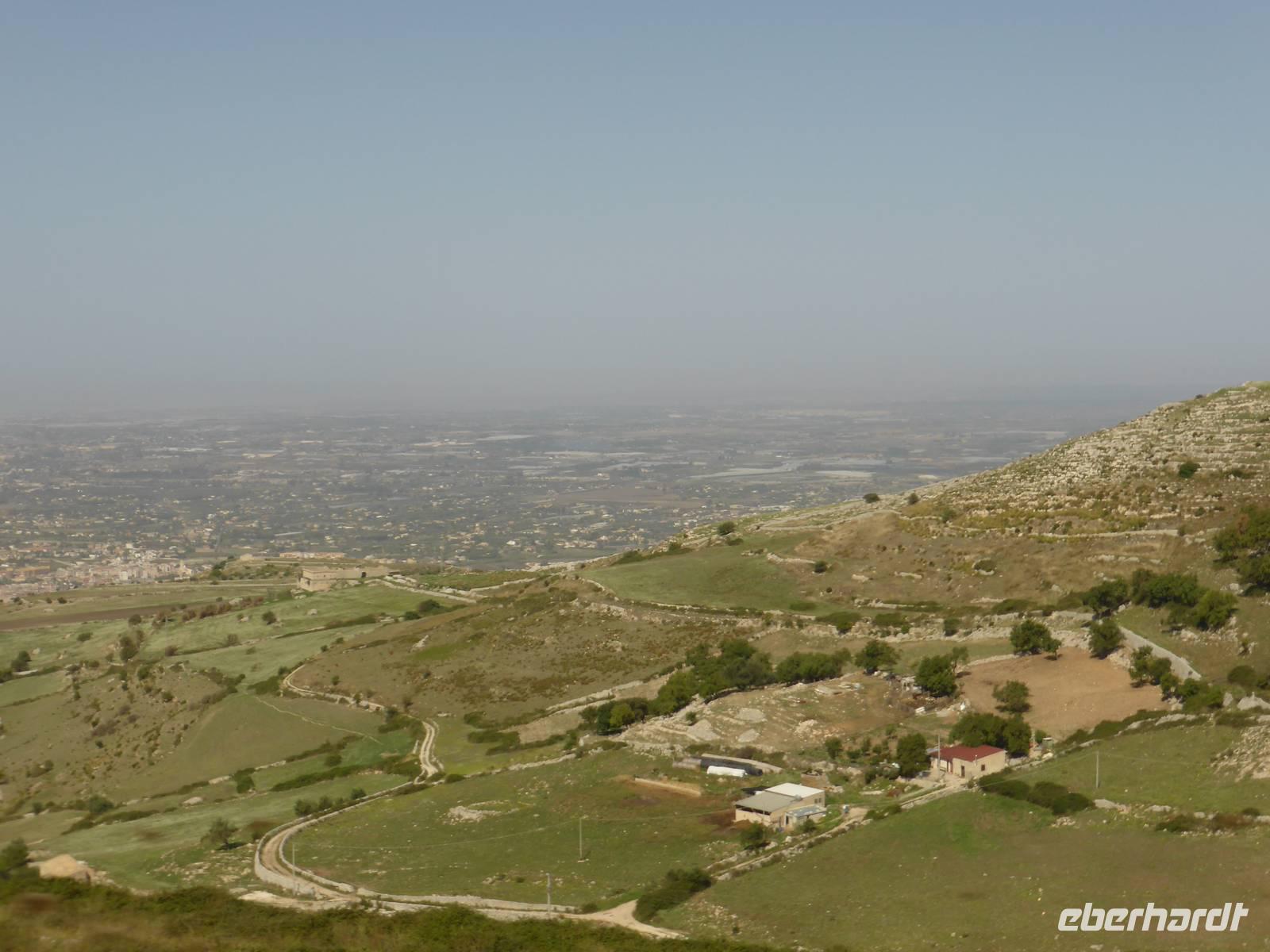 Auch der heutige Ausflug war fakultativ. Es nahmen ebenfalls 12 Gäste daran teil. Um 08.30 Uhr wurden wir von unserer Reiseleiterin Desiree und unserem Fahrer Francesco vom Hotel abgeholt. Die Fahrt führte uns über Catania in die Provinz Ragusa, welche zu den wohlhabendsten Provinzen Siziliens zählt. Das ist nicht zuletzt der Erbpacht zu verdanken, einem System, bei dem die Ländereien über Generationen in Pacht ein und derselben Familie blieben. Die Bauern wurden immer wohlhabender, wovon die vielen edlen Bauernhöfe, genannt Masserias, künden. Durch Eheschließungen erlangte der ein oder andere Landpächter sogar den Adelstitel. Wir besichtigten das besonders eindrucksvolle Landgut der Familie Arezzo, das Castello de Donnafugata. Die Familie wurde so einflussreich, dass sie Mitte des 19. Jahrhunderts erwirken konnte, die Bahnlinie von Ragusa nach Comiso durch ihr Gut zu verlegen. Dies hatte eine Verdopplung der Fahrtstrecke und eine Verlängerung der Fahrzeit zur Folge. Für die Familie Arezzo brachte es den Vorteil, dass ihre Gäste nun bis zur eigenen Bahnstation „Donnafugata" fahren konnten. Die Außenfassade des Castello ist sehr eindrucksvoll. Im Inneren standen der Familie Arezzo 122 Zimmer zur Verfügung, von denen viele als Gästezimmer dienten. Bis ins Jahr 1982 wurde das Anwesen auch von der Familie bewohnt, anschließend von der Provinz Ragusa gekauft und der Öffentlichkeit zugänglich gemacht. Nach der Besichtigung fanden wir uns im Restaurant zum gemeinsamen Mittagessen ein. Es wurde viel zu reichlich aufgedeckt, so dass die meisten von uns den Hauptgang gar nicht aufessen konnten. Von Donnafugata fuhren in Richtung Modica und hielten an einem Aussichtspunkt oberhalb der Stadt. Das geschlossene Stadtbild war einfach einmalig. Wie Schwalbennester klebten die Häuser am gegenüberliegenden Hang. Mit unserem Bus fuhren wir anschießend hinunter zum Dom S.Giorgio, welchen wir besichtigten, und besuchten danach im Ortszentrum die Schokolateria Rizzo. Modica ist in Sizilien für seine Schokolade bekannt und hier konnten wir die verschiedensten Sorten kosten. Im Anschluß fuhren wir nach Ragusa und sahen während der Fahrt die Ölpumpen und das große Asphalt-Werk der Stadt. In Ragusa-Ibla angekommen waren die Kirchen bereits wieder offen. Wir besichtigten die Josefskirche und den Dom des Heiligen Georg. In ihm fand gerade eine Hochzeit statt, weshalb uns nur ein kurzer Blick in sein Inneres gewährt wurde. Im Anschluss zeigte uns Desiree üppig gestaltete Barockhäuser und verwies uns auf deren extravagante Balkone. Nach einer abschließenden Kaffeepause fuhren wir von Ragusa zu unserem Hotel zurück. Noch immer sind die landwirtschaftlichen Nutzflächen durch steinerne Mauern begrenzt. Die vielen Weinstöcke liegen versteckt unter endlosen Plastikplanen. Auf den abgeernteten Feldern ist vielerorts die fruchtbare braun-rote oder braun-schwarze Erde sichtbar. Am Hotel angekommen, verabschiedeten wir uns herzlich von Desiree und bedankten uns für diesen schönen Ausflugstag.