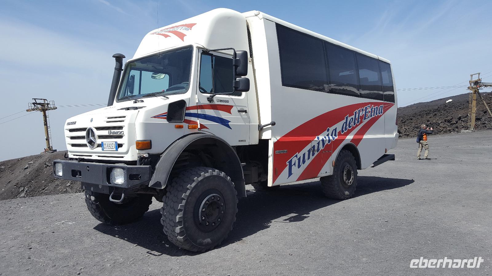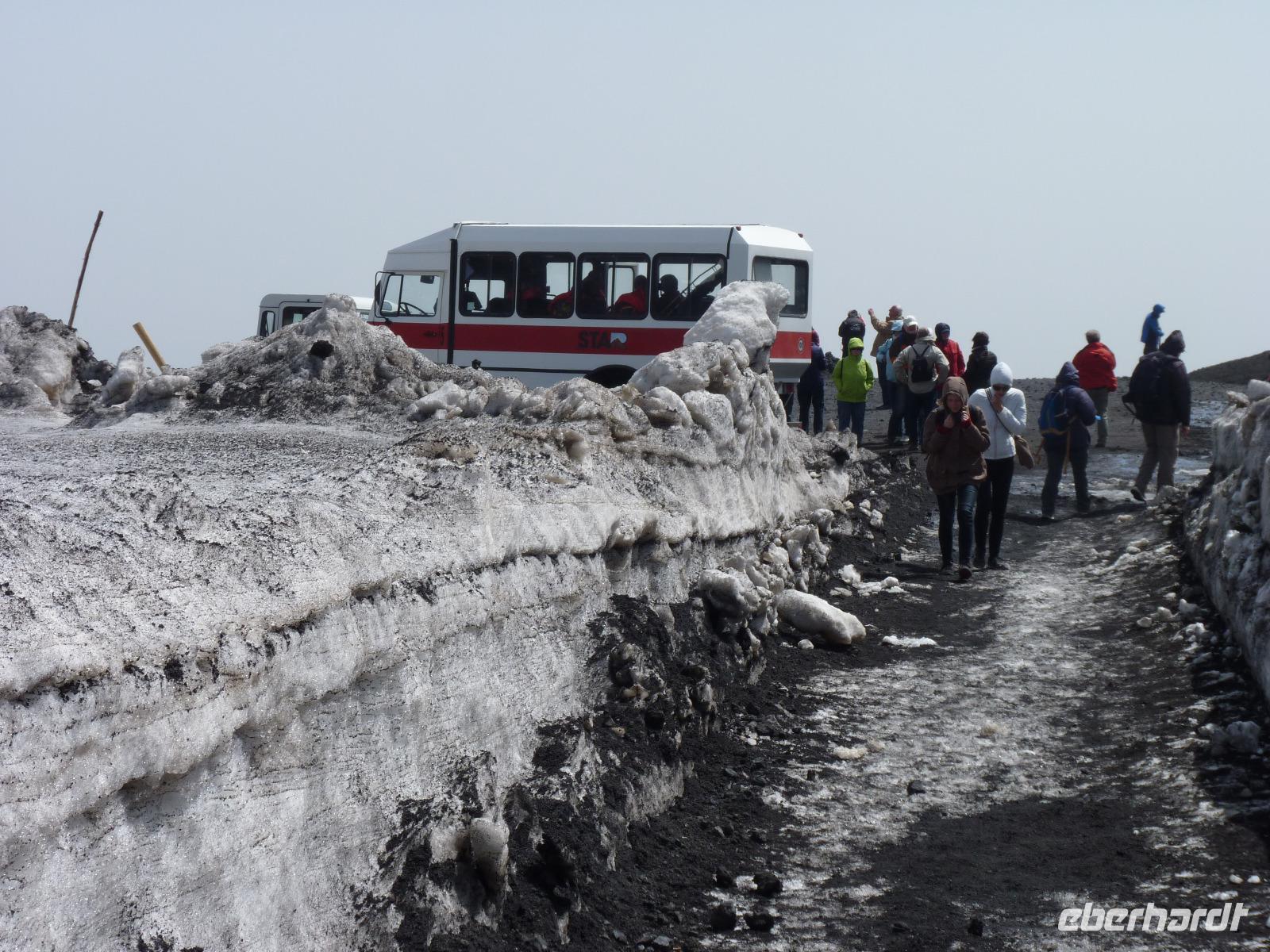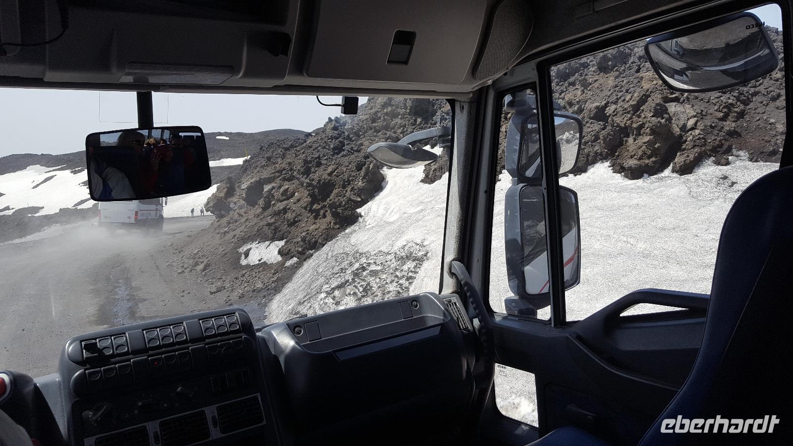 Dort warteten bereits die Unimogs (28 Sitzer) und der Bergführer. Im rasanten Tempo fuhren wir über Lavageröll auf 2920m Höhe.
