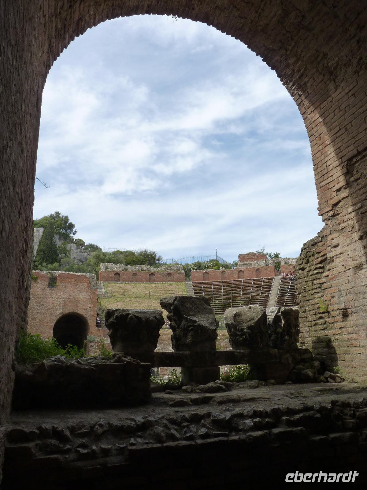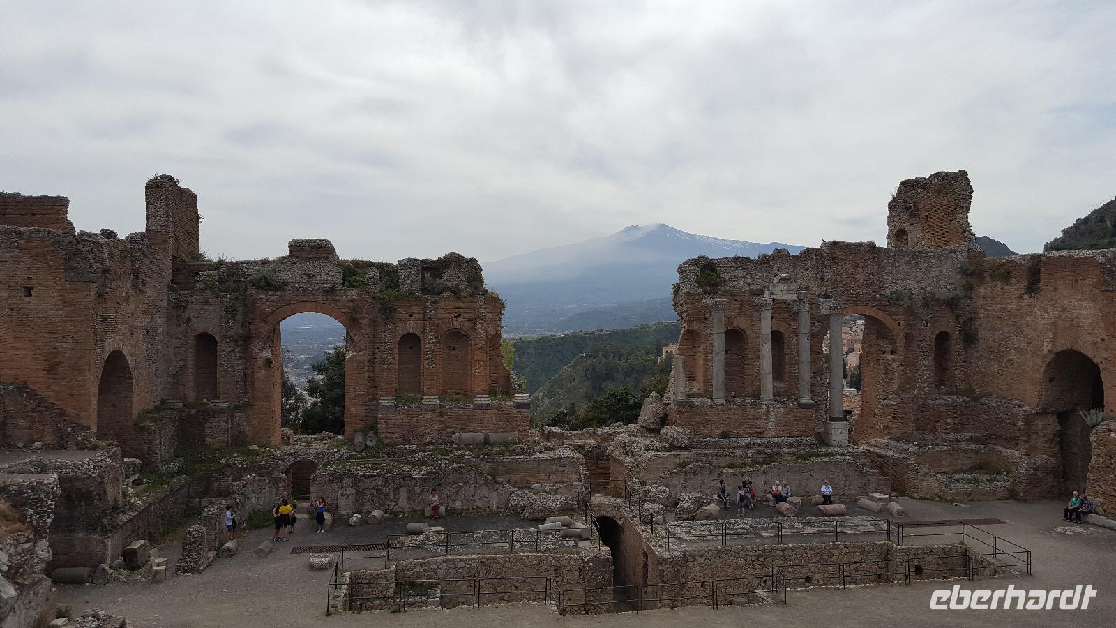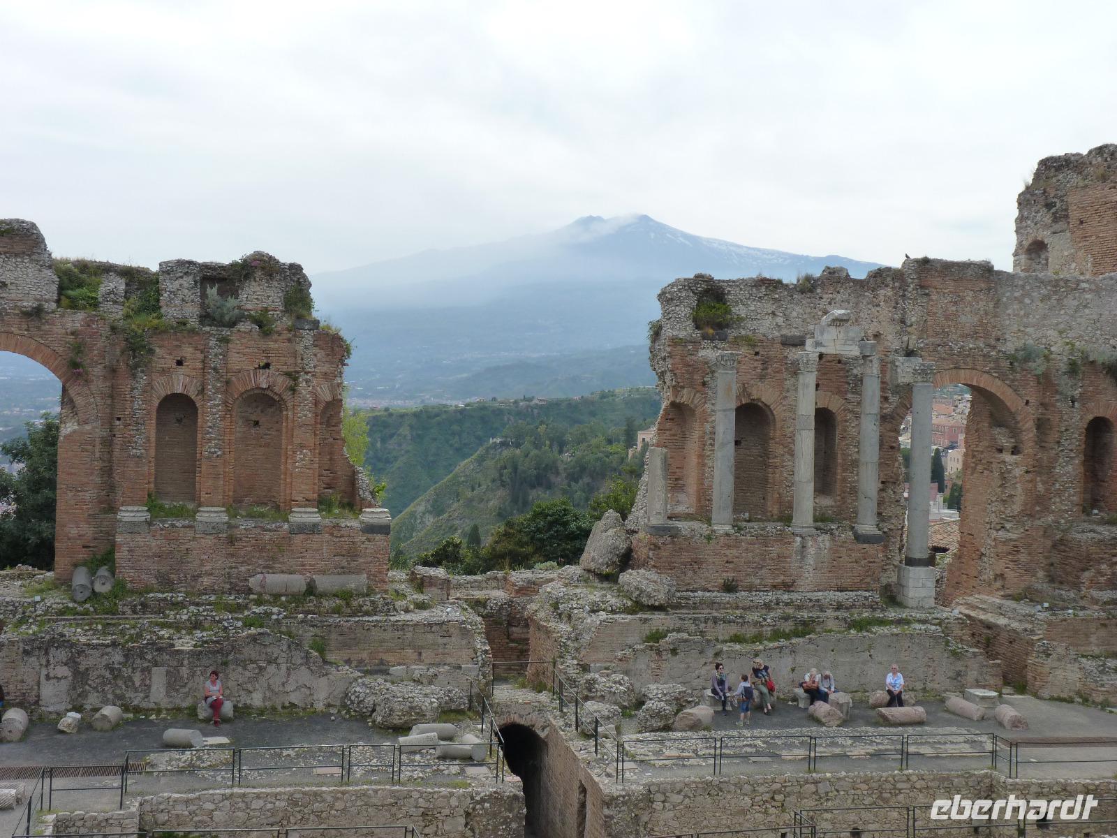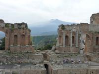 Wir besuchen als erstes das Griechisch - Römische Theater. Von dessen Halbrund genossen wir einen schönen Blick in die Bucht von Naxos und auf den Ätna.