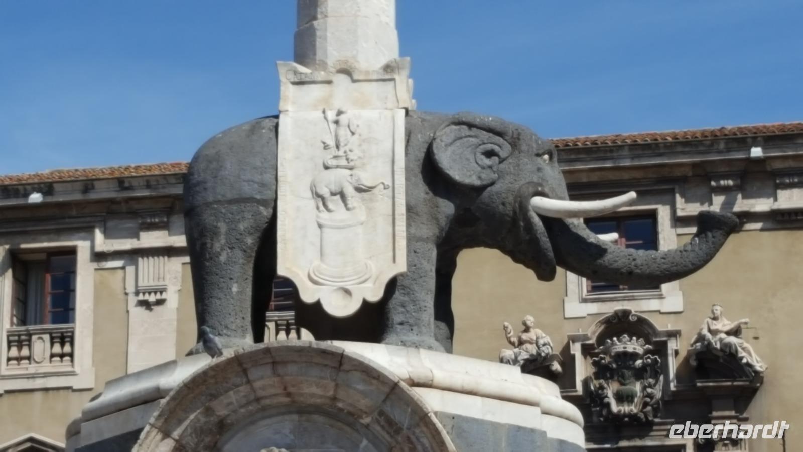 Auf dem Domplatz begegneten wir dem Wahrzeichen der Stadt - der Fontana dell Èlefante (Elefantenbrunnen) - mit dem kleinen Elefanten aus Lavagestein.