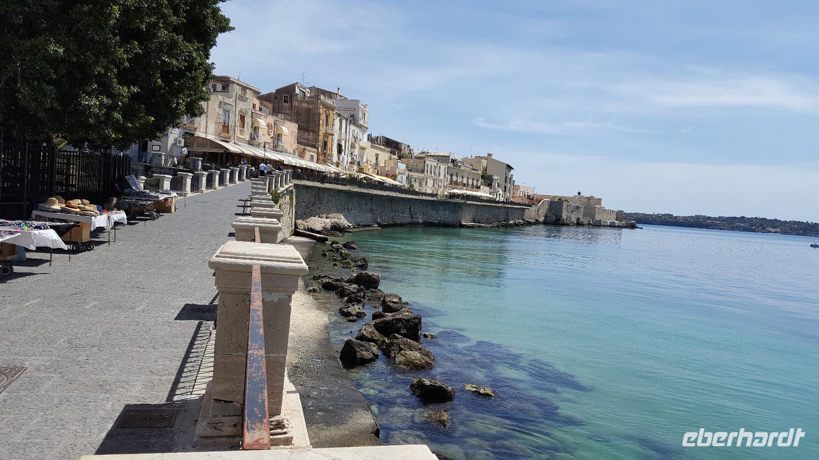 Nächstes Ziel war Ortygia, einer kleinen Insel vor der Ostküste Siziliens, die das historische Zentrum der Stadt Syrakus bildet und nur durch einige wenige Meter breite Durchfahrt vom Festland getrennt ist. Die Altstadt wurde im Jahr 2005 zum UNESCO-Weltkulturerbe erklärt.