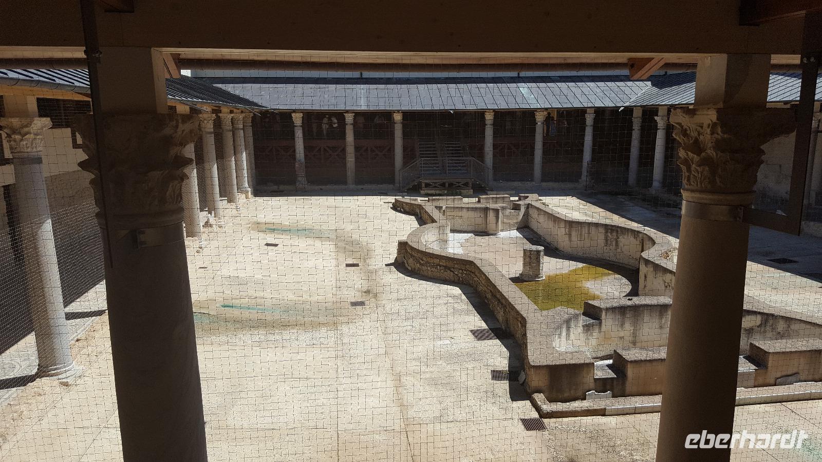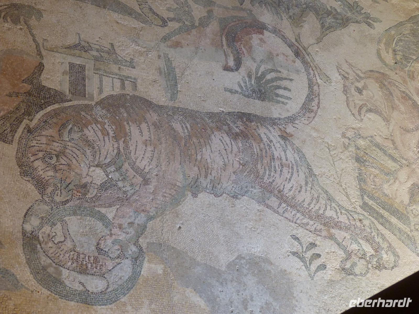 Als erster Höhepunkt des Tages stand die Villa Romana auf dem Programm. Die prachtvolle Villa - Wohnstätte und Jagdsitz, aus dem 3. und 4. JH. n. C., wurde für Kaiser Maximianus Herkulius gebaut. Sie gehört zum Weltkulturerbe. Am Haupteingang sehen wir zuerst die Latrinen. 63 Räume - Wohnräume, Schlafzimmer, Thermen, Kinderzimmer und die Räume der Dienerschaft. Gut konnte man sich vorstellen, wie das Leben damals war. 42 zum Teil gut erhaltene vielfarbige Fußböden aus mehr als 120 Mio. Mosaiksteinchen auf einer 3700qm großen Fläche. Die antiken Bodenmosaike, wie z. B. die "Sportmädchen", Jagdszenen und Tiermotive beeindruckte uns alle.