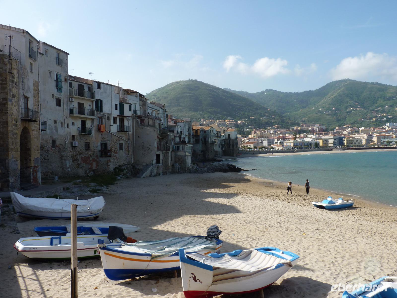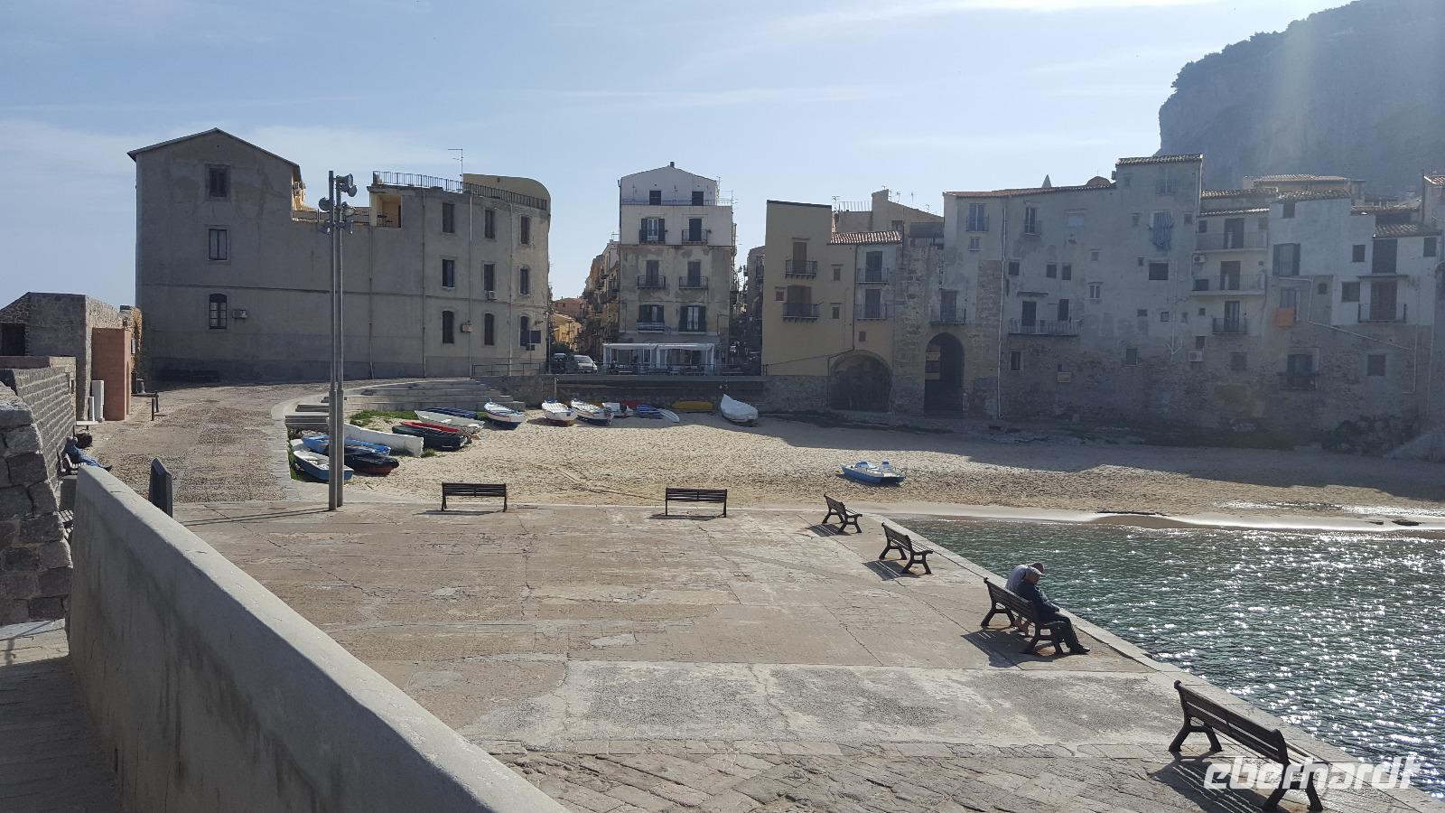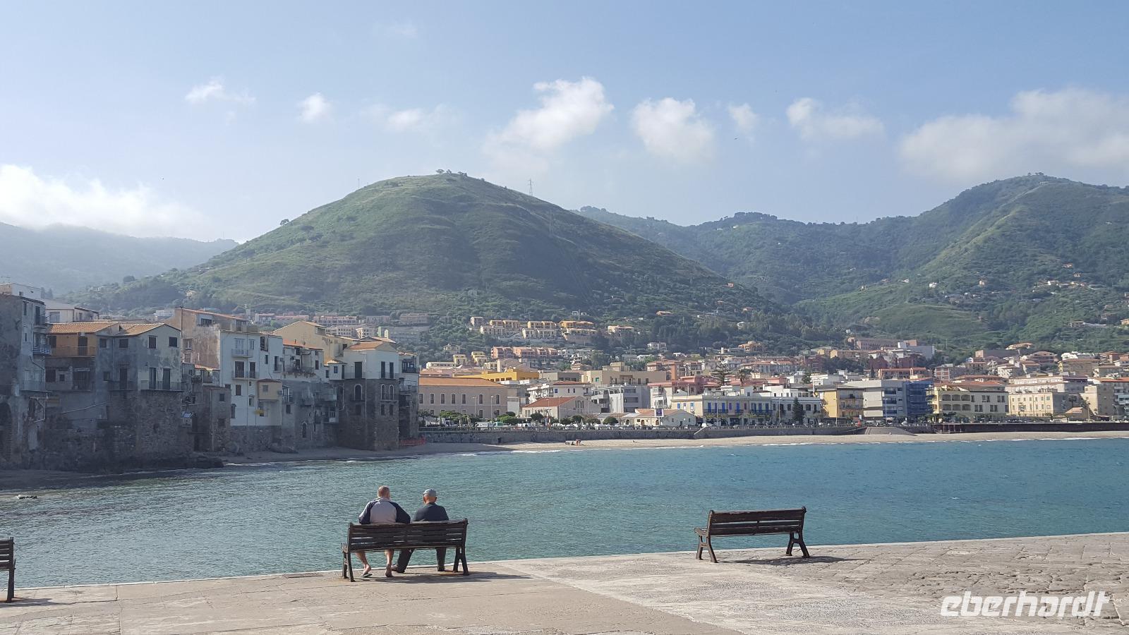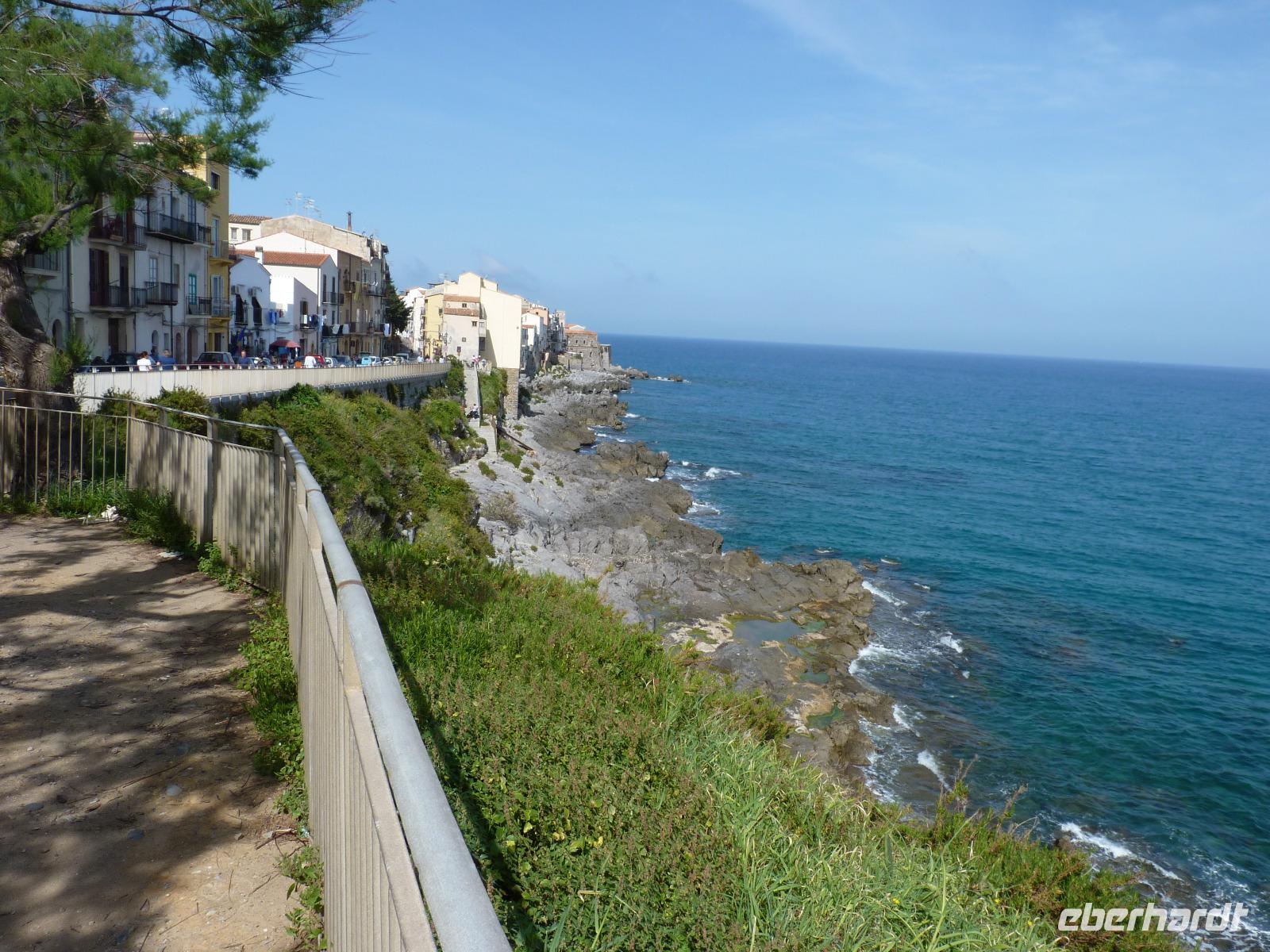 Erster Halt unterhalb des Leuchtturmes in Cefalu, einen schönes kleines Städtchen am Meer.